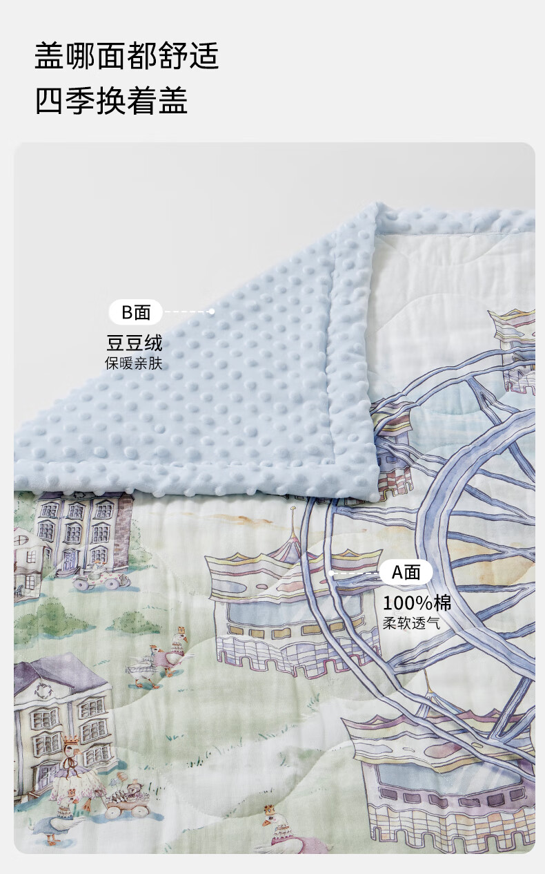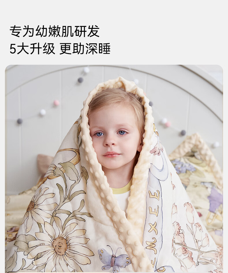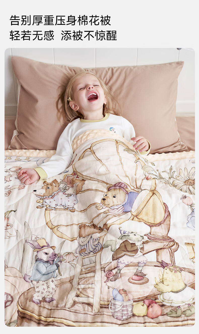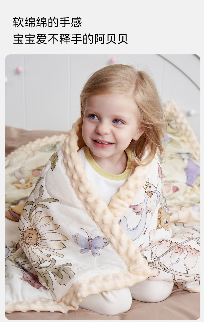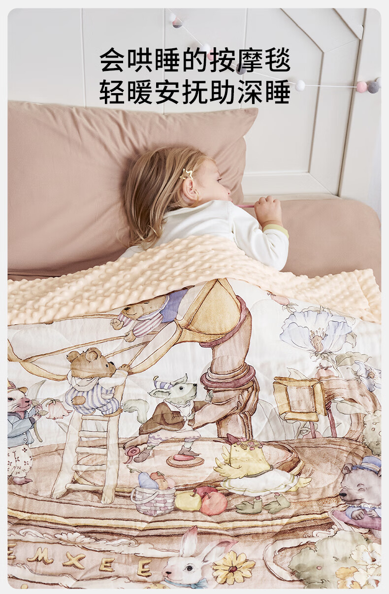 嫚熙(EMXEE)幸运鹅豆豆毯婴儿盖毯幼儿园午睡毯四季新生儿宝宝盖被 【幸运鹅假日】植物真丝夹棉 室温 15-20℃