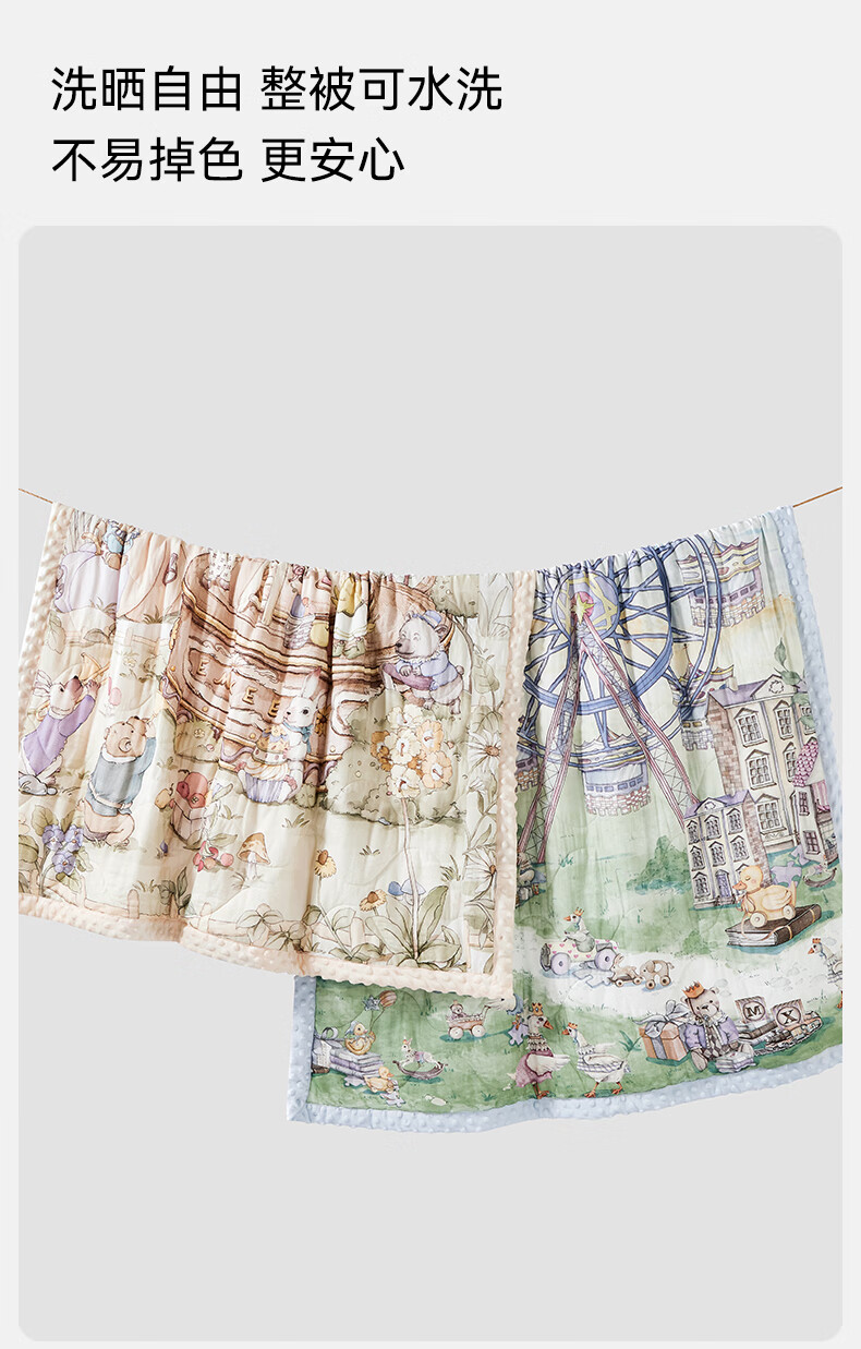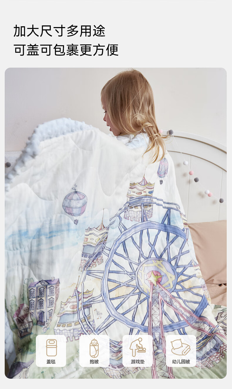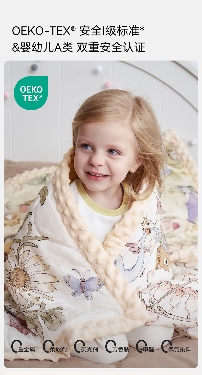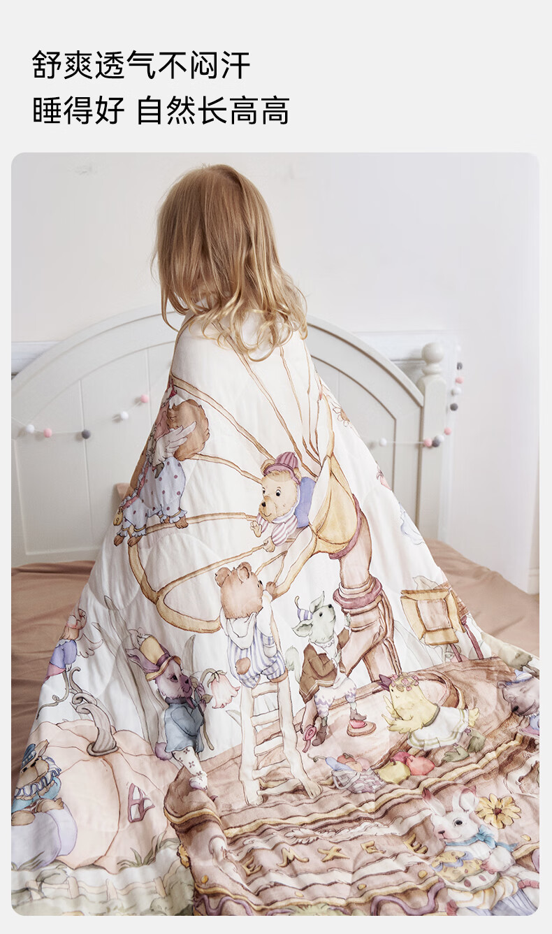 嫚熙(EMXEE)幸运鹅豆豆毯婴儿盖毯幼儿园午睡毯四季新生儿宝宝盖被 【幸运鹅假日】植物真丝夹棉 室温 15-20℃