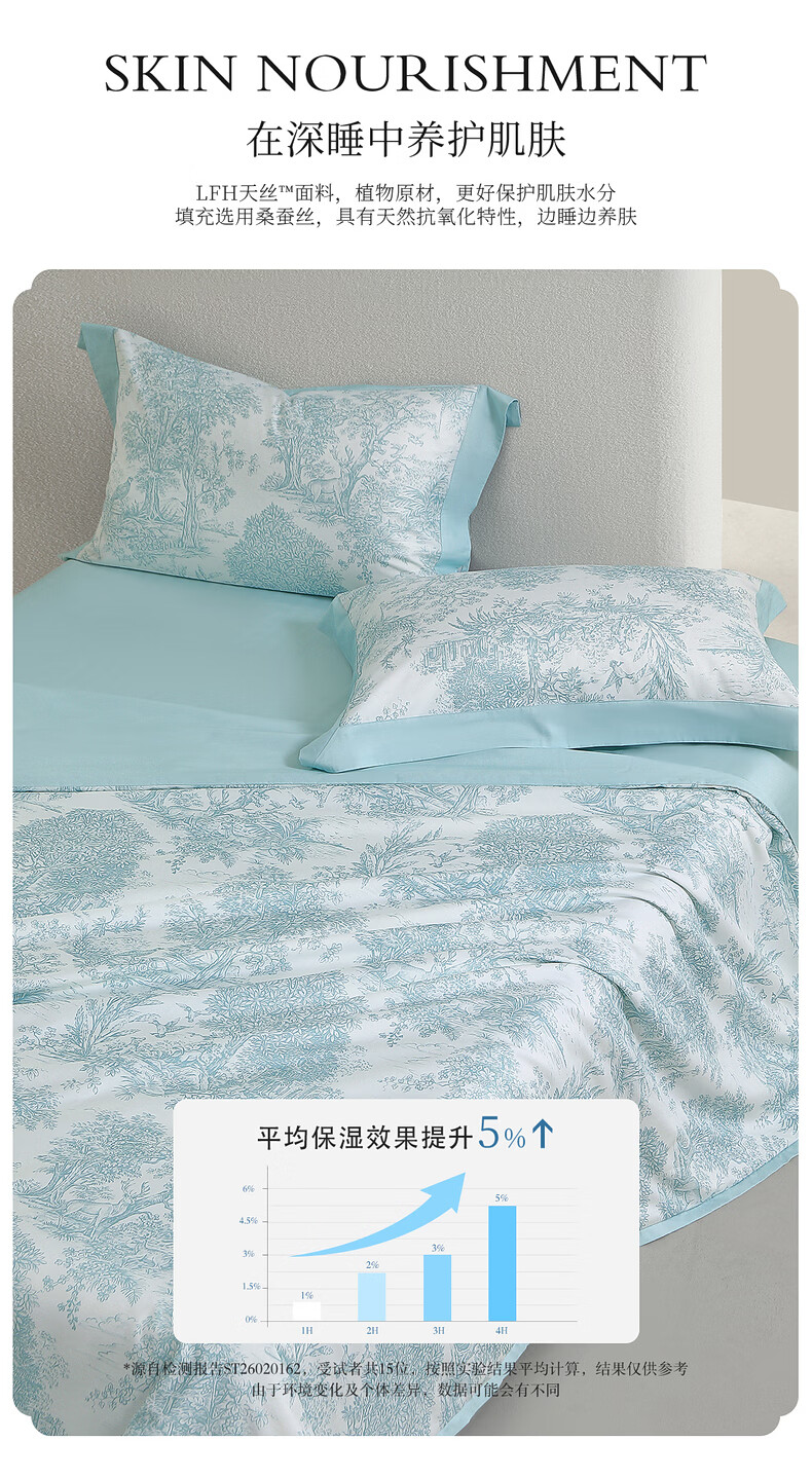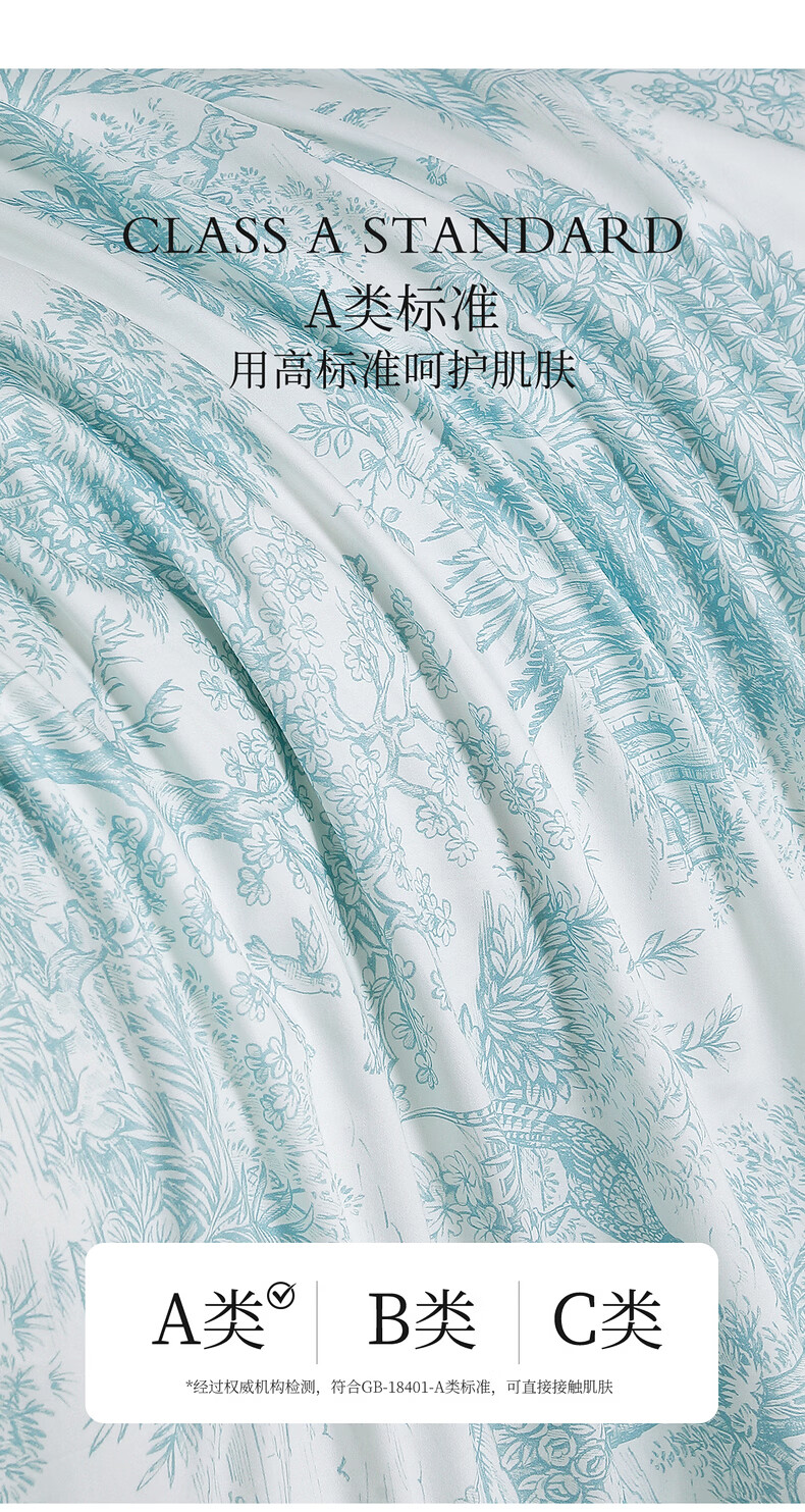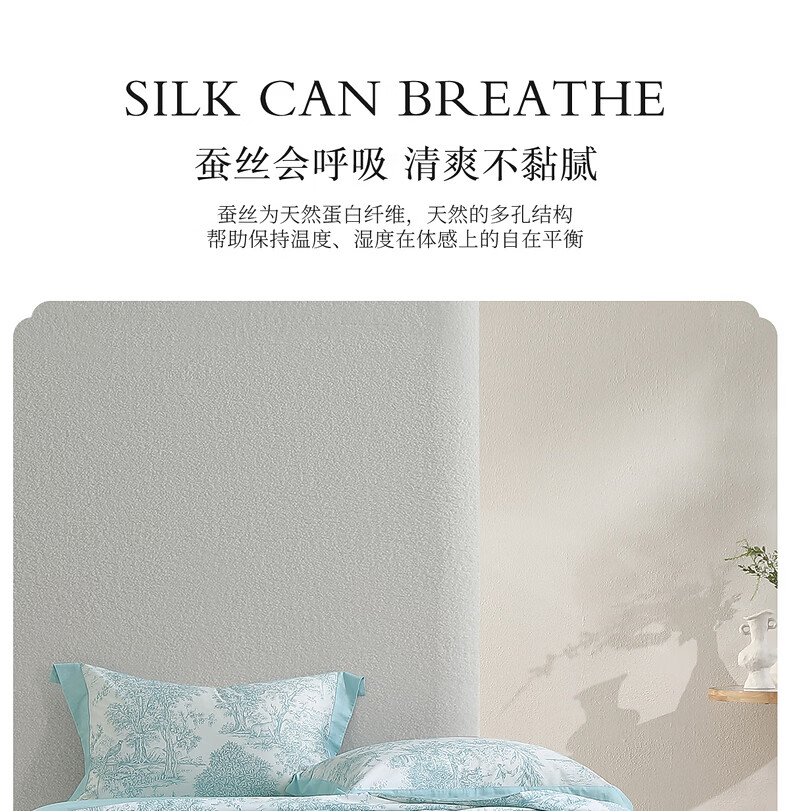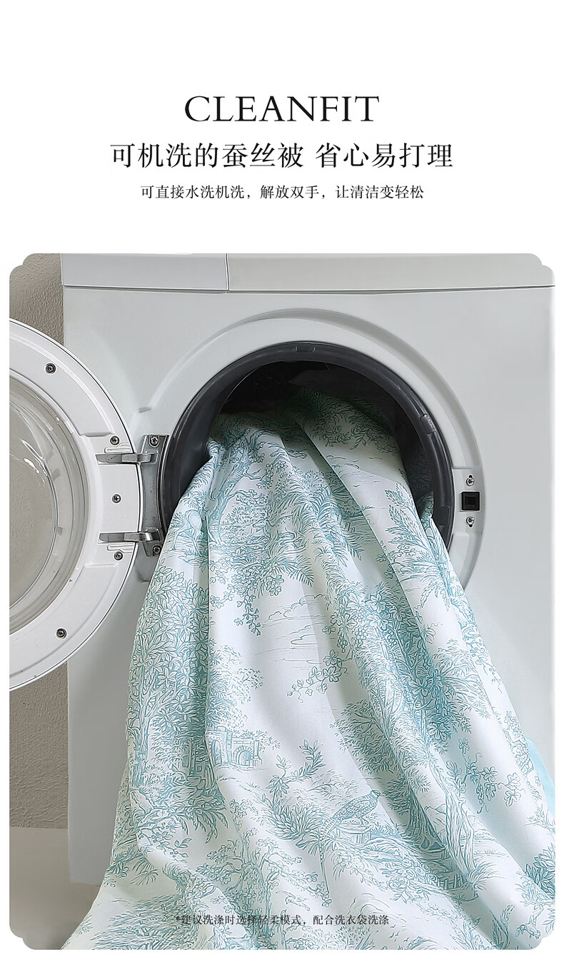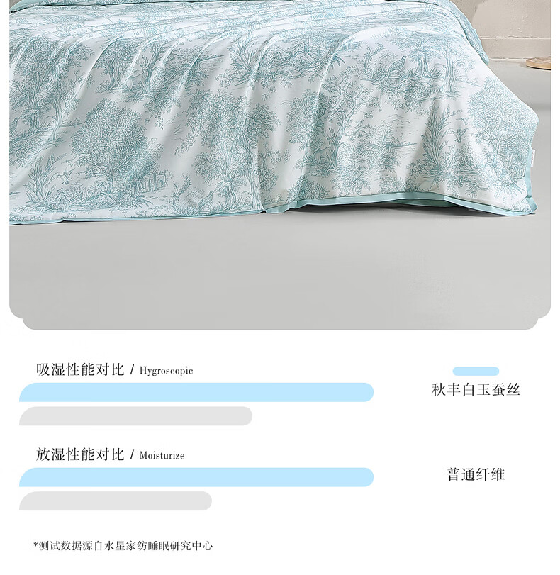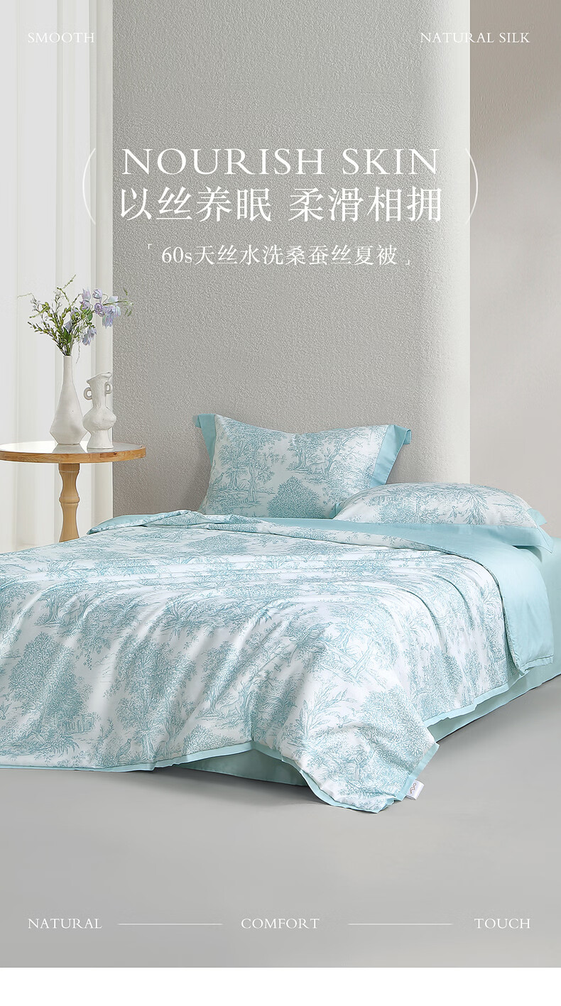 水星家纺100%桑蚕丝夏被空调被夏凉被子A类抑菌可机洗 南法·马塞庄园水洗桑蚕丝夏被(薄荷绿) 150cm*200cm