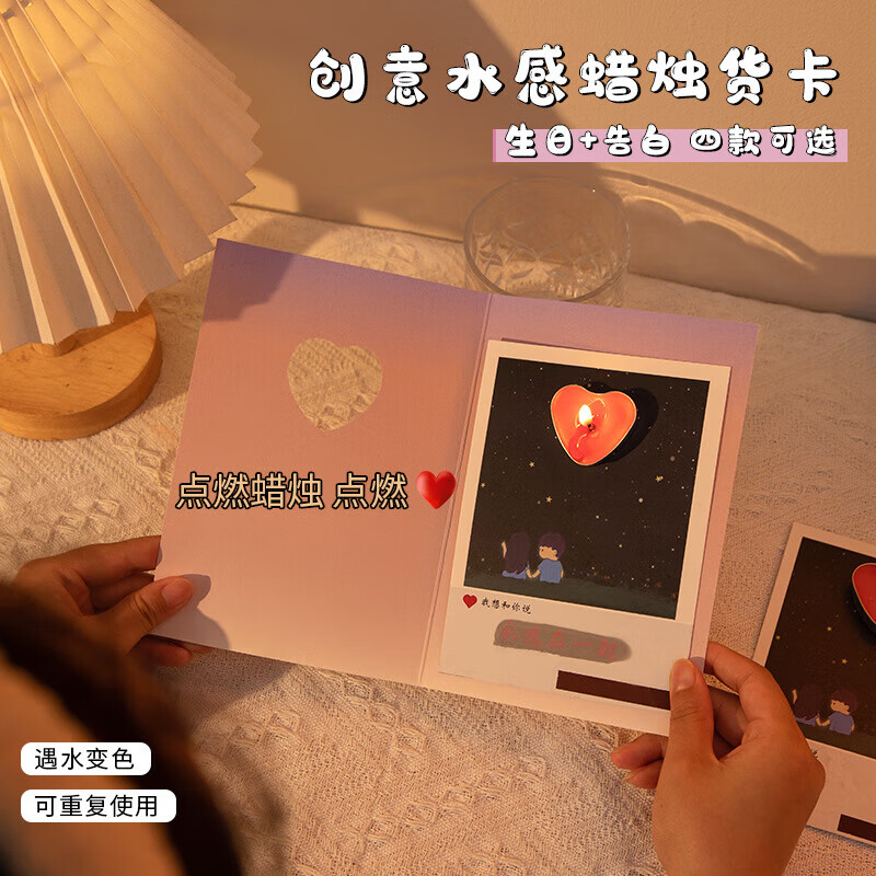 WANIOT七夕情人节创意水感藏字贺卡520表白惊喜明信片爱心蜡烛燃烧卡片生日送女朋友情侣新年礼物 水感藏字贺卡【我好喜欢你】可重复使用