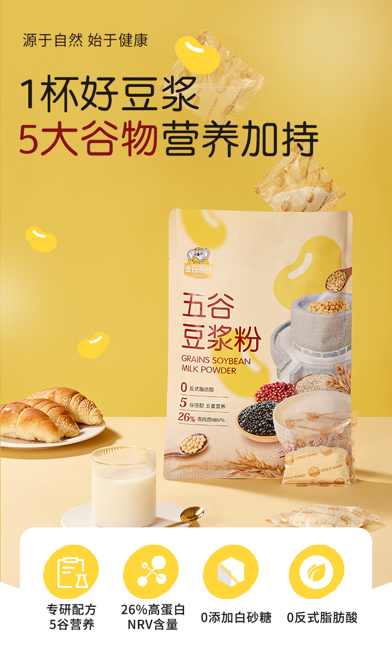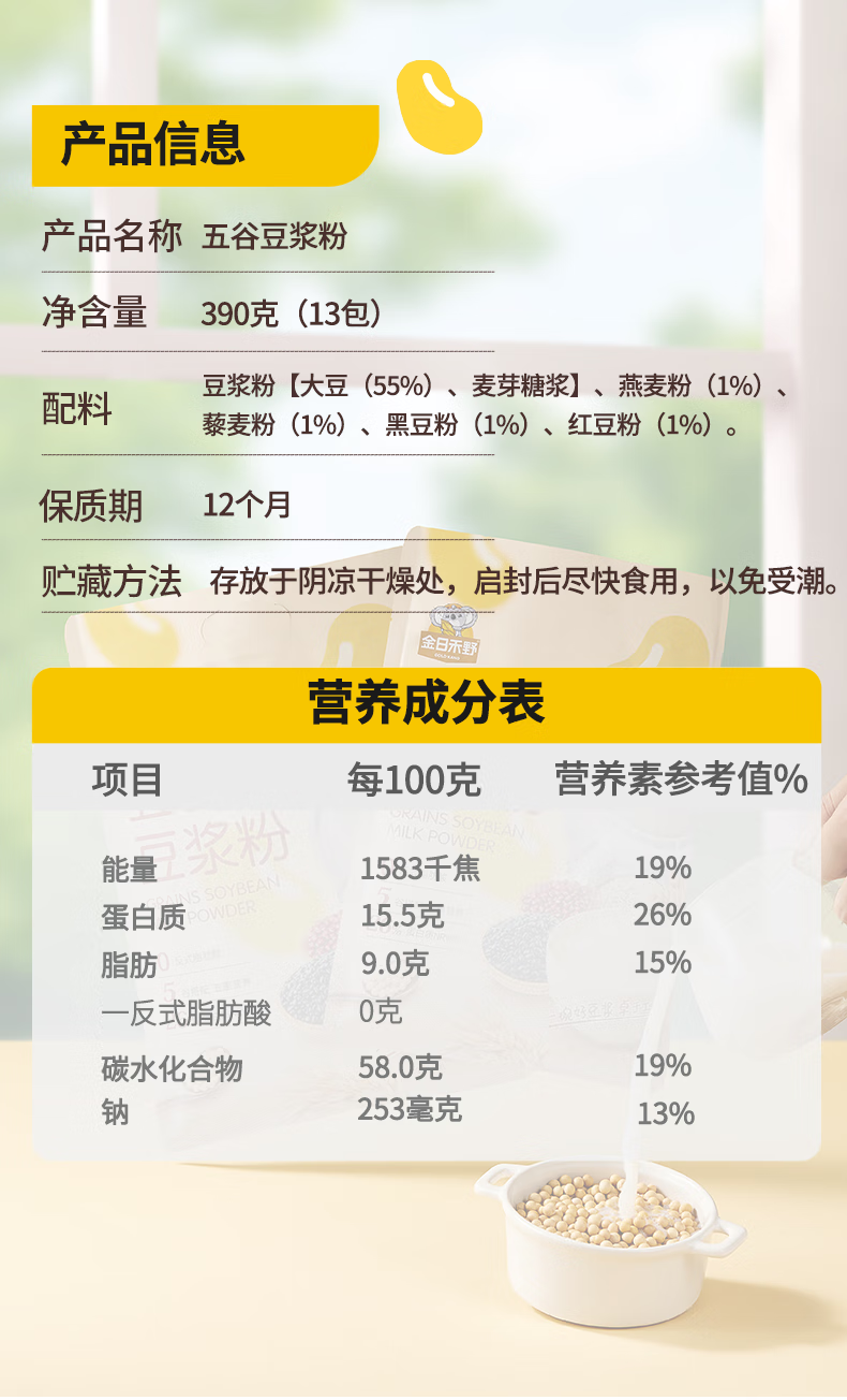 金日禾野五谷豆浆粉390g营养早餐速溶即食冲饮谷物代餐豆浆粉独立包装袋装