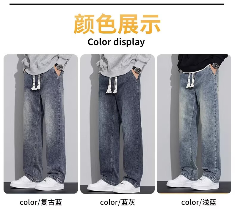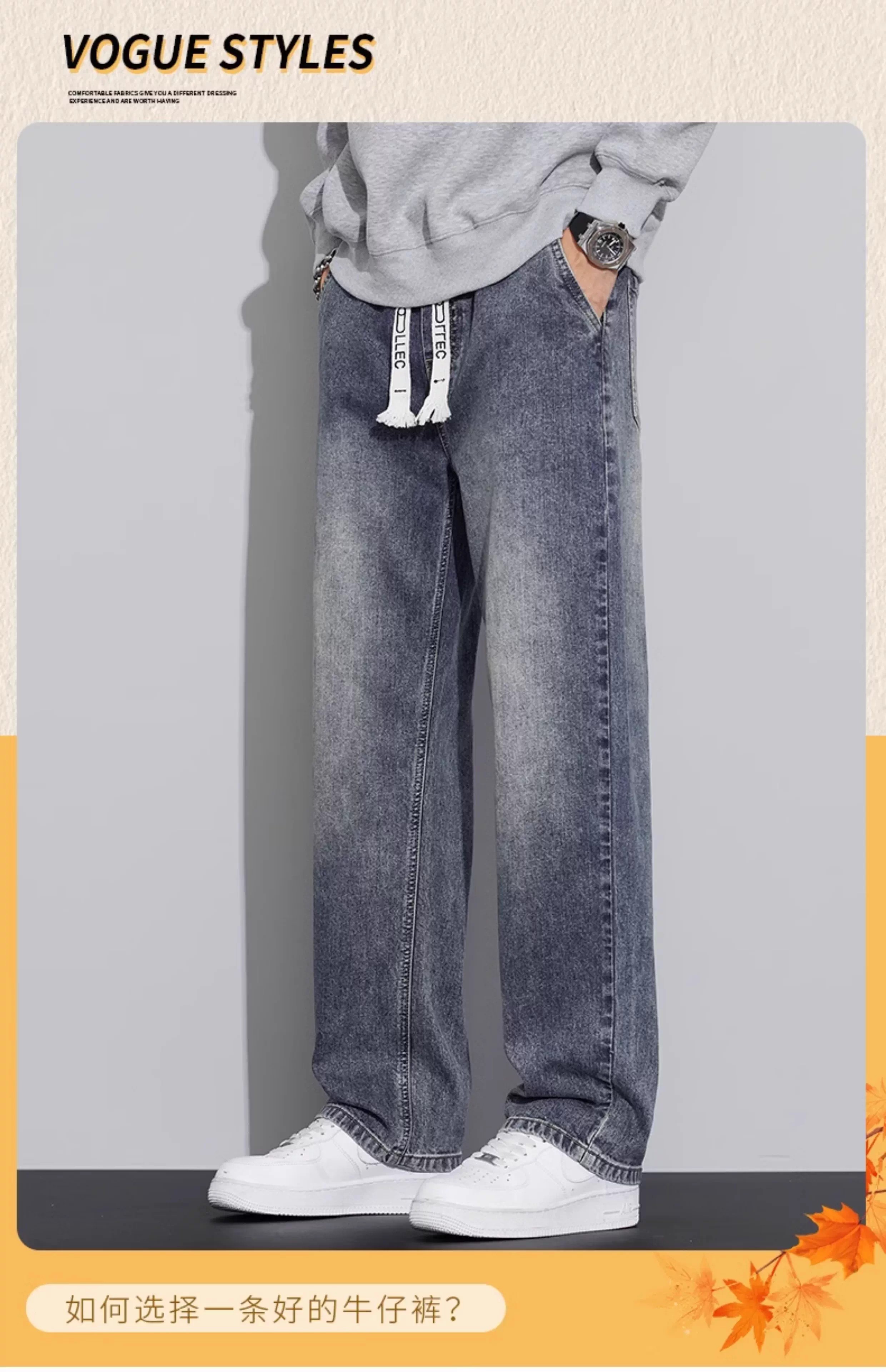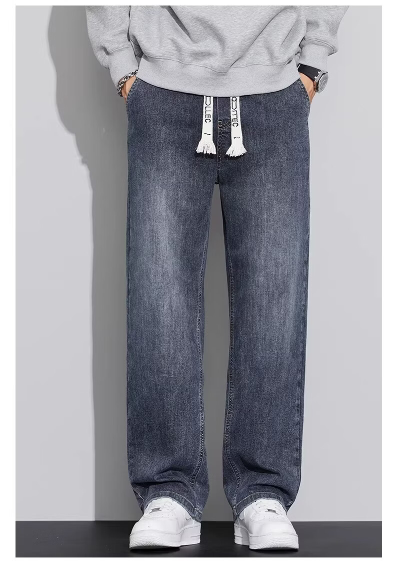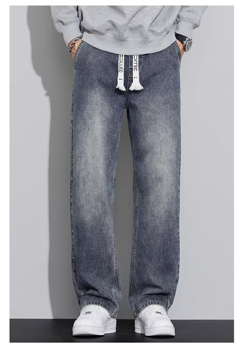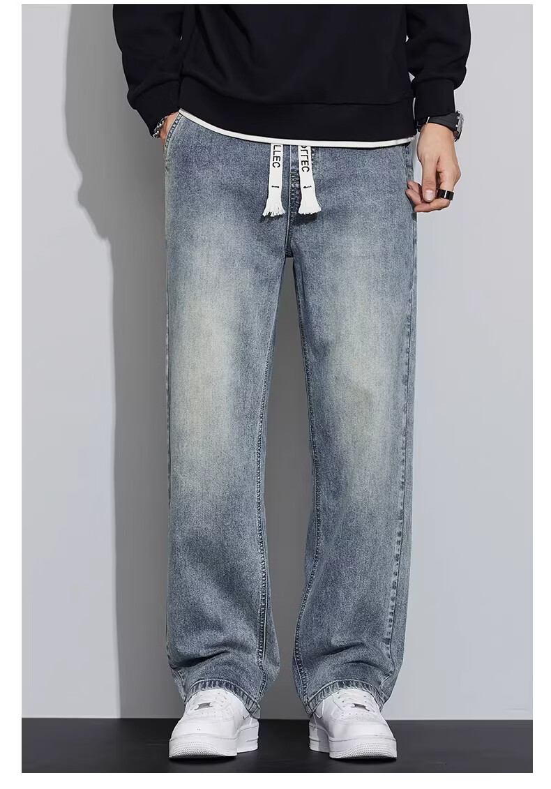 真维斯(Jeanswest)2026春季新款牛仔裤男款宽松直筒长裤男士简约抽绳阔腿休闲裤子 复古蓝 M