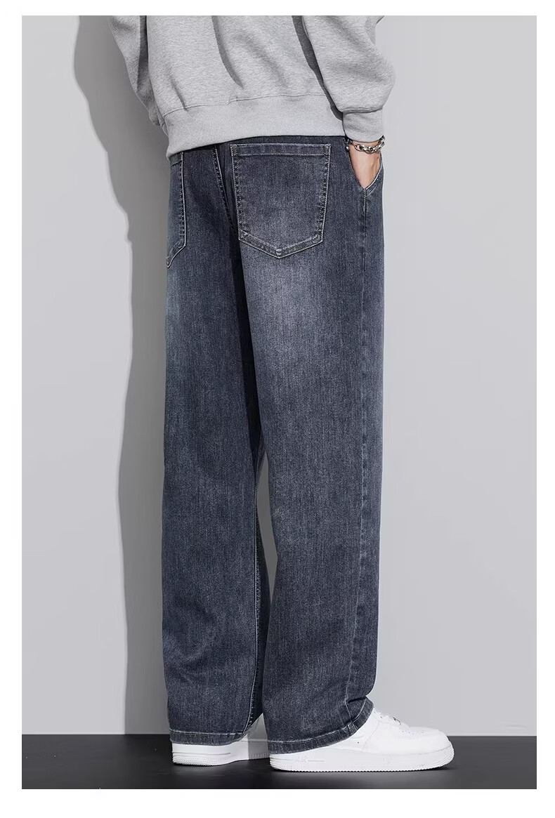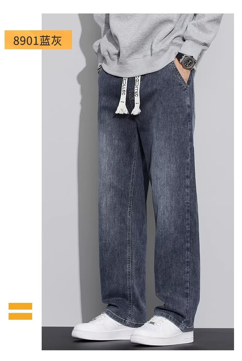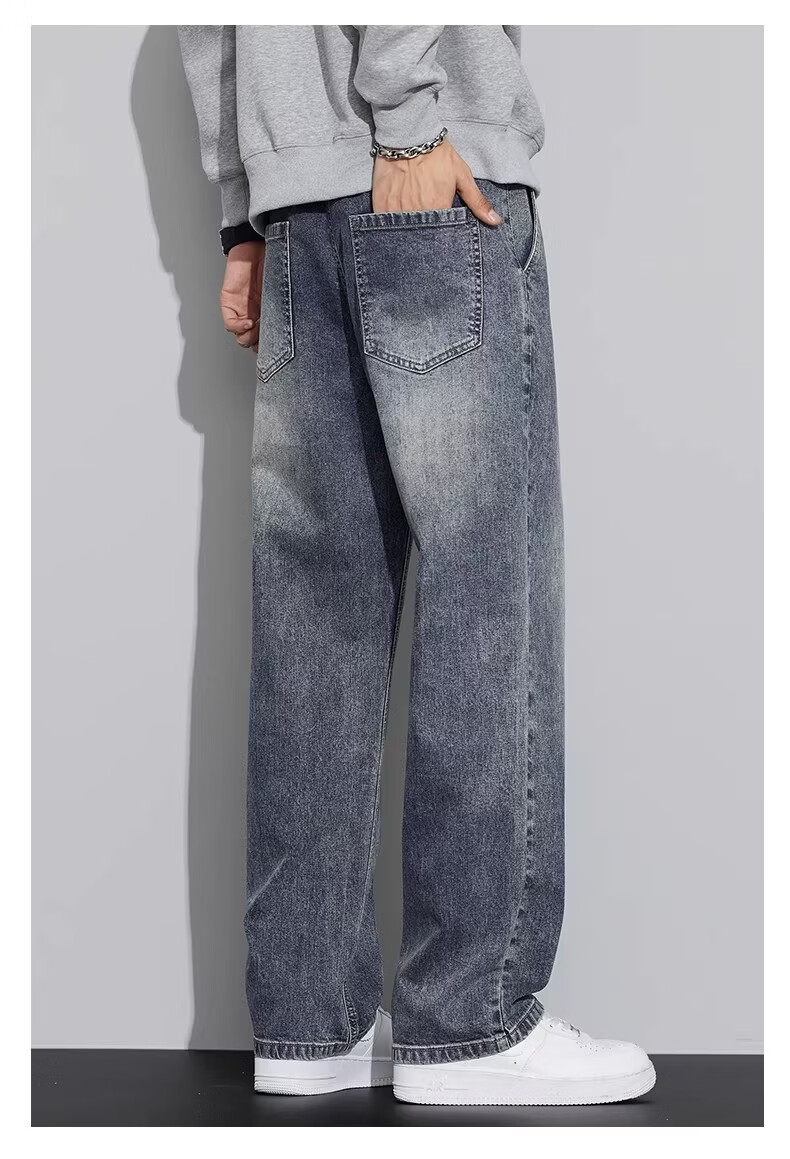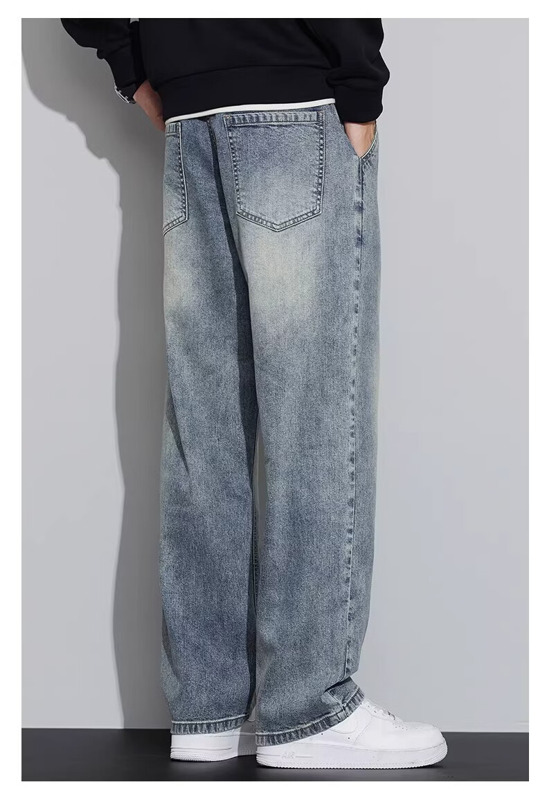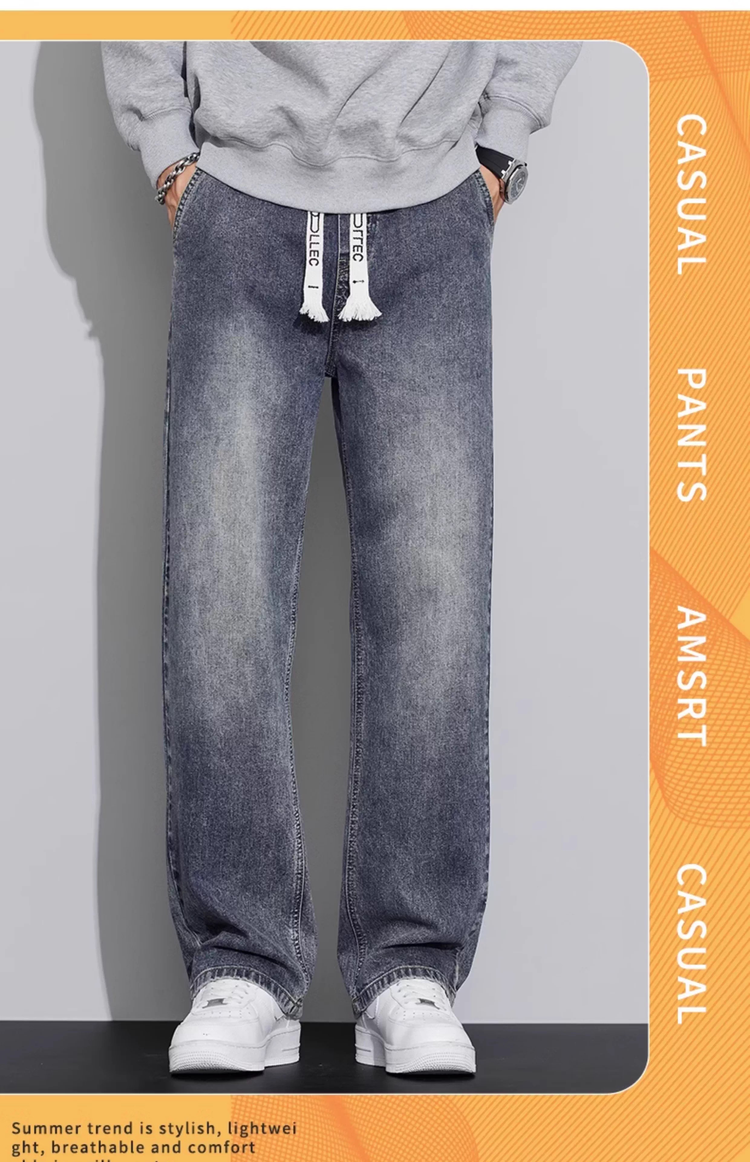 真维斯(Jeanswest)2026春季新款牛仔裤男款宽松直筒长裤男士简约抽绳阔腿休闲裤子 复古蓝 M