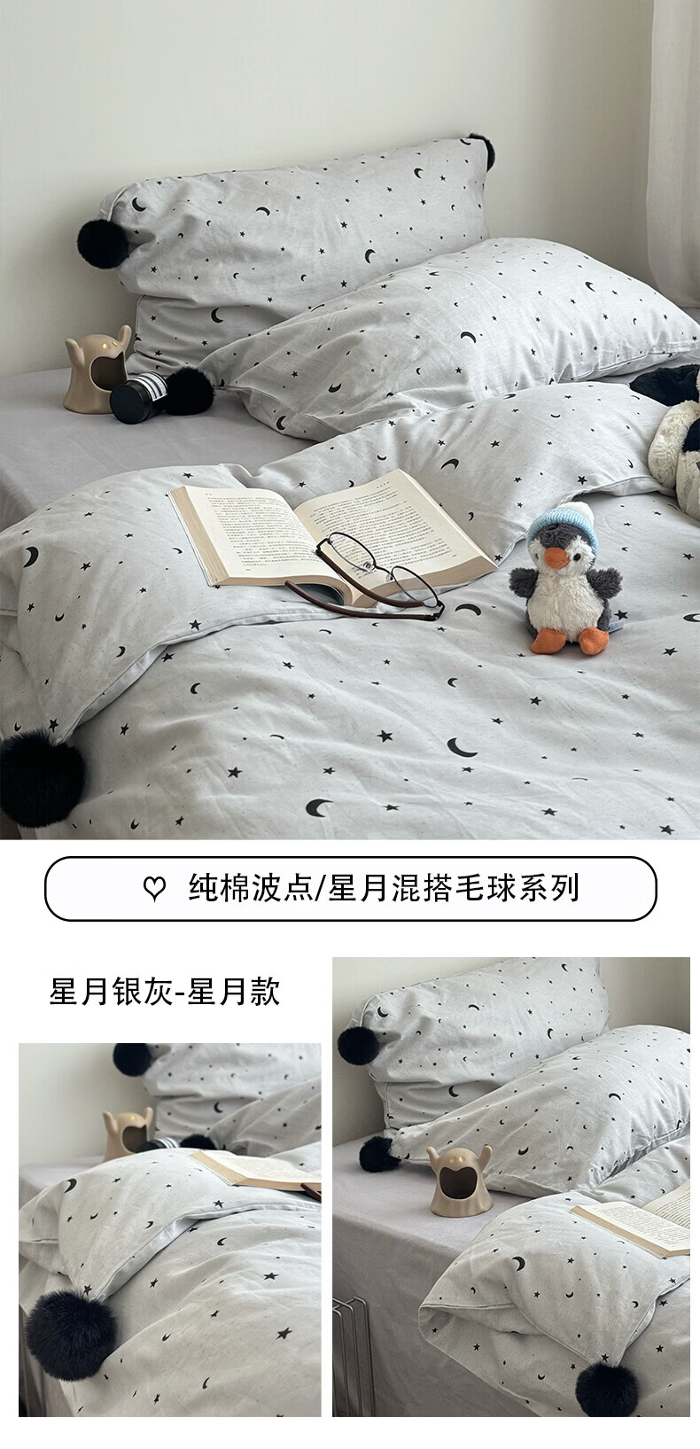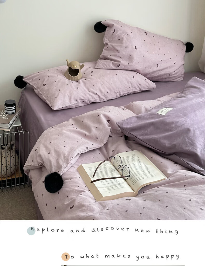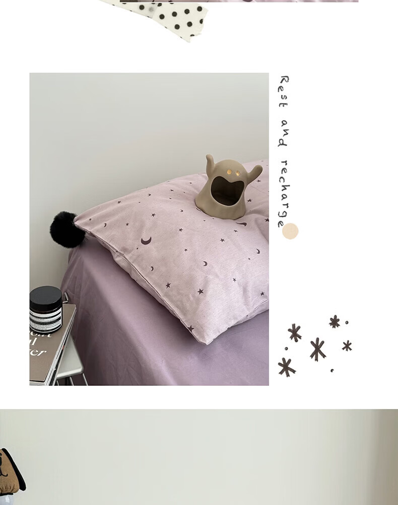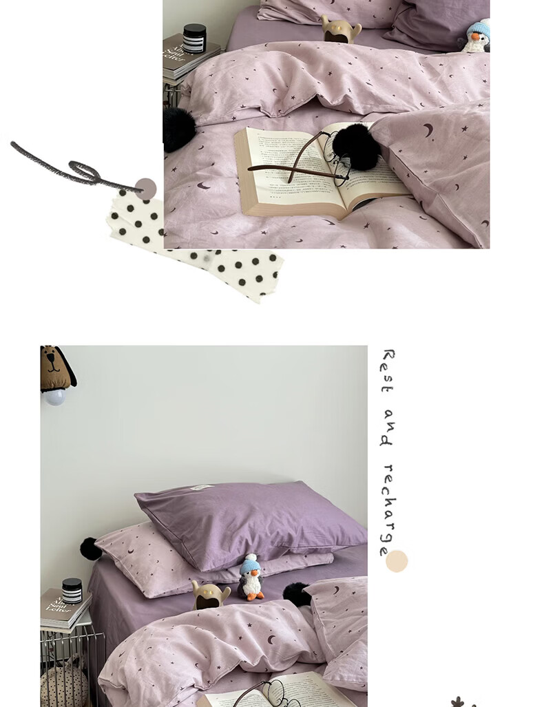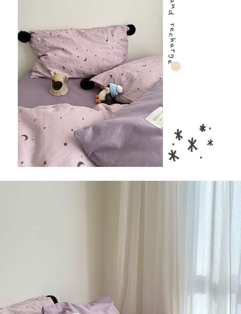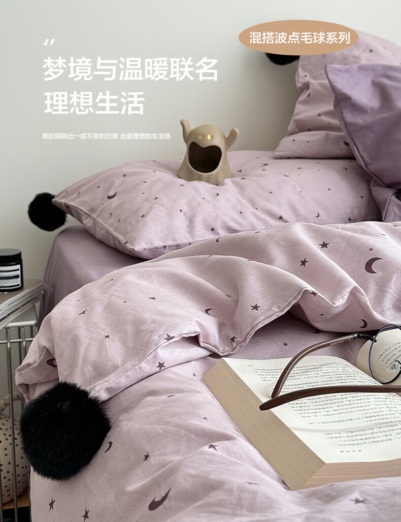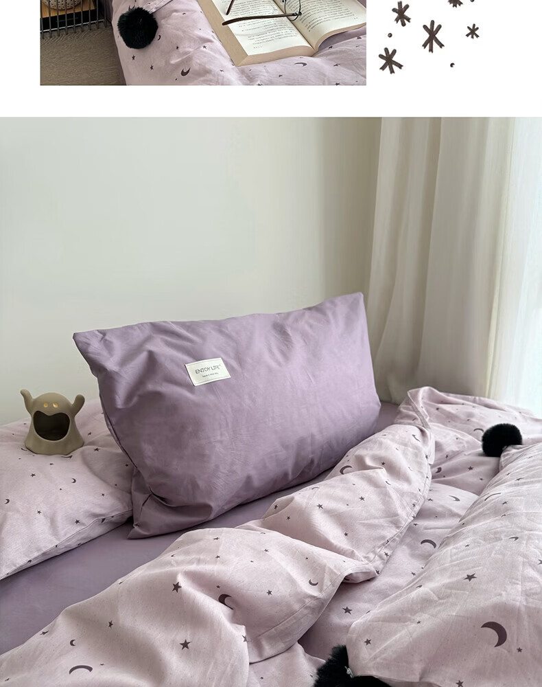 水星家纺四件套纯棉全棉亲肤棉裸睡撞色床单被套床笠款床上用品 星月银灰-混搭款 床笠款 1.8m被套加大四件套