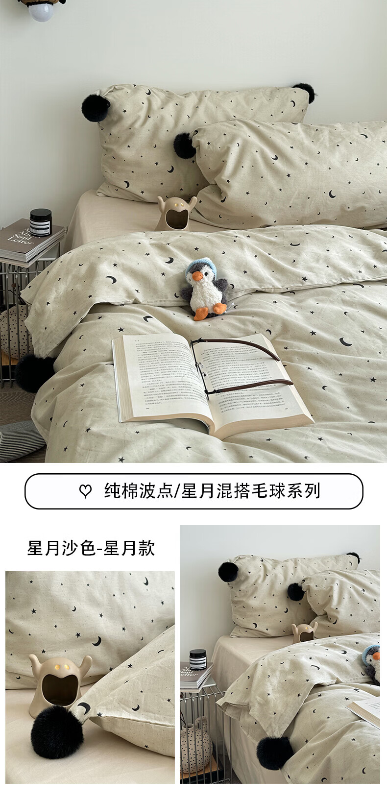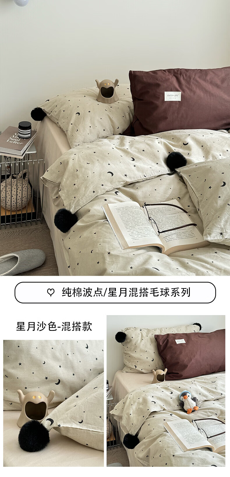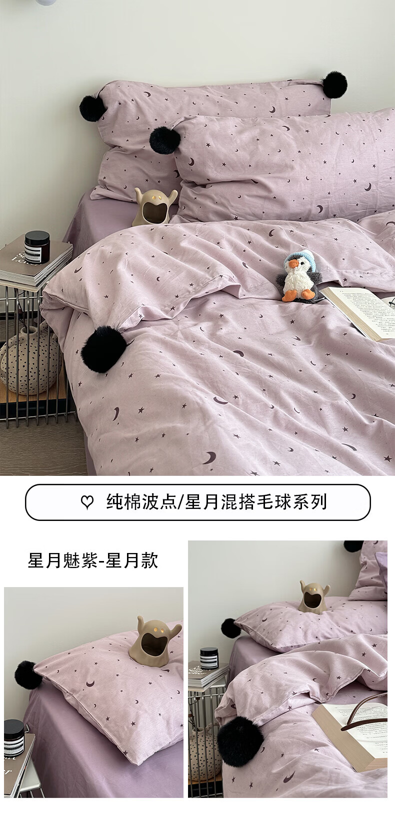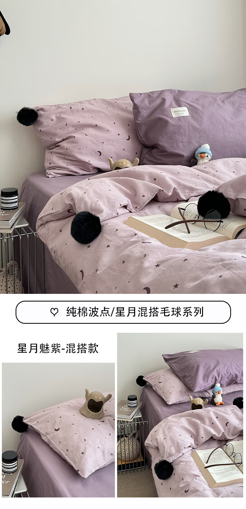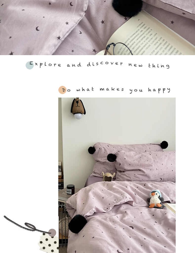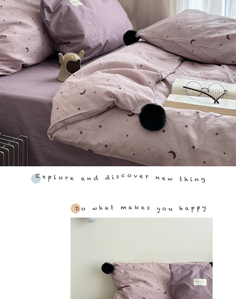 水星家纺四件套纯棉全棉亲肤棉裸睡撞色床单被套床笠款床上用品 星月银灰-混搭款 床笠款 1.8m被套加大四件套