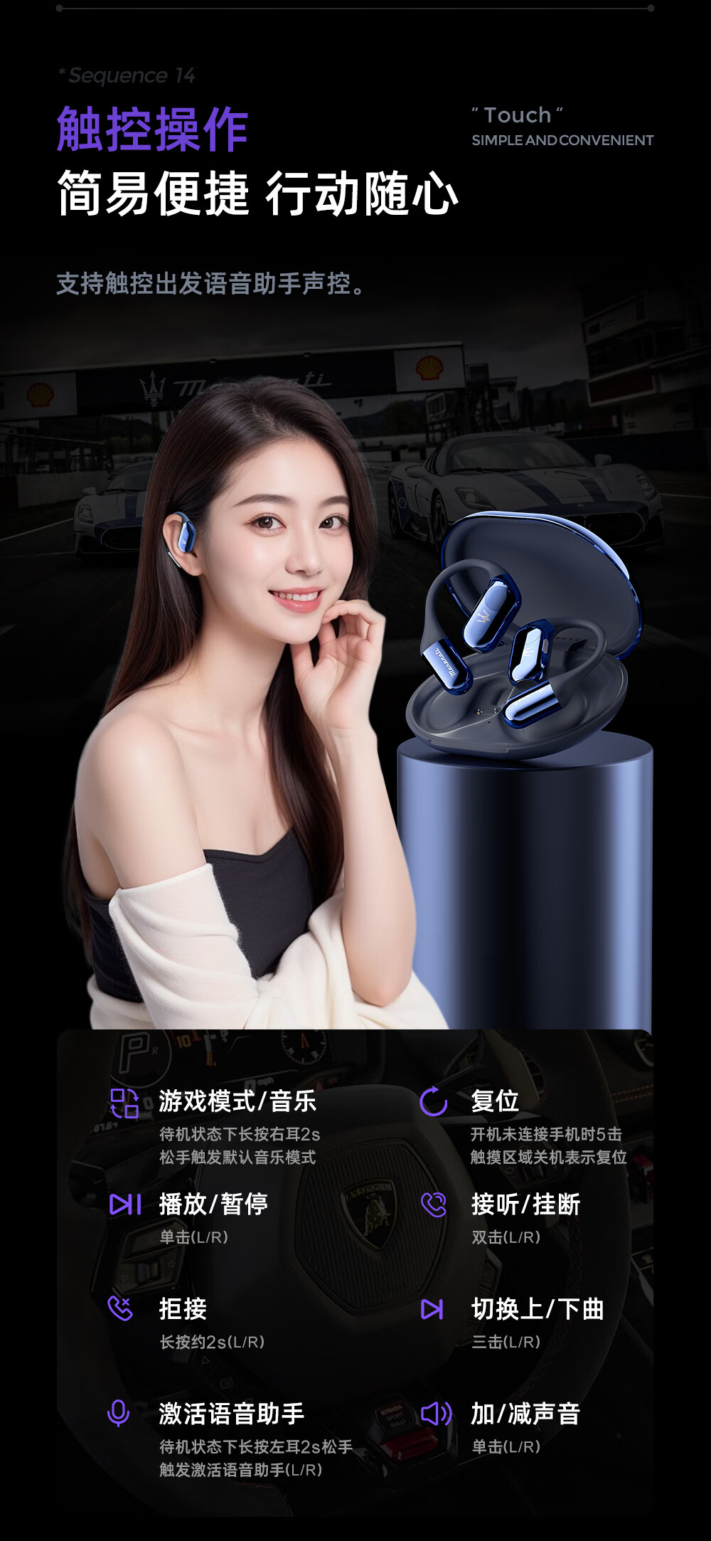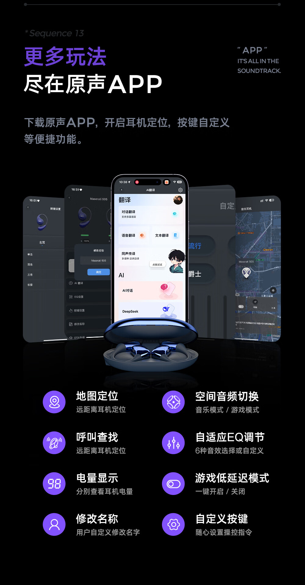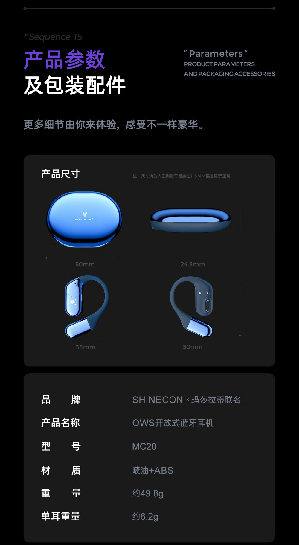 千幻SHINECON玛莎拉蒂联名智能Ai同声传译蓝牙耳机高清耳麦MC20无线降噪新款礼物 暮光蓝