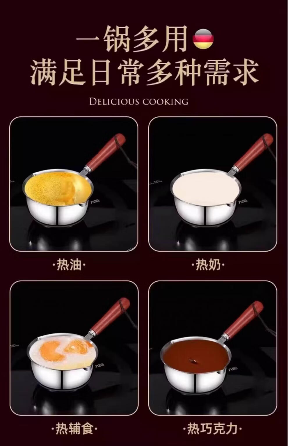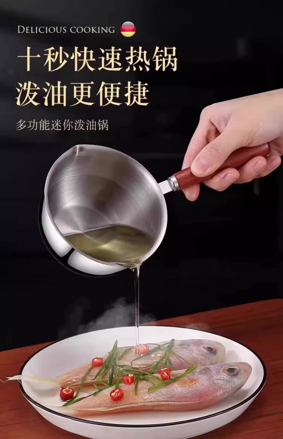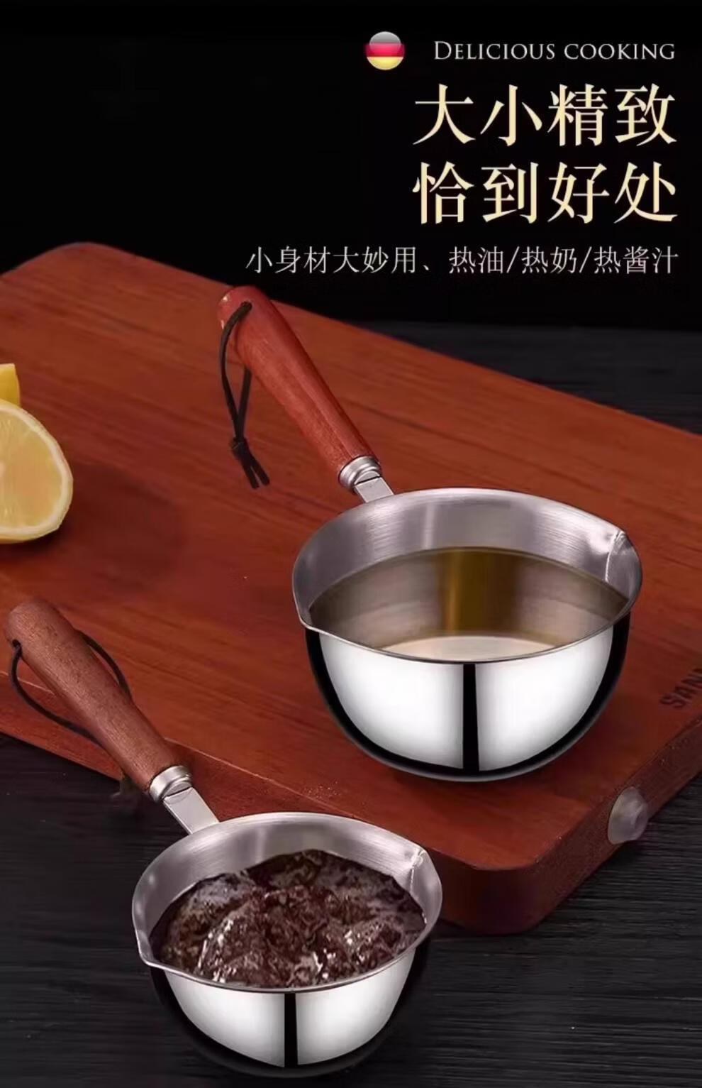 超市代购同款316不锈钢泼油小锅泼油小锅家用烧油浇油迷你 实木手柄【大号-5个】防滑防烫 2.5寸