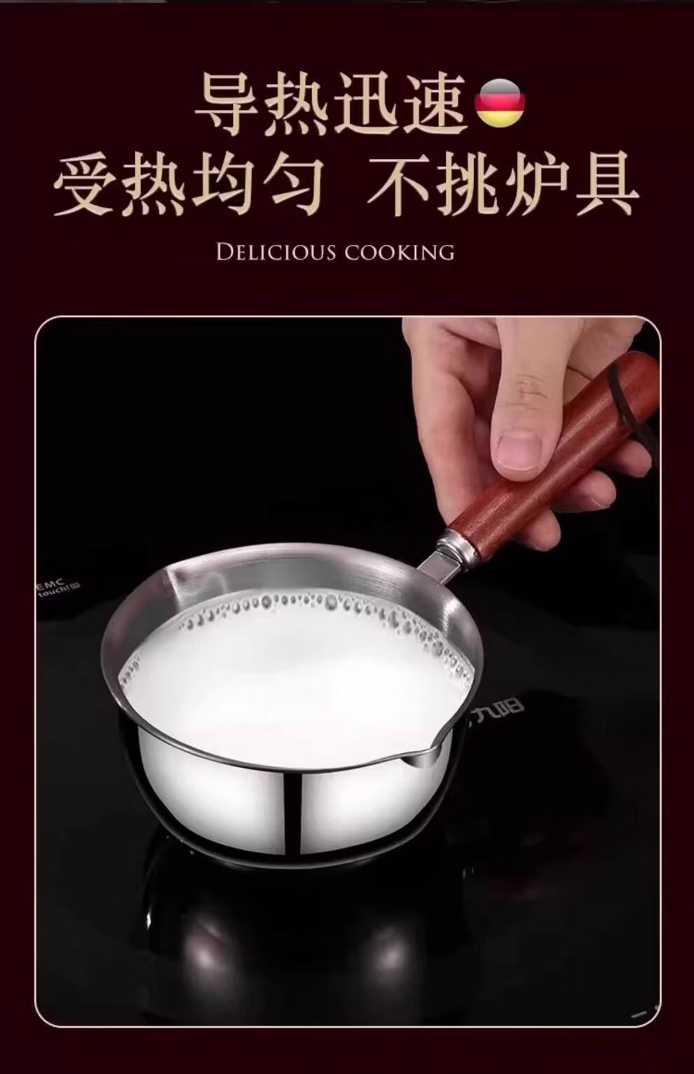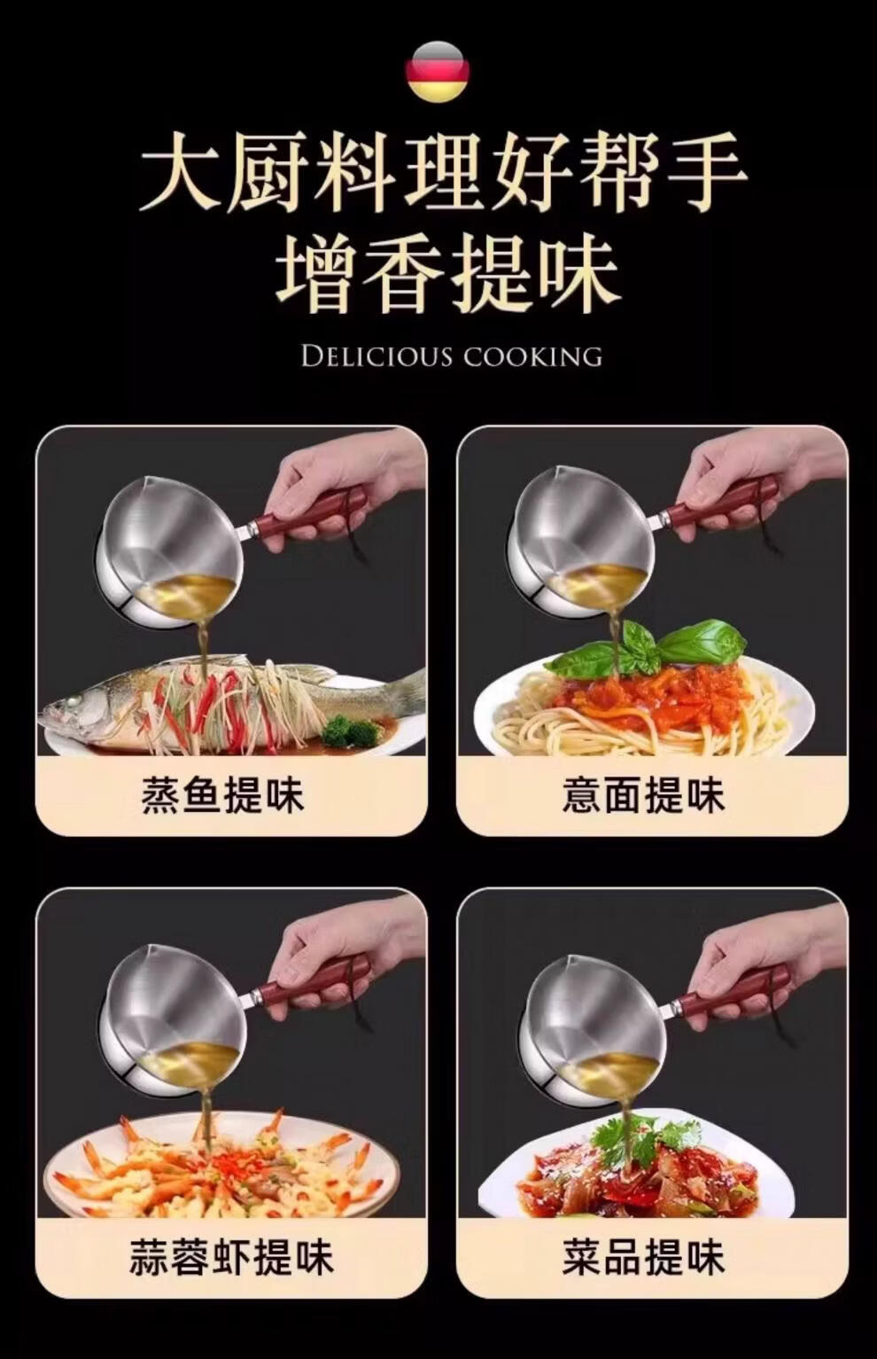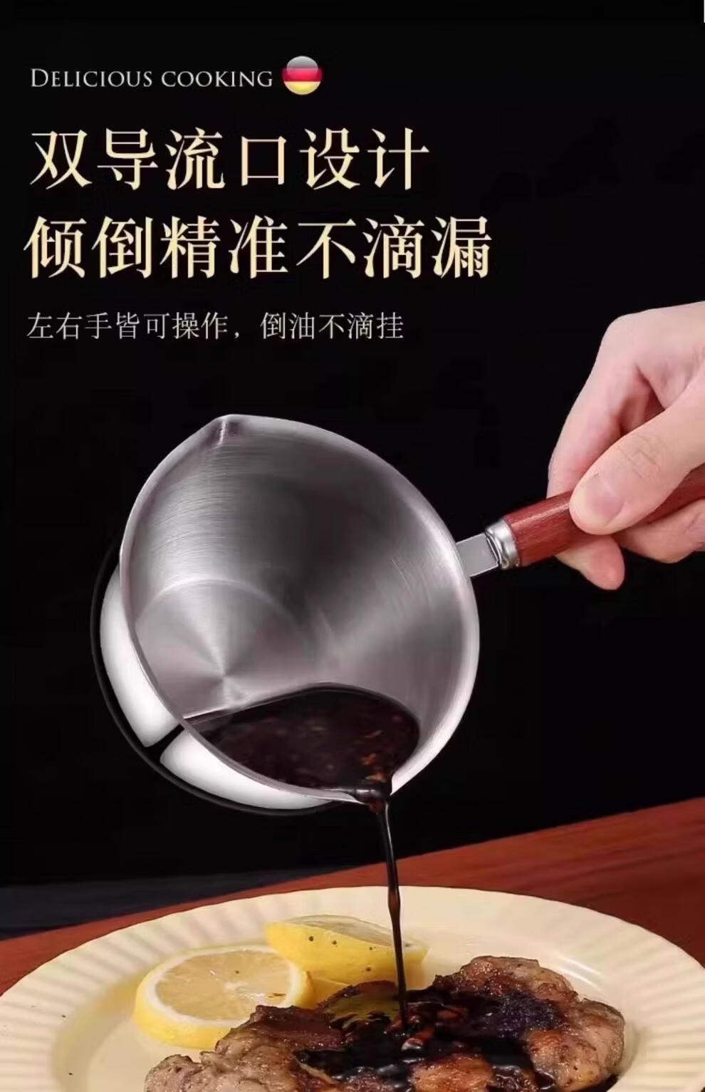 超市代购同款316不锈钢泼油小锅泼油小锅家用烧油浇油迷你 实木手柄【大号-5个】防滑防烫 2.5寸