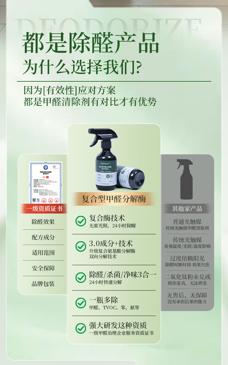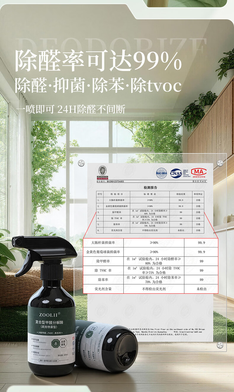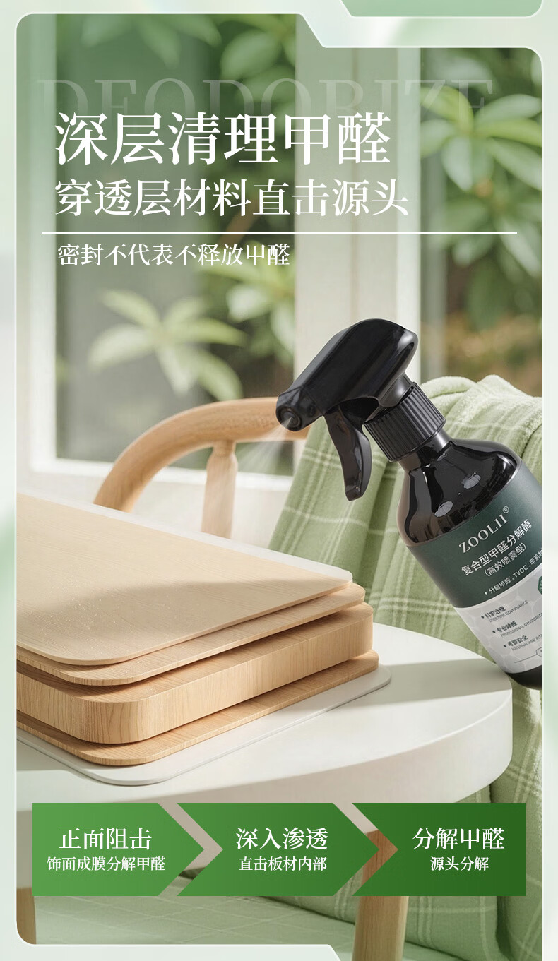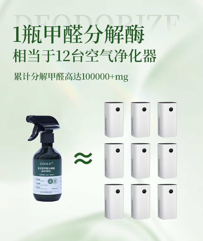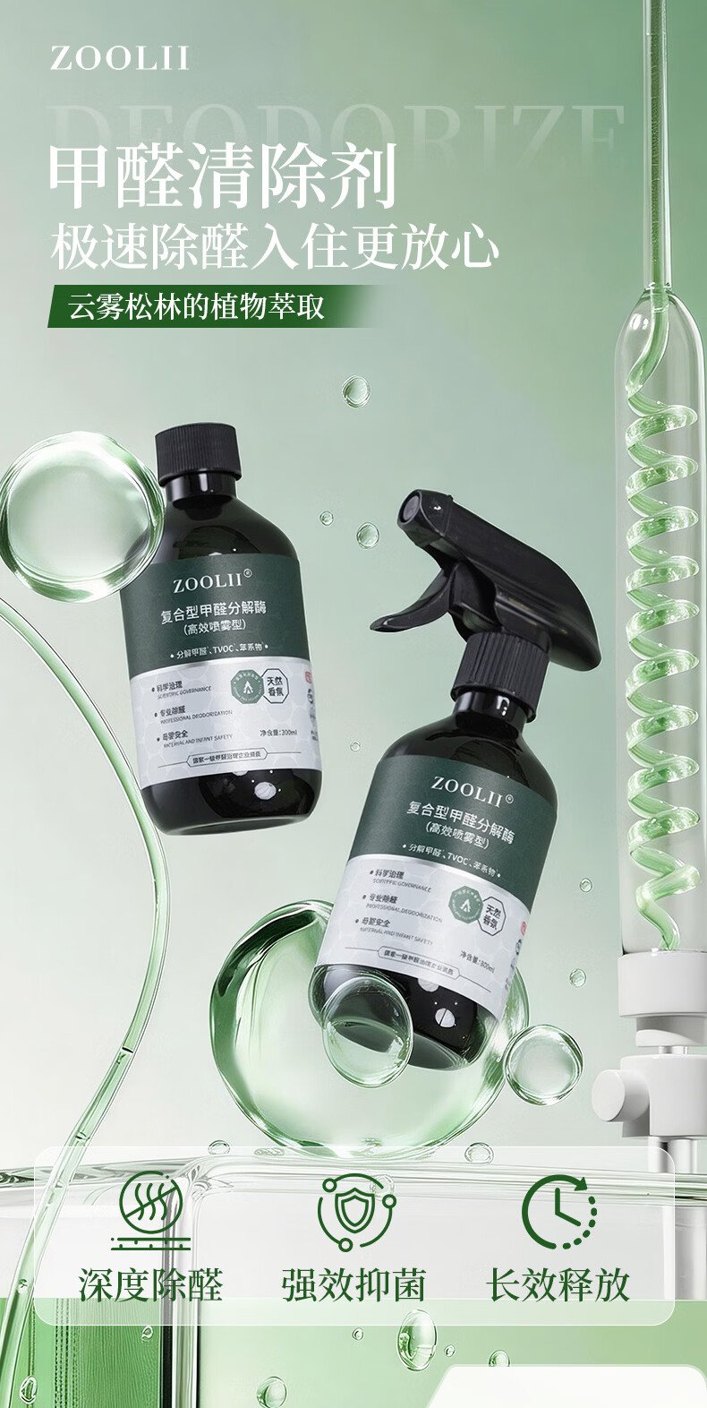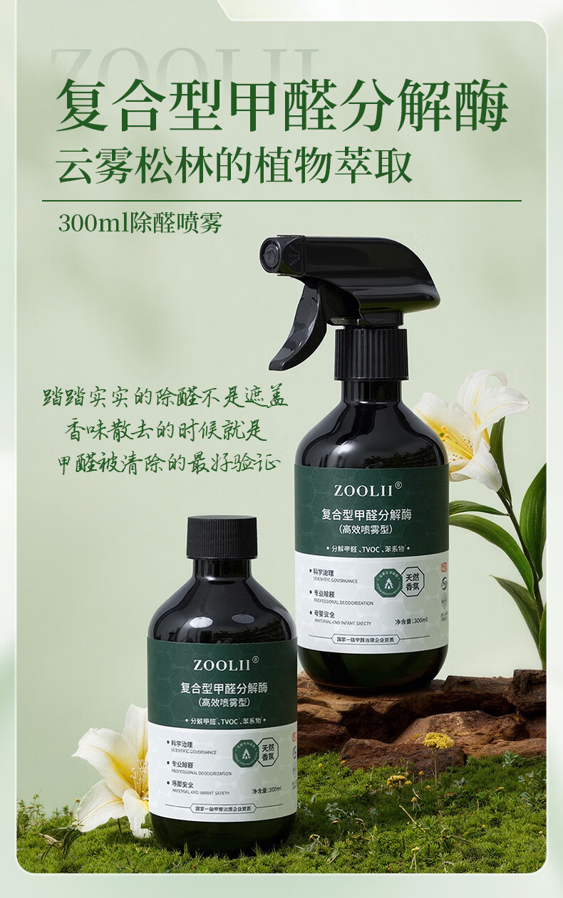 ZOOLII除甲醛喷雾净化空气新房急入住家用装修强力去甲醛清除剂除异味 拍1发3【两室一厅推荐】3瓶+赠喷头