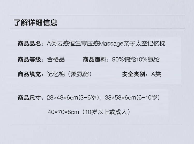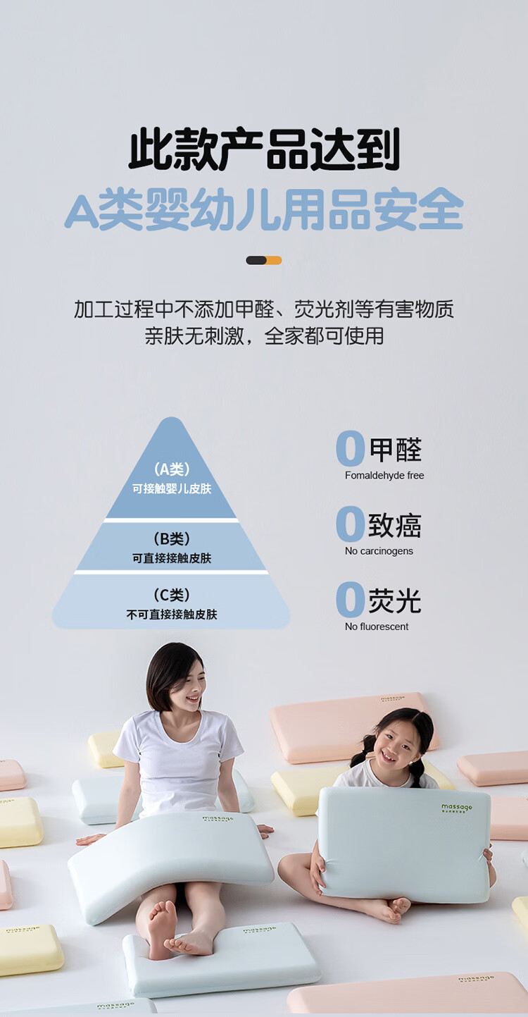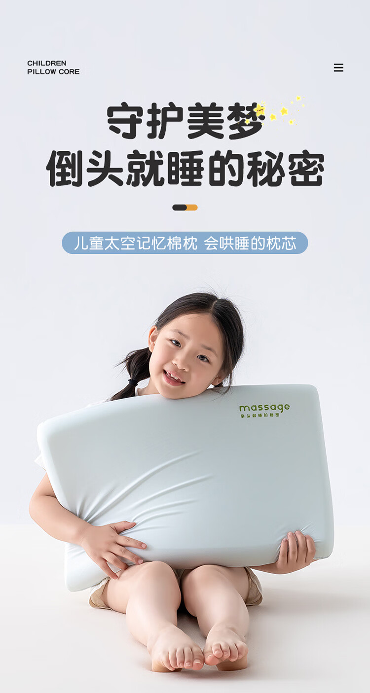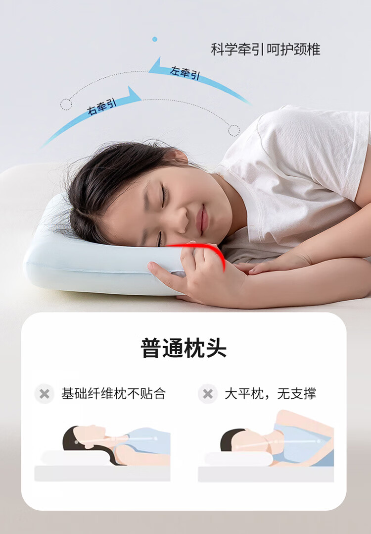 樵纪儿童枕头A类慢回弹减压记忆枕婴幼儿3-18岁分段颈椎专用枕礼盒装 蓝色 A类 单只 中枕 6cm 6-10岁中童阶段