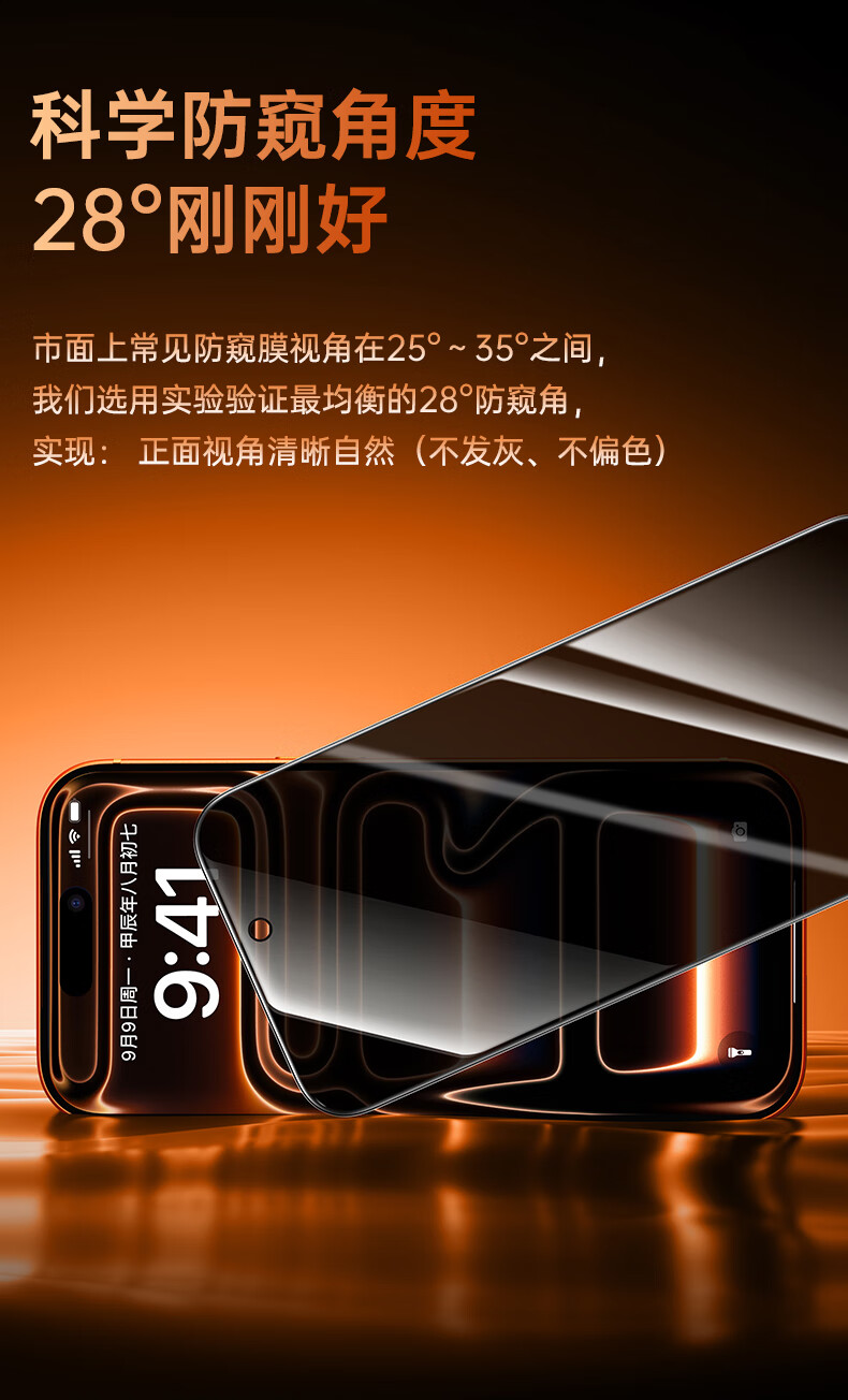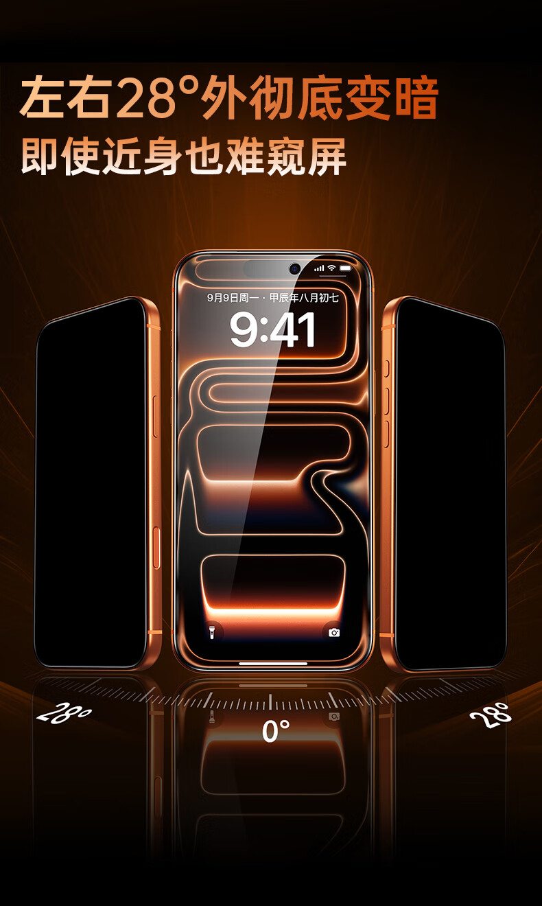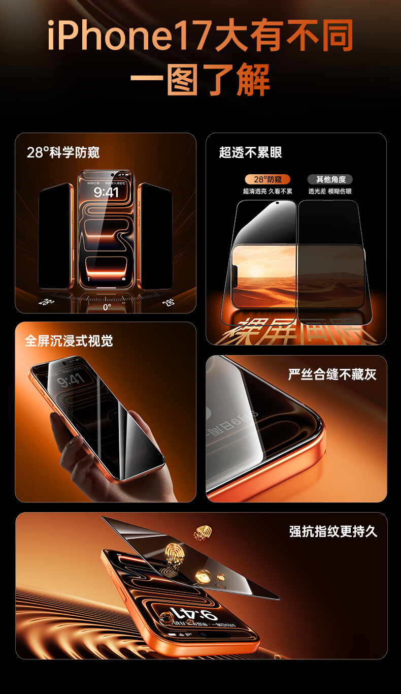 亿色【贴膜不伤机】适用iphone17promax钢化膜防偷窥苹果17pro手机膜17pm贴膜air超薄防爆抗指纹玻璃膜 【2片】苹果17ProMax 防窥膜 超清防窥膜+抗反射