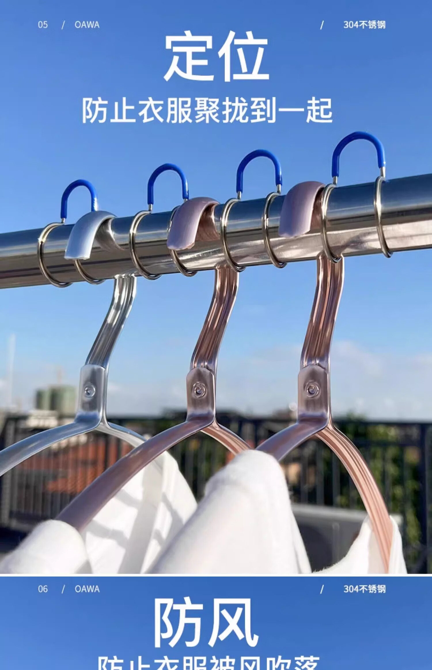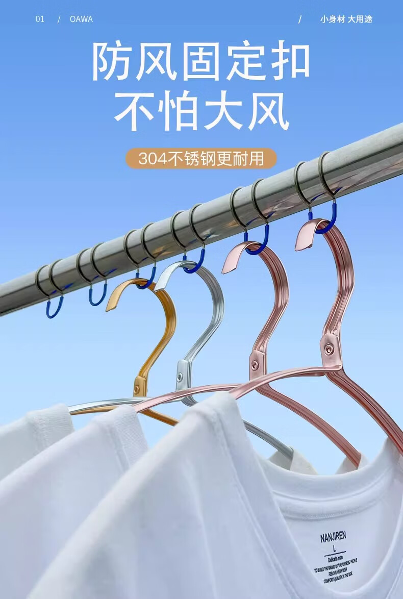 娃欧WAOW防风扣304不锈钢晾衣杆衣架固定扣防滑室外晾衣固定夹防风固定扣 304不锈钢 防风扣【绿色】 特大号(管周长116-132mm)-20个装