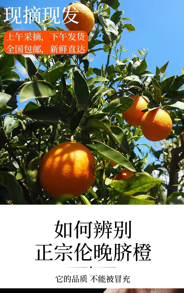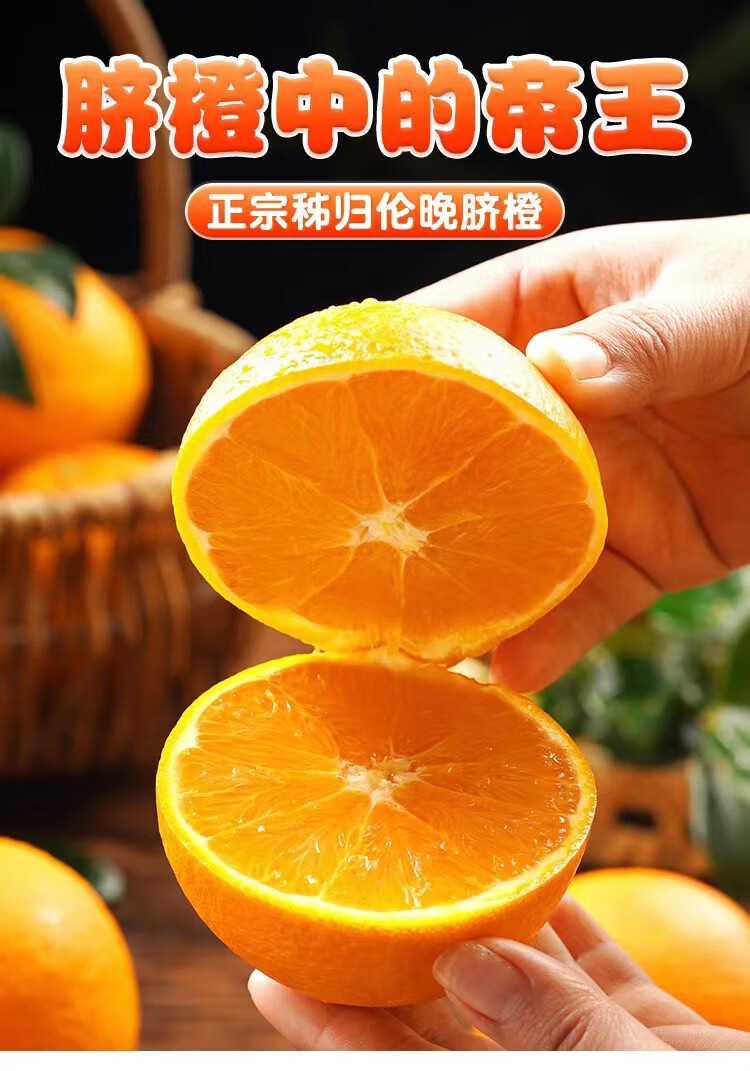 您家橙秭归伦晚脐橙甜正宗水果鲜橙酸甜爆汁整箱源头直发应季水果 伦晚脐橙净重5斤130g