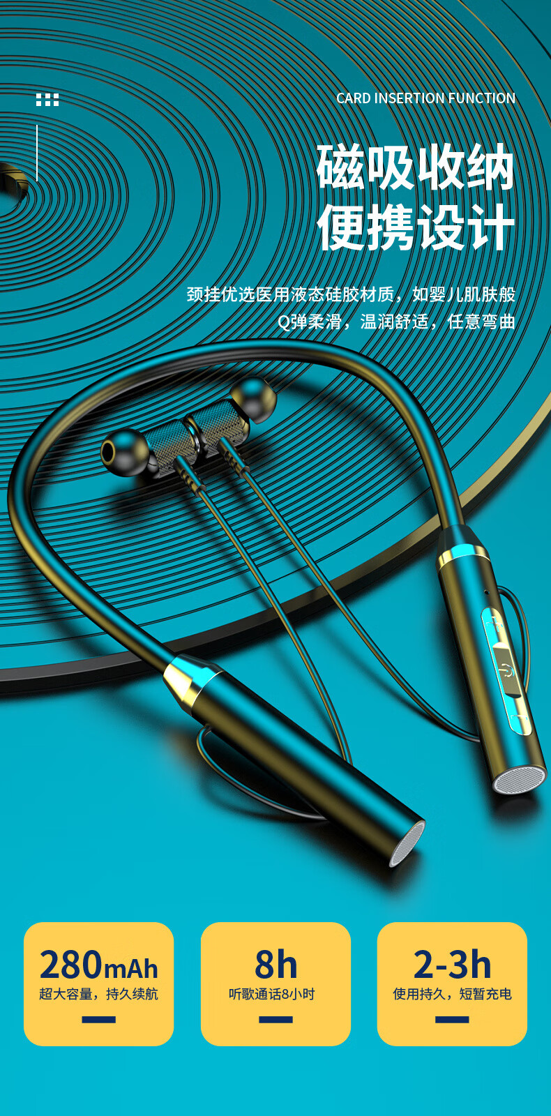 【优选好物】严选蓝牙无线耳机挂脖运动双耳入耳颈挂式超长待机续 G01【酷炫黑】彩色袋装