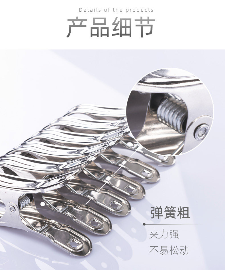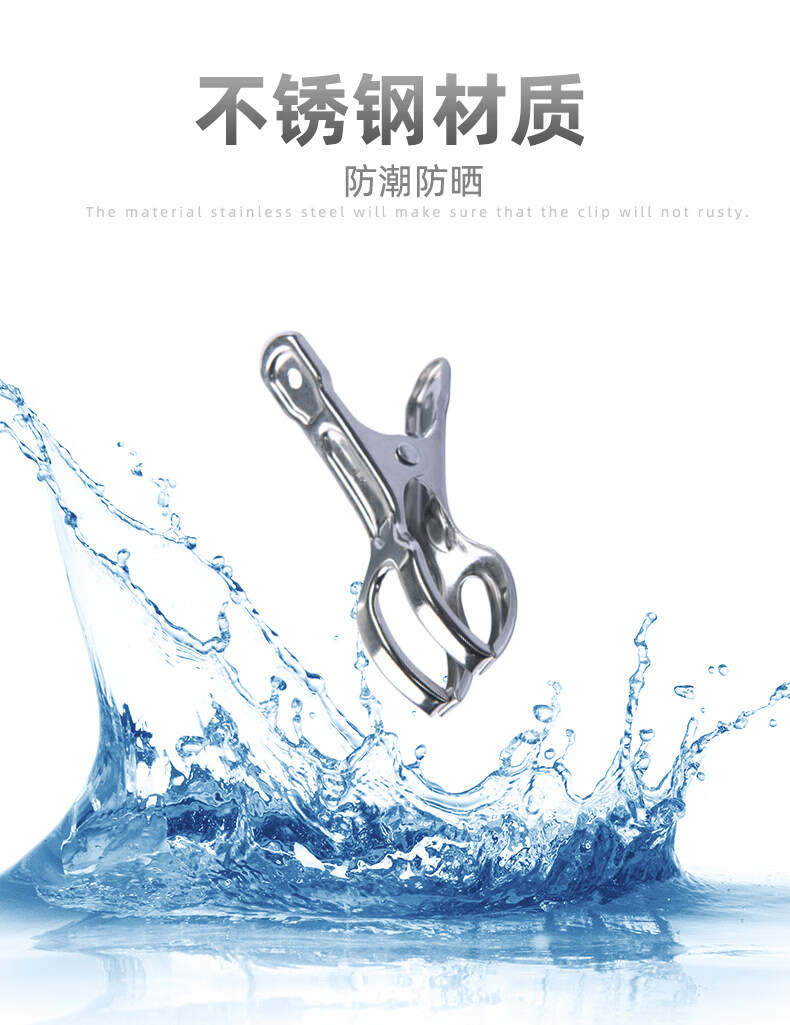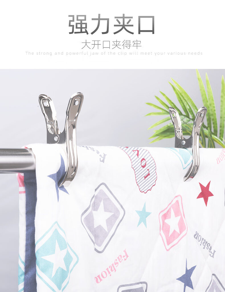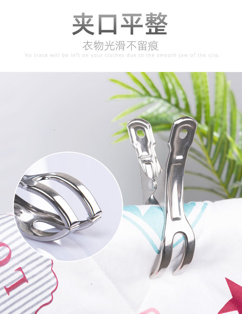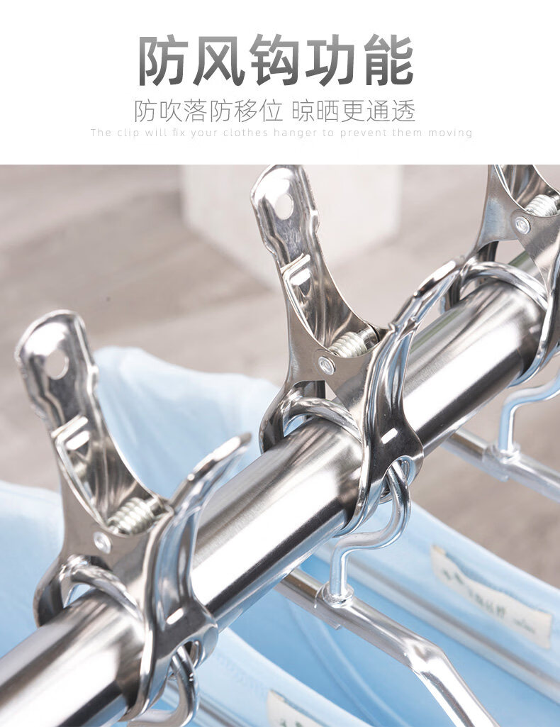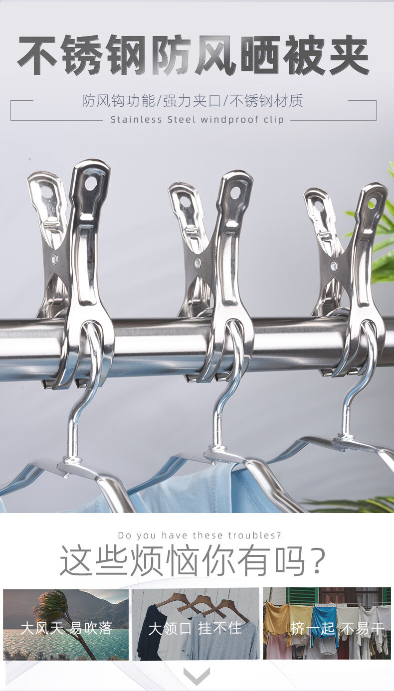 Kaooseen不锈钢防风夹强力防风夹子晾衣夹固定器衣服防风固定扣晒被收纳架 6个装