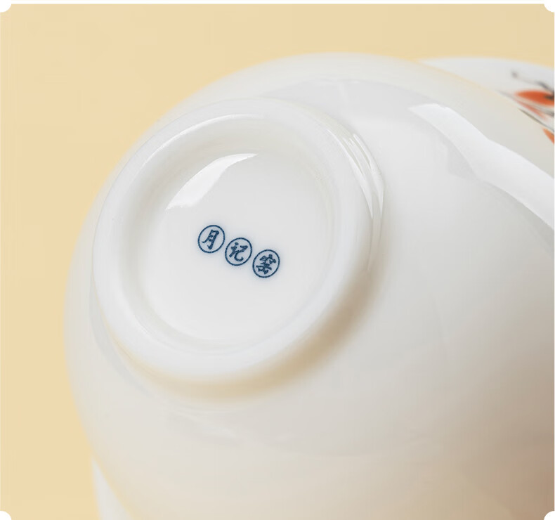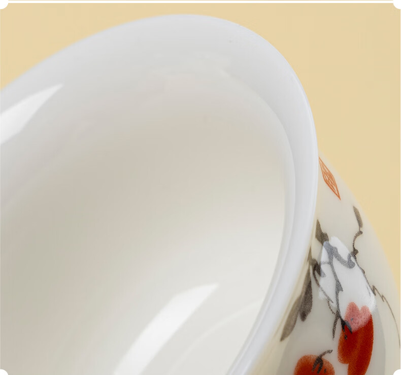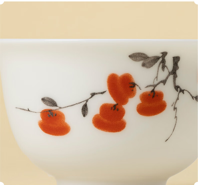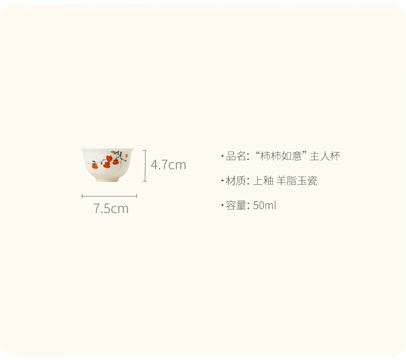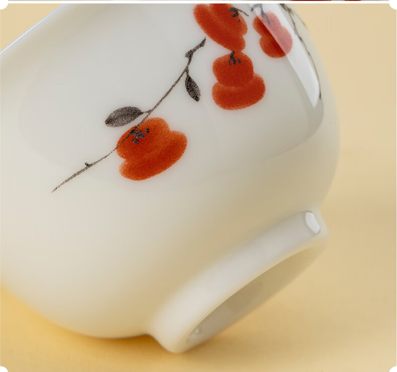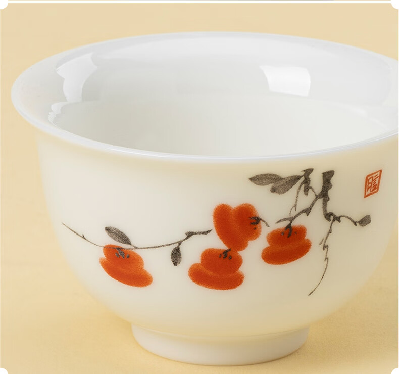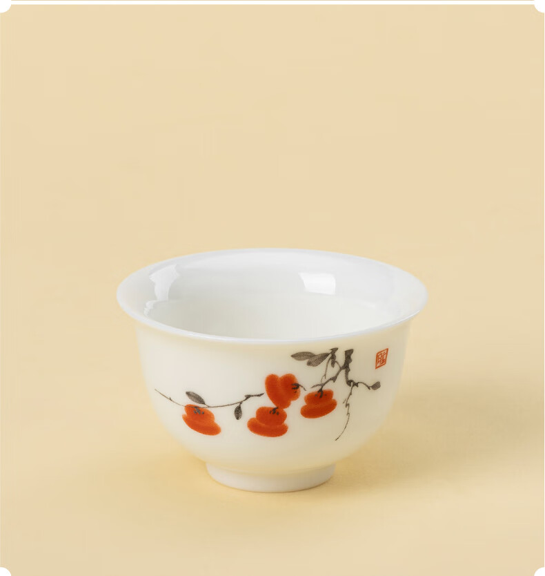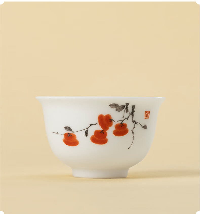 月记窑“柿柿如意”羊脂玉瓷压手主人杯 50ml(7分容)
