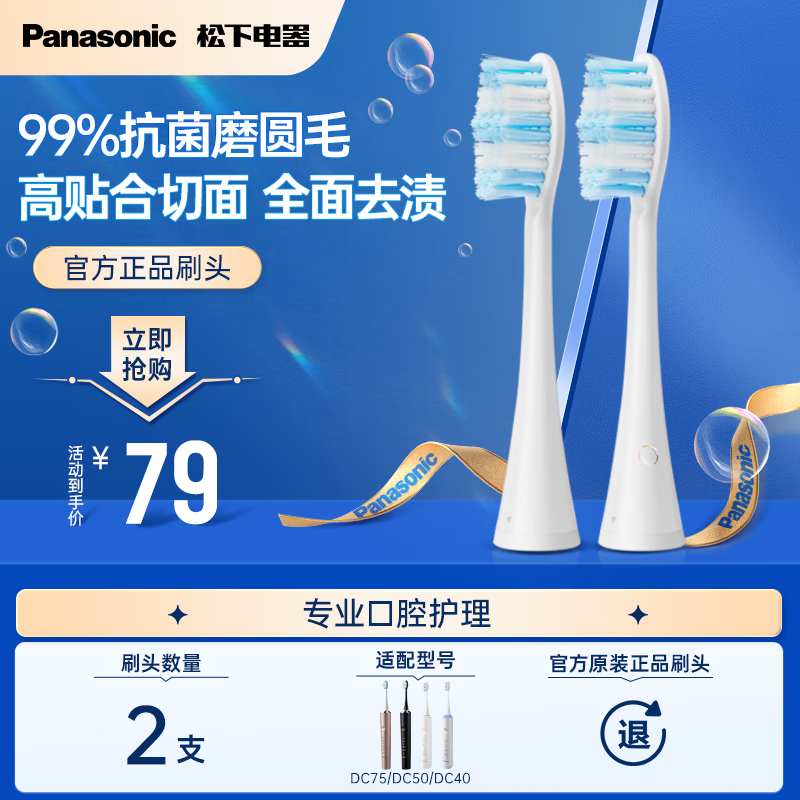 松下(Panasonic)WEW0882W405 牙刷头两只装 适用于DC75/DC50/DC40/PDP67