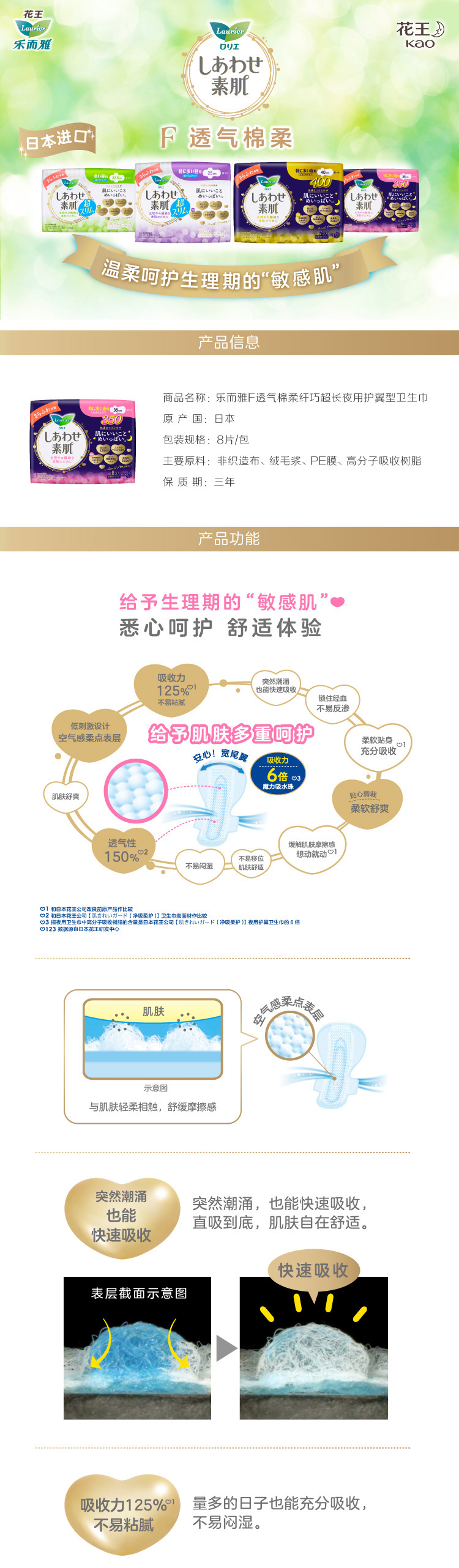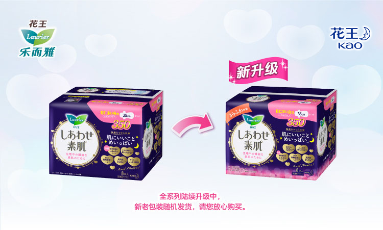 乐而雅花王进口F透气棉柔纤巧超长夜用护翼型卫生巾35cm8片姨妈巾自营