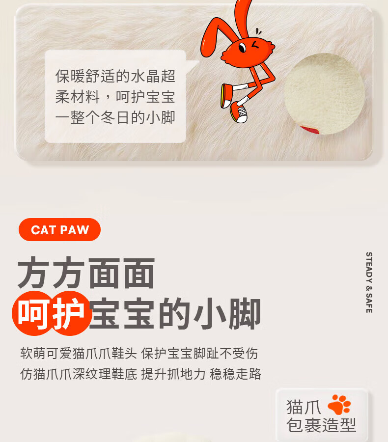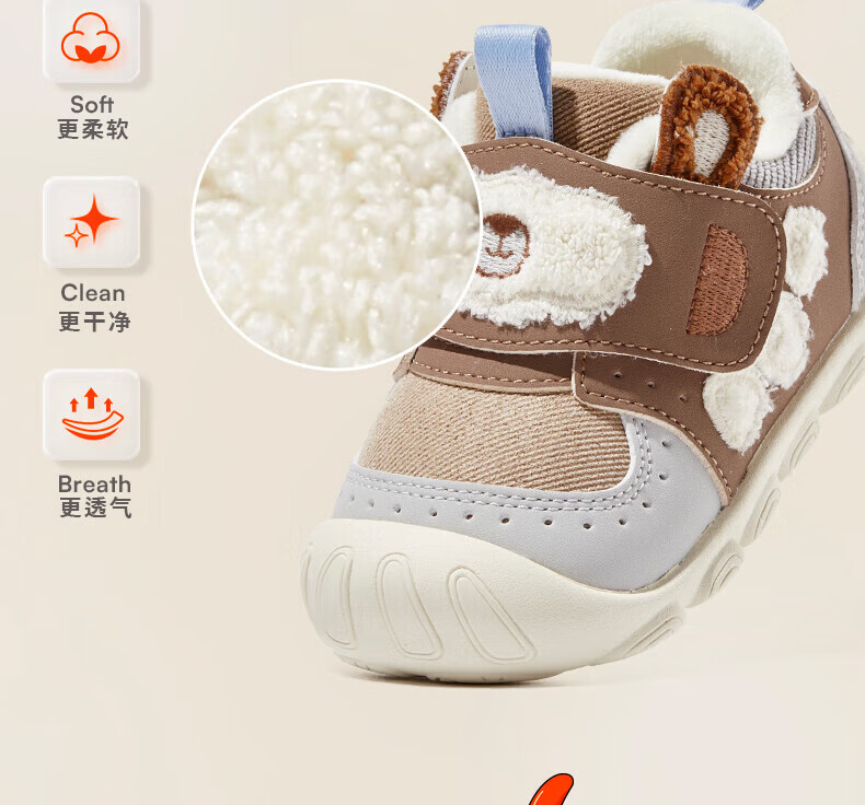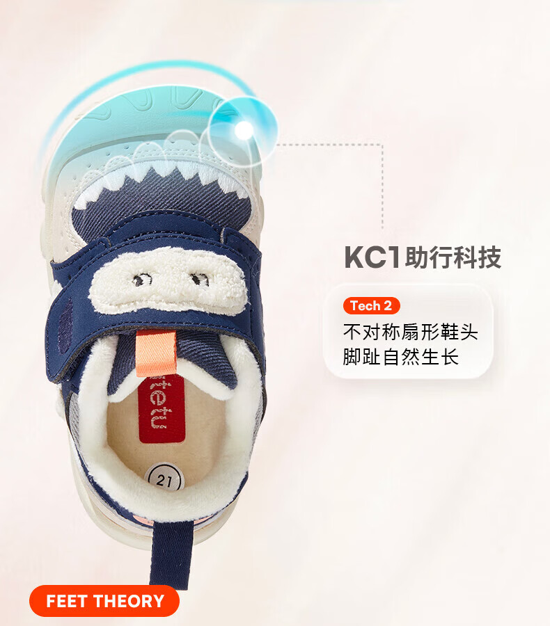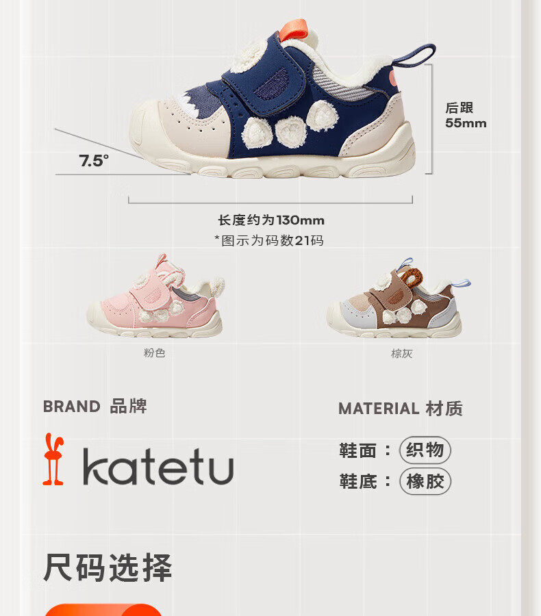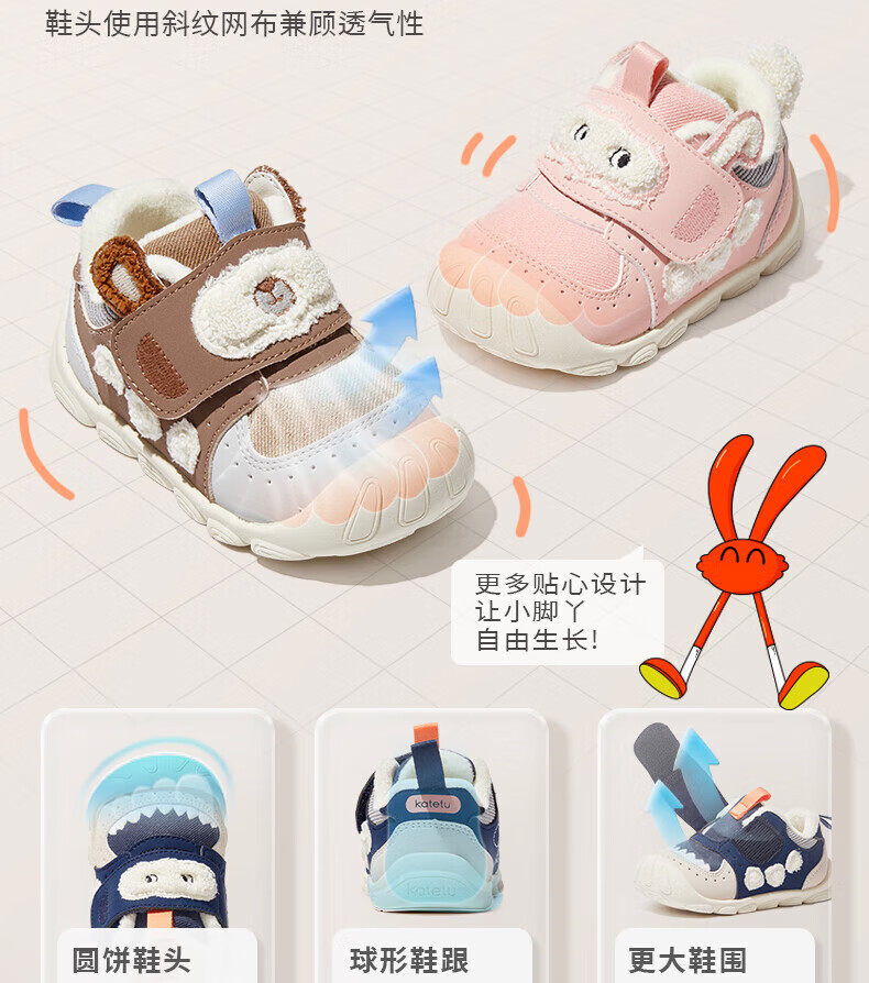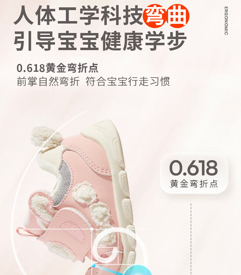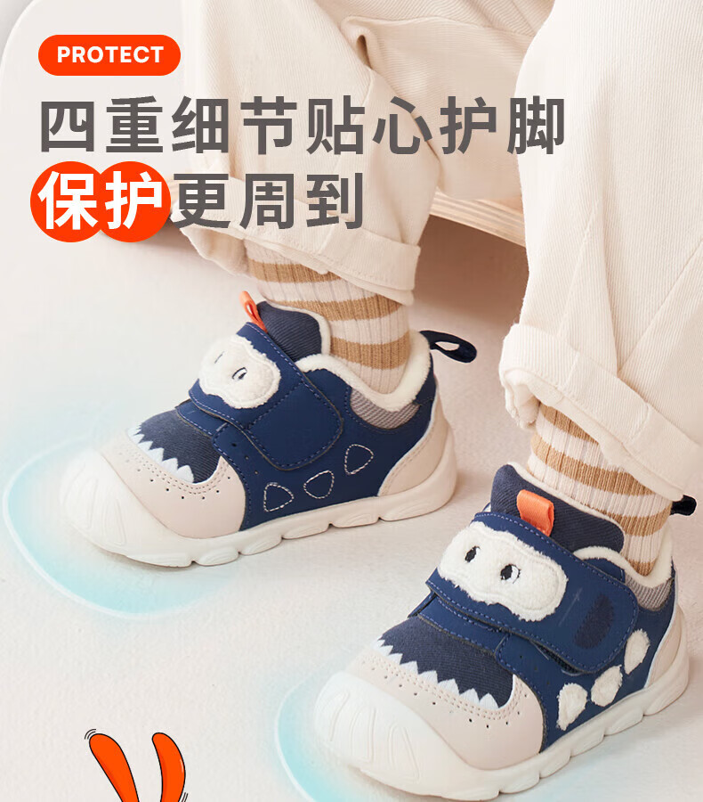 卡特兔婴儿学步鞋秋冬季加绒保暖鞋男女宝宝棉鞋室内防滑运动鞋机能鞋 粉色 19 内长12.0cm 适合脚长11.0-11.4
