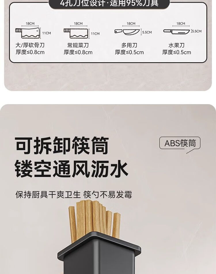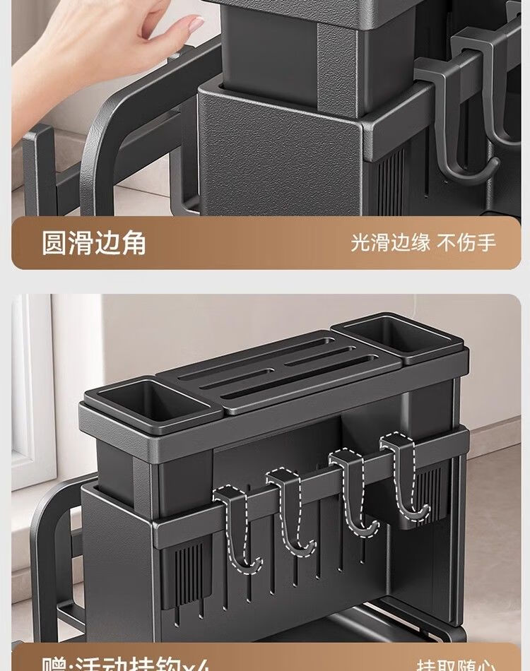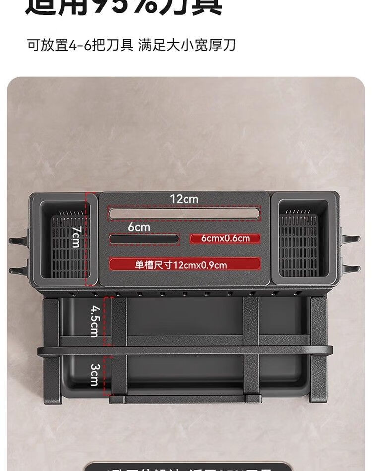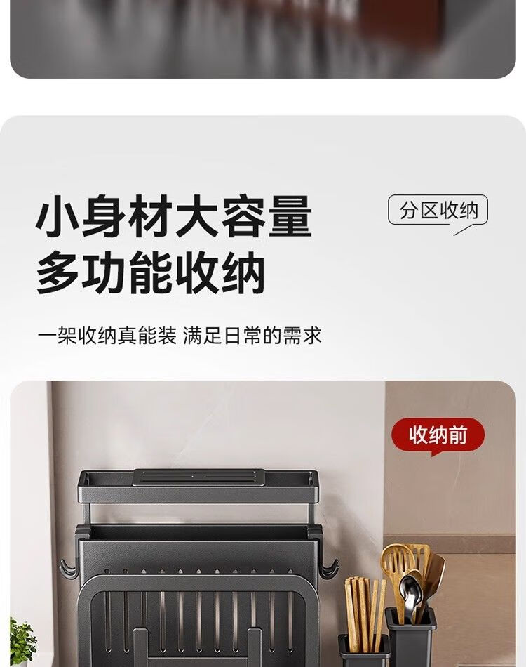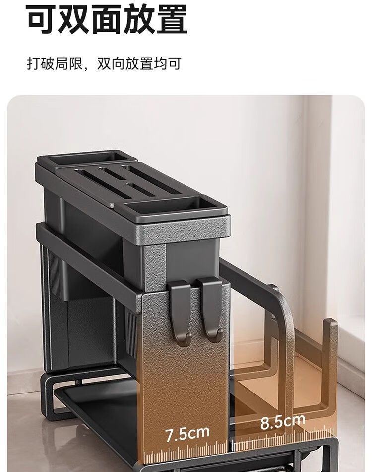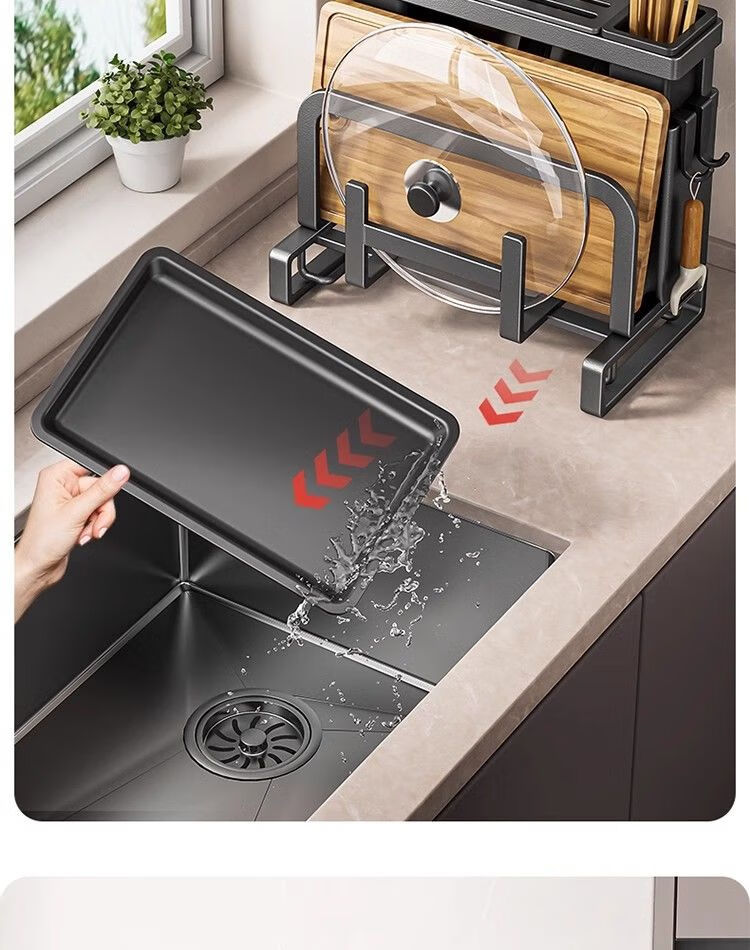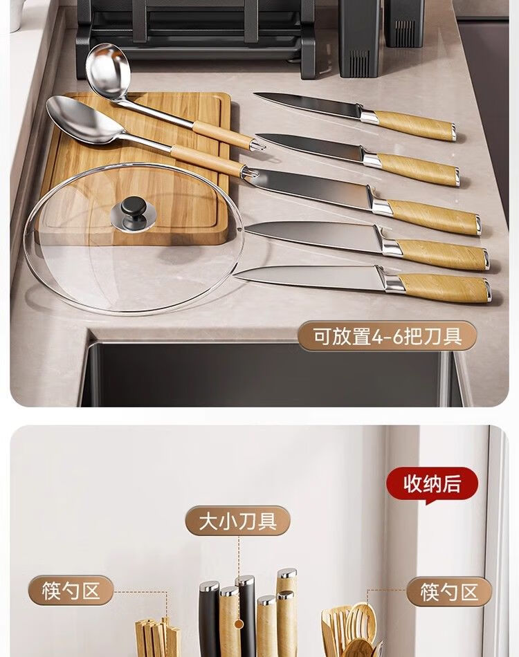 泰禧阁厨房刀架家用菜刀筷子筒砧板锅盖架菜板多功能刀具一体刀架收纳架 经典黑【双筷筒】砧板架+锅盖架+挂钩*4 台面款【优质碳钢 分区收纳】