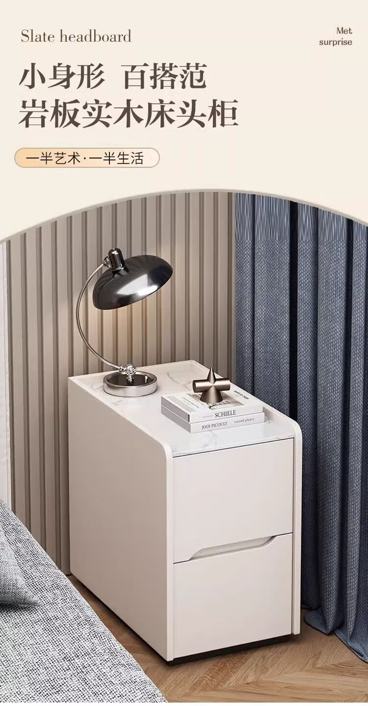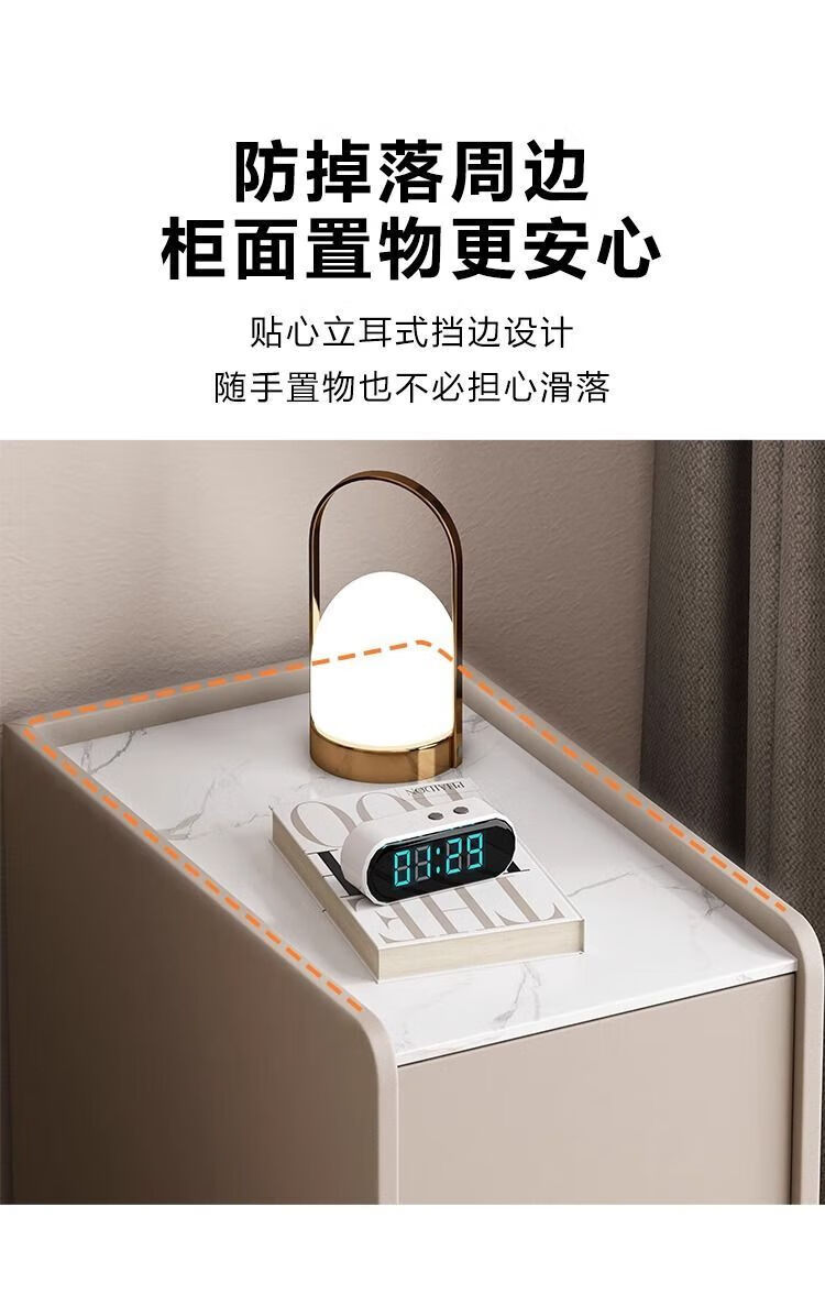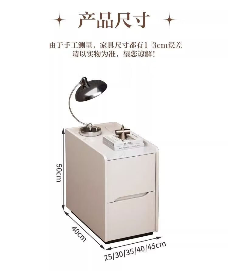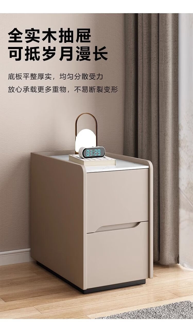 倘然之家极窄床头柜迷你轻奢小型实木床边超窄床边柜简约现代卧室夹缝收纳 P62#米白色 25*40*48cm岩板+实木