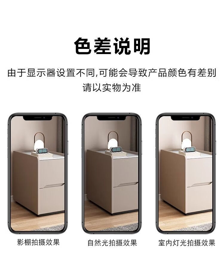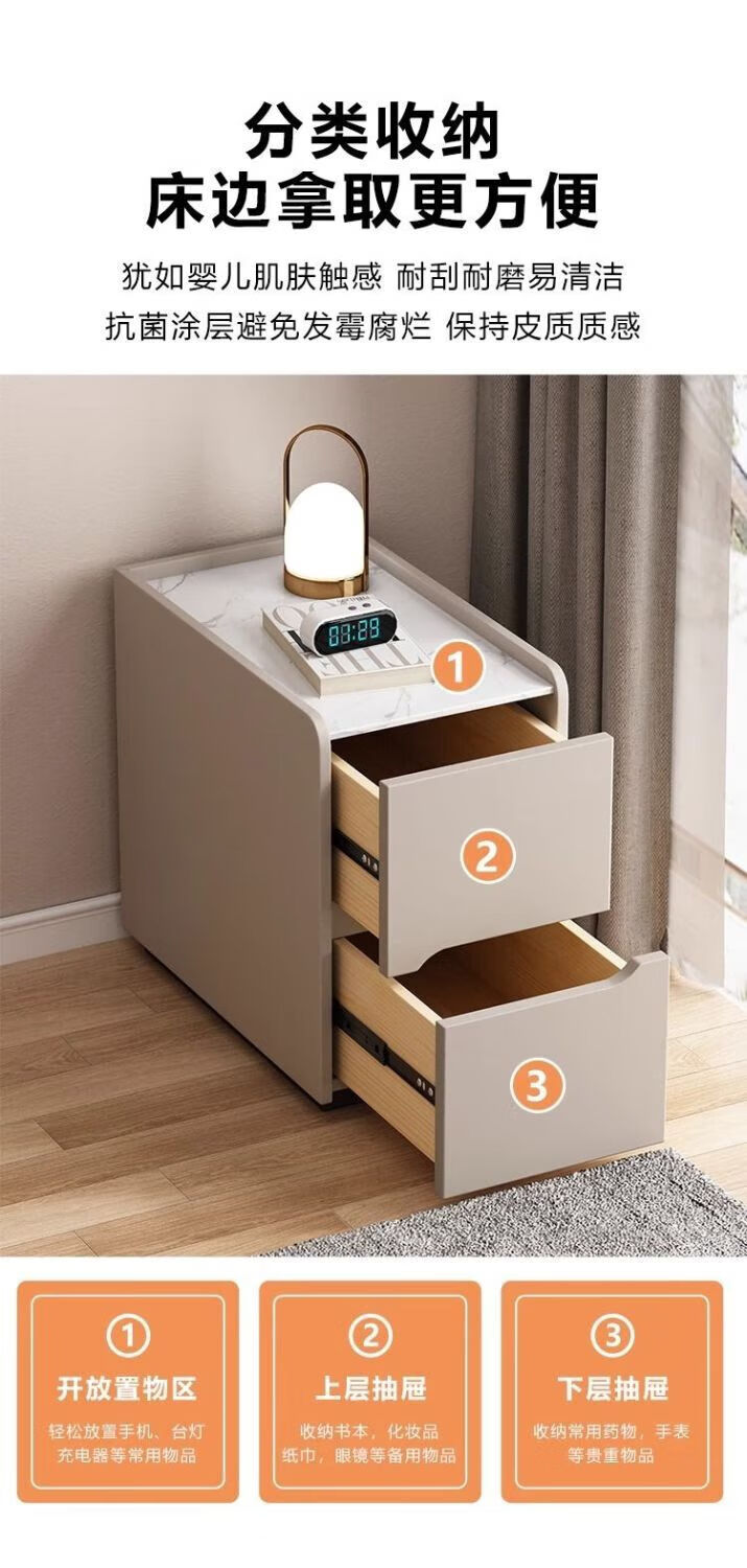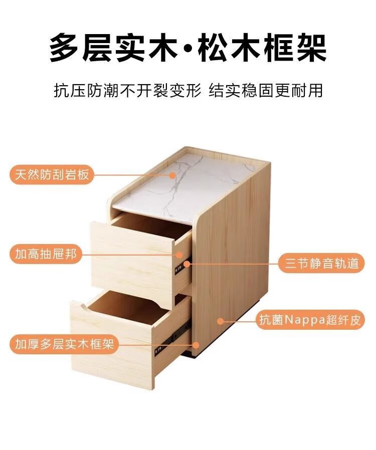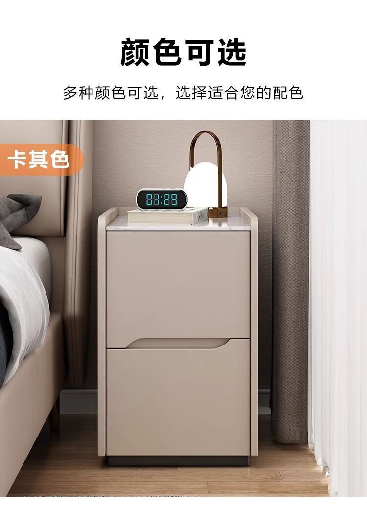 倘然之家极窄床头柜迷你轻奢小型实木床边超窄床边柜简约现代卧室夹缝收纳 P62#米白色 25*40*48cm岩板+实木