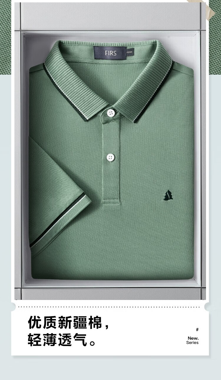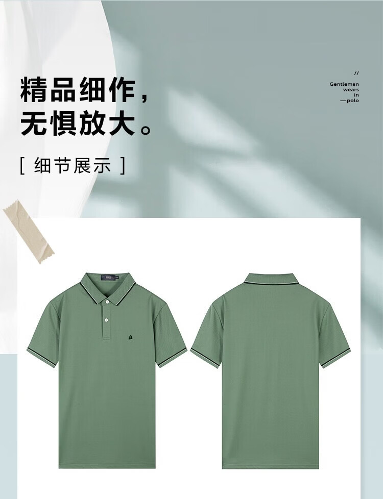 杉杉(FIRS)【含桑蚕丝】T恤男夏季新款透气半袖翻领polo纯色休闲凉感短袖男 豆绿 M (170/88A)