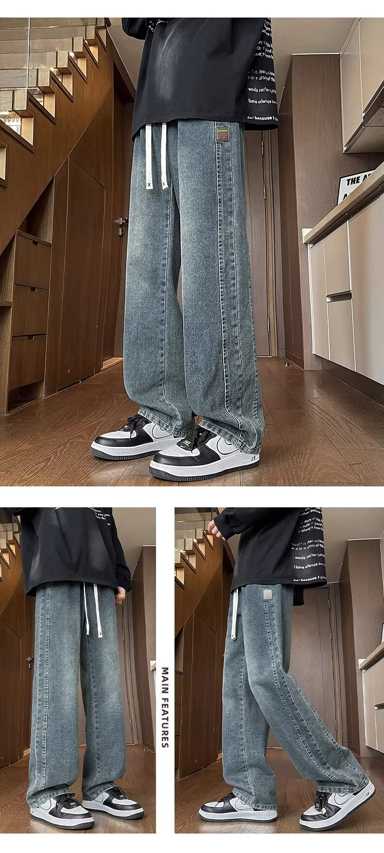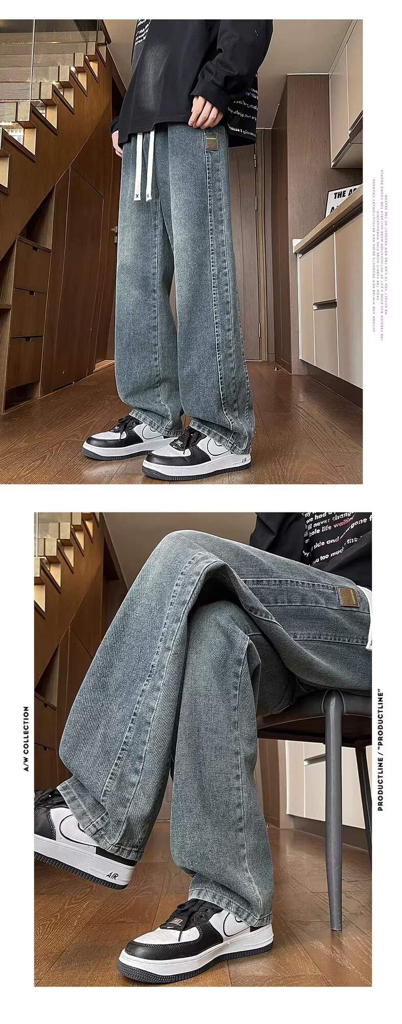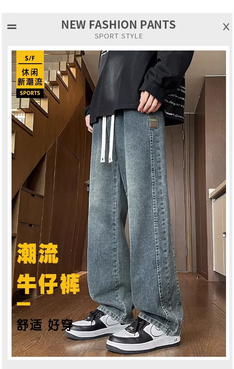 真维斯复古牛仔长裤子男生春秋季新款初高中学生青少年阔腿直筒休闲宽松 复古蓝 M 【80-100斤】