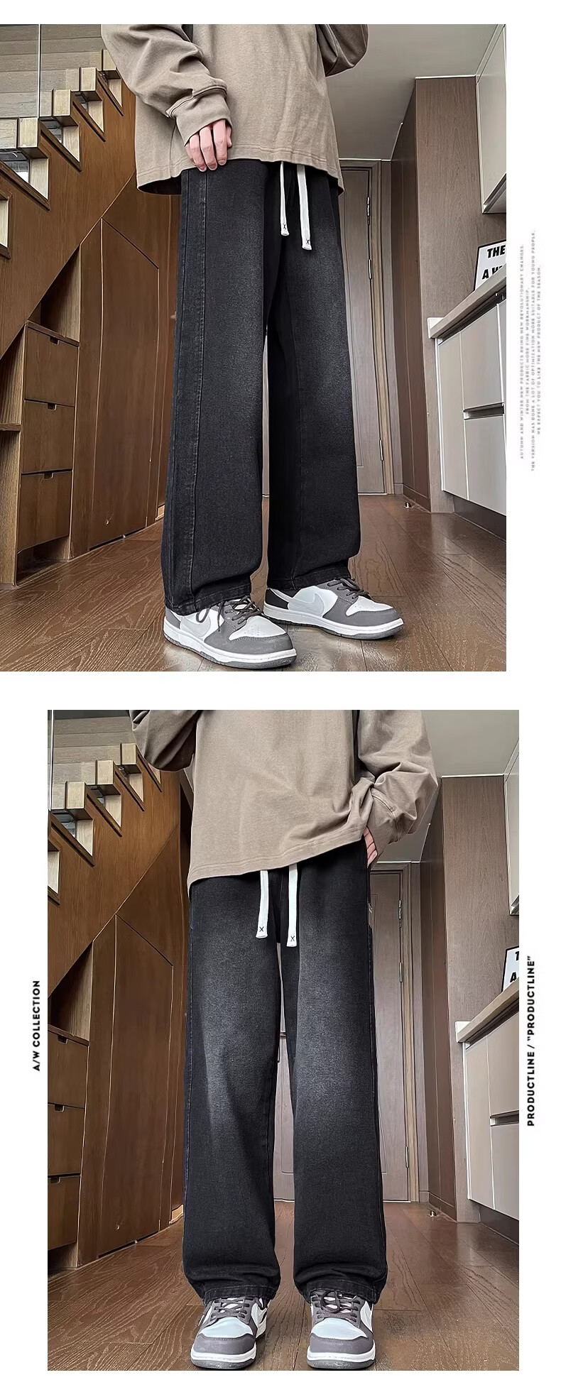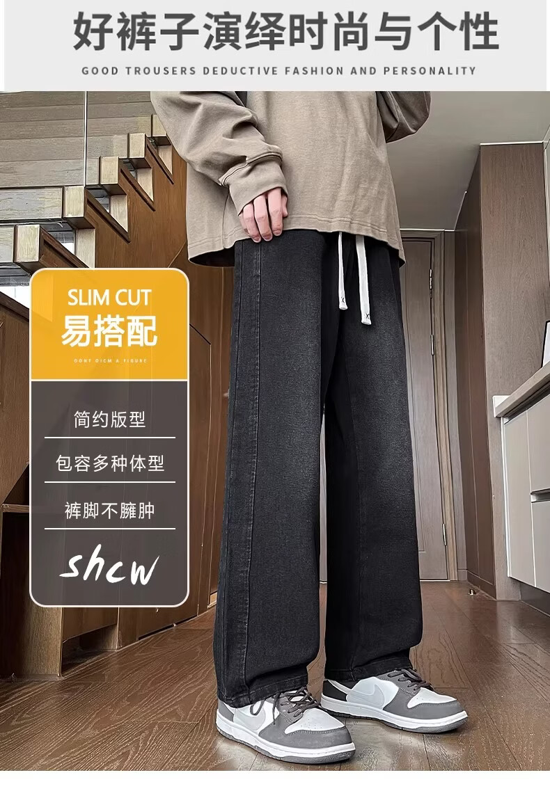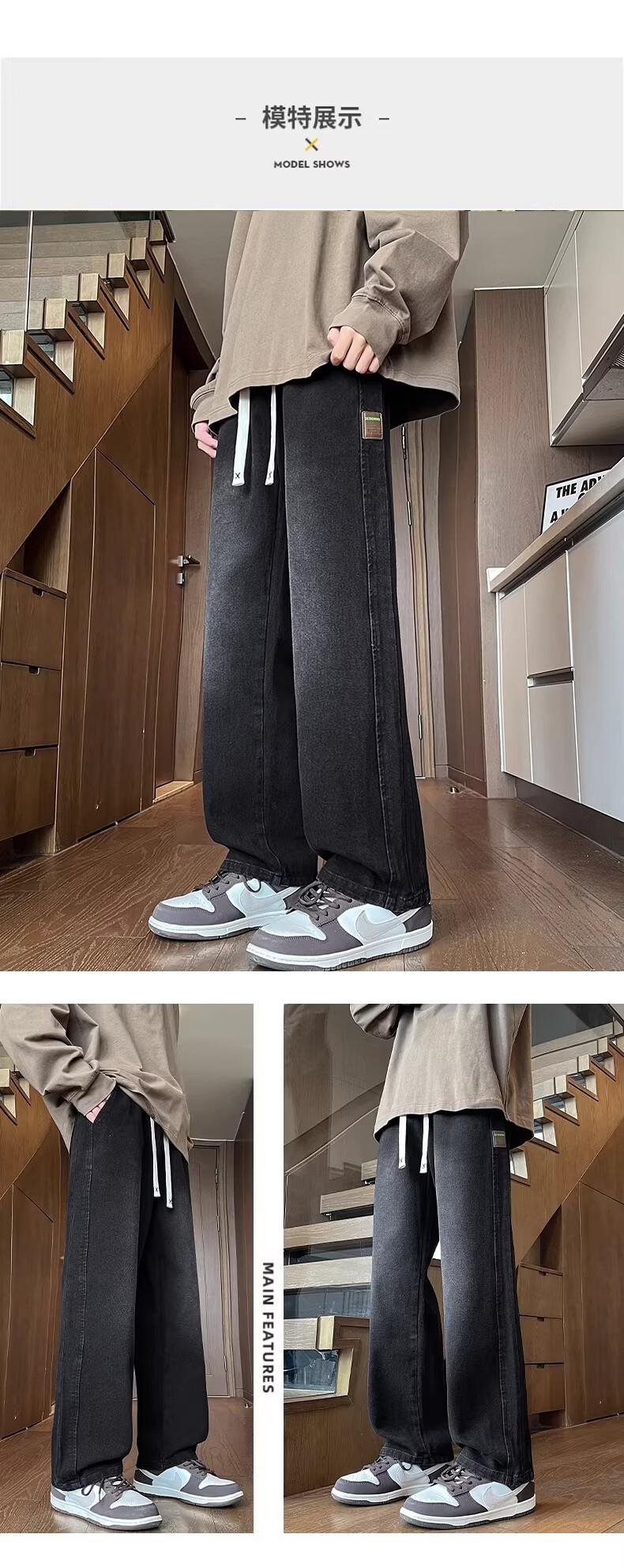 真维斯复古牛仔长裤子男生春秋季新款初高中学生青少年阔腿直筒休闲宽松 复古蓝 M 【80-100斤】