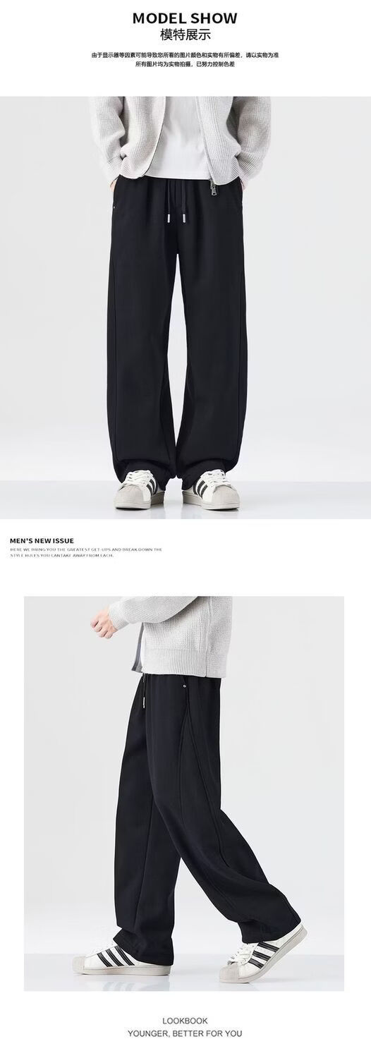 真维斯(Jeanswest)2026秋冬加绒保暖工装卫裤男士新款潮牌垂感宽松百搭直筒休闲长裤 黑色 28