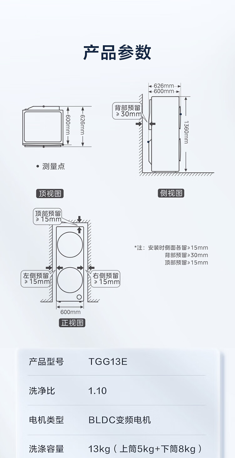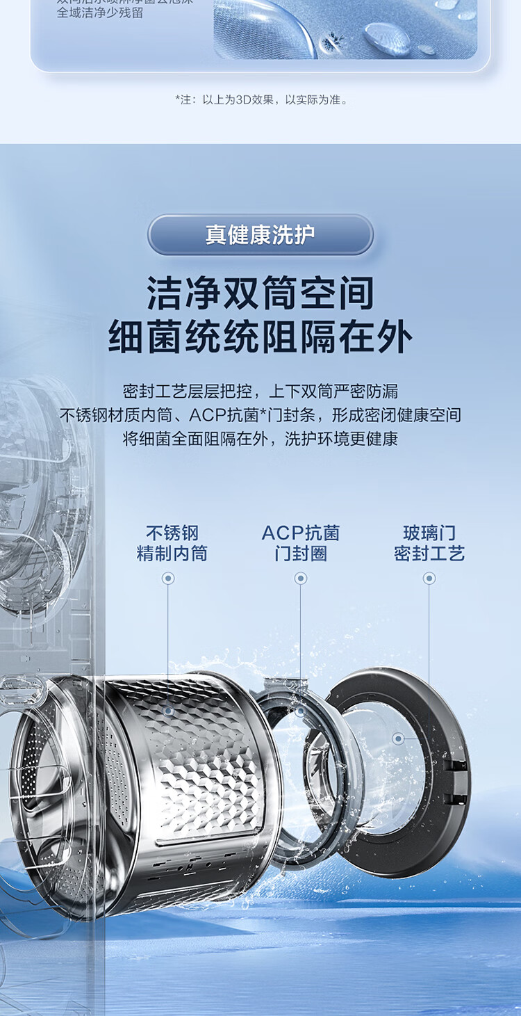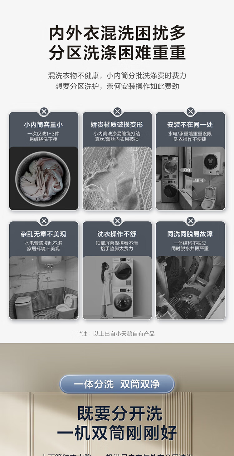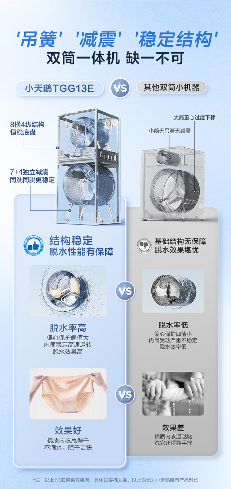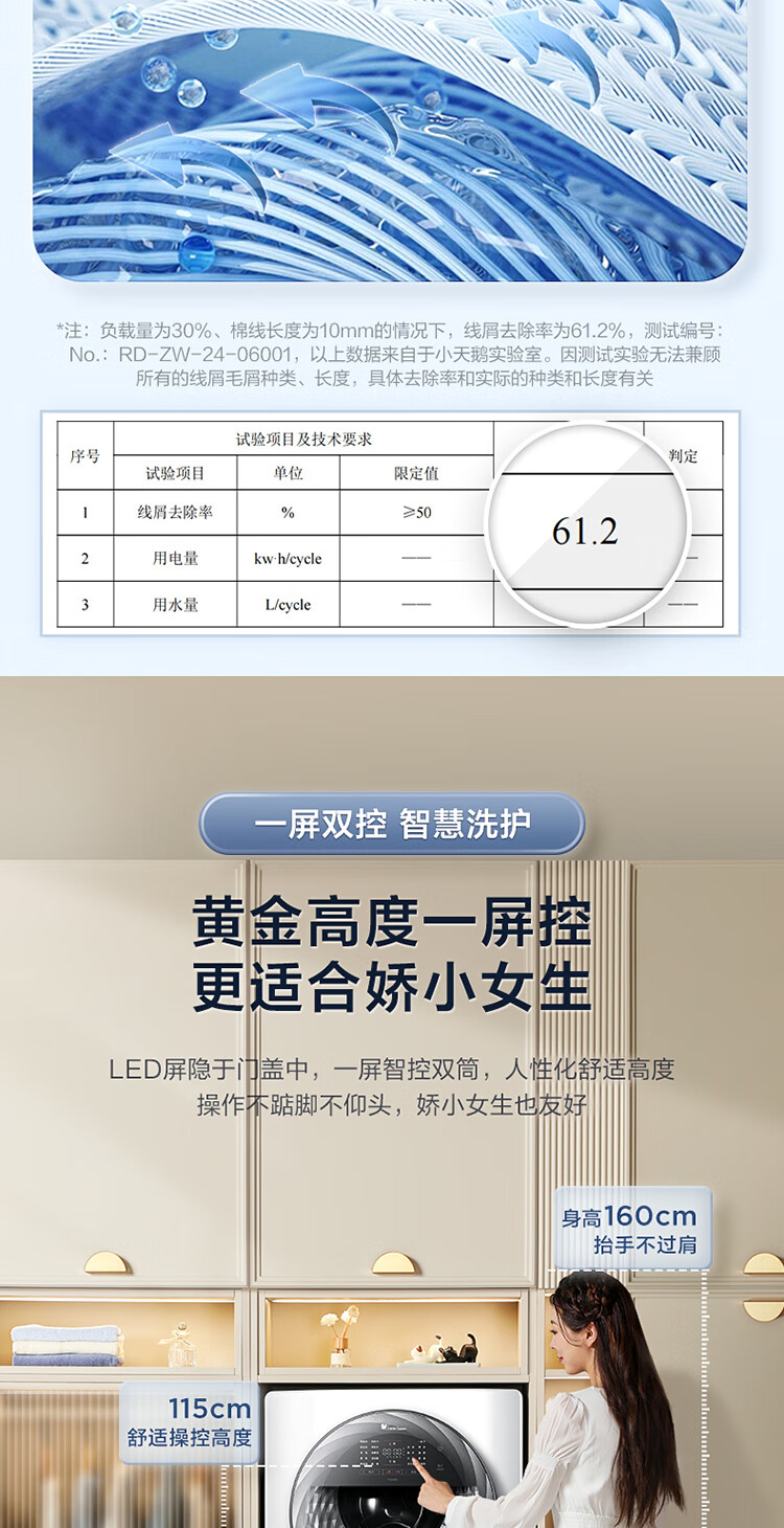 小天鹅(LittleSwan)分区双区洗 滚筒洗衣机全自动 13KG懒人洗衣机 TGG13E 5KG上筒 以旧换新国家补贴 京东自营 内衣洗