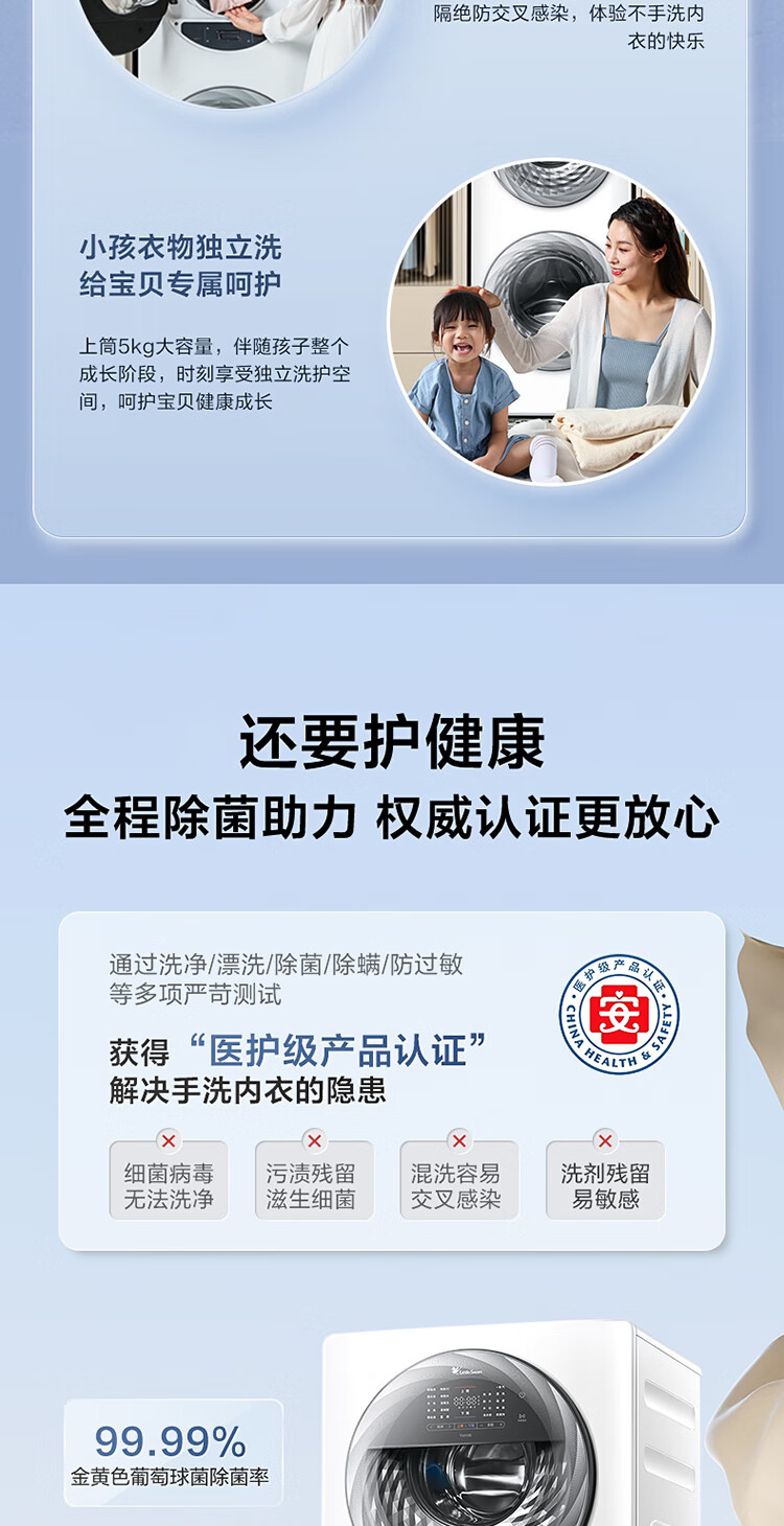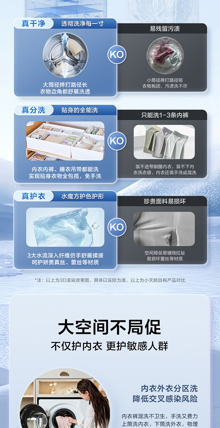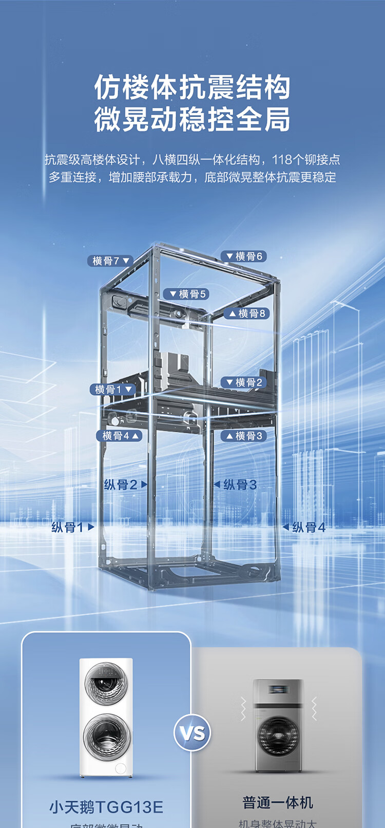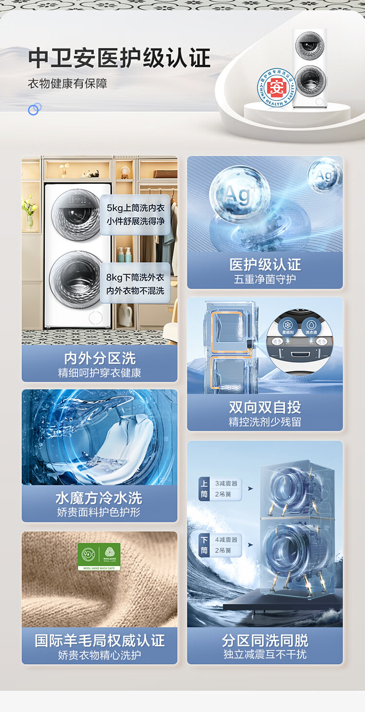 小天鹅(LittleSwan)分区双区洗 滚筒洗衣机全自动 13KG懒人洗衣机 TGG13E 5KG上筒 以旧换新国家补贴 京东自营 内衣洗