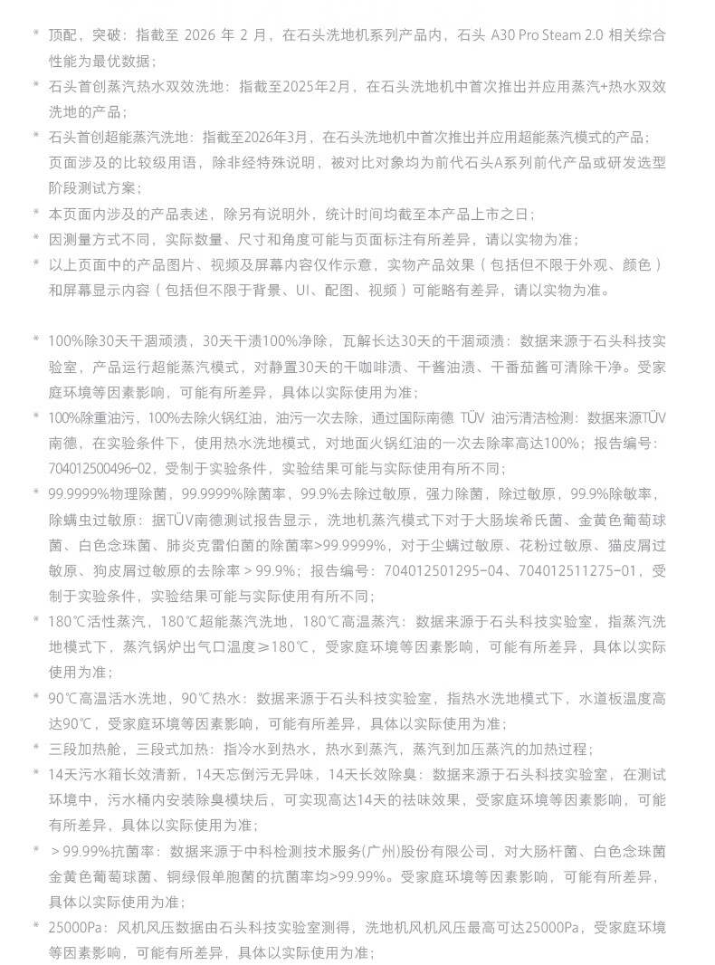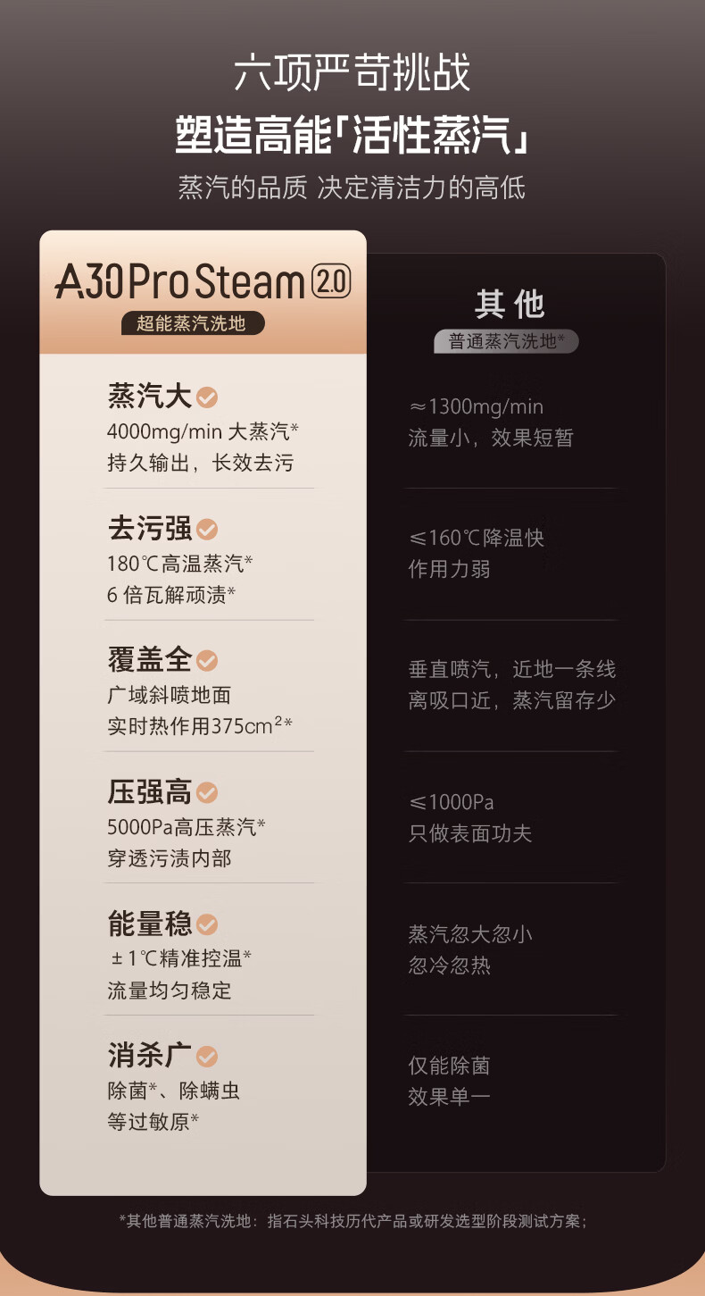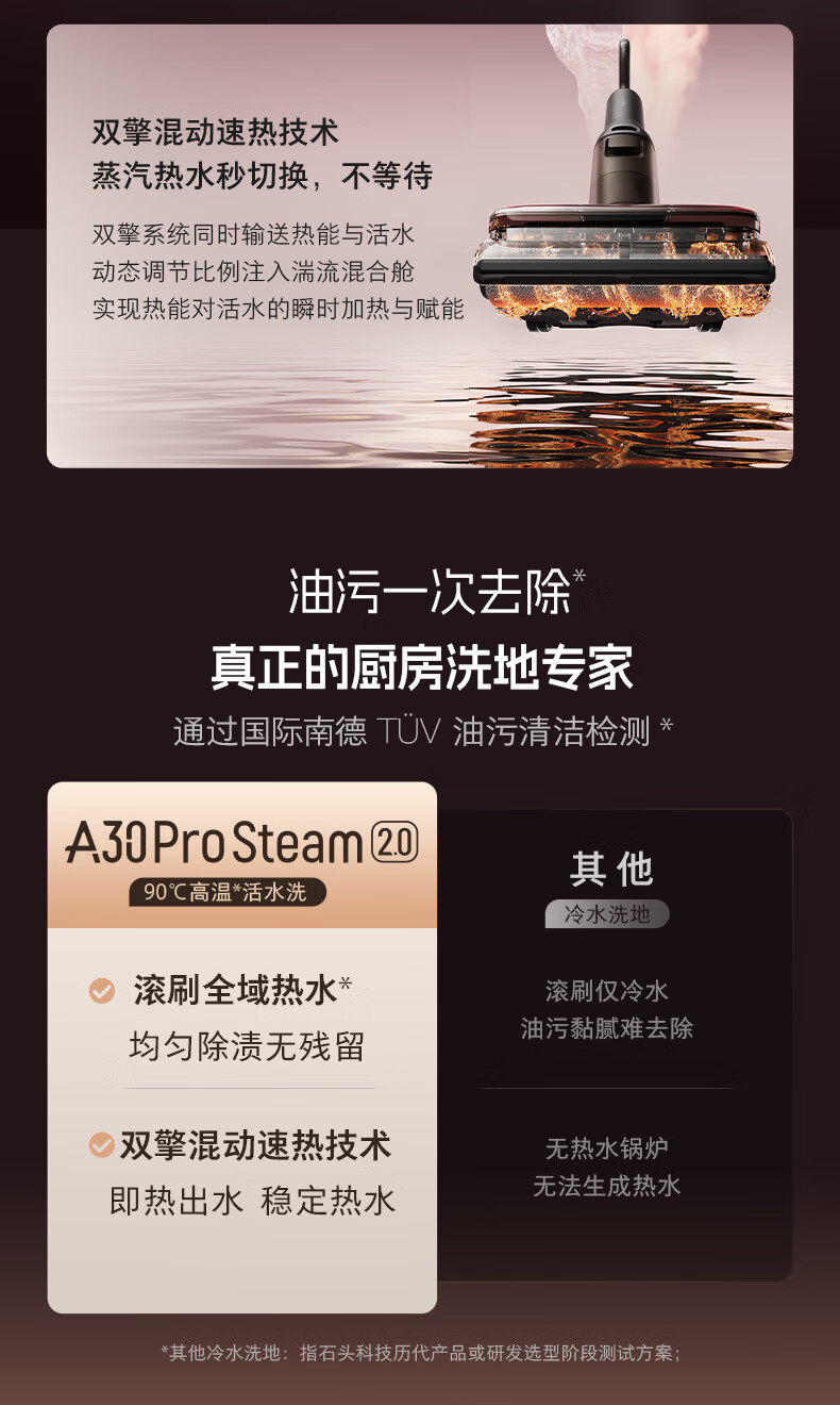 石头(roborock)A30ProSteam2.0【180℃蒸汽】90℃热水 蒸汽洗地机长续航抗菌全向助力0缠毛吸拖一体扫地机器人