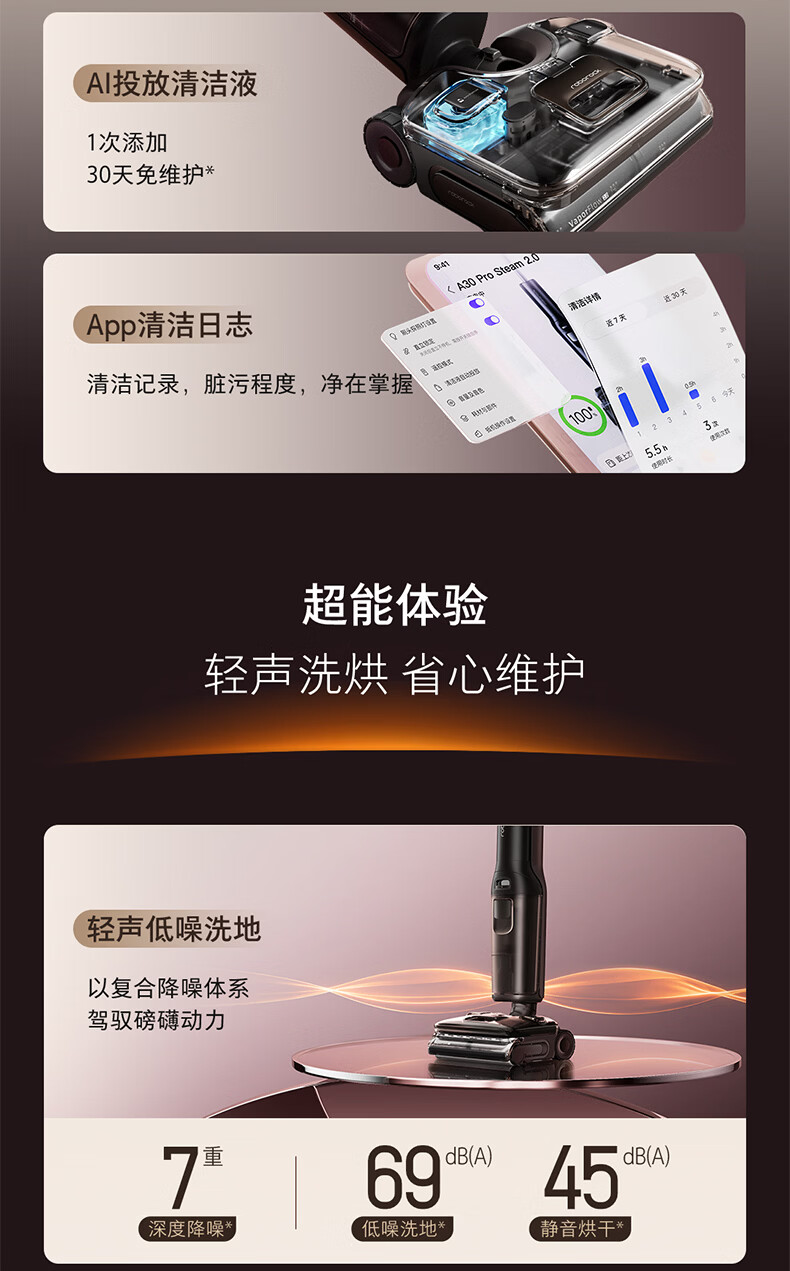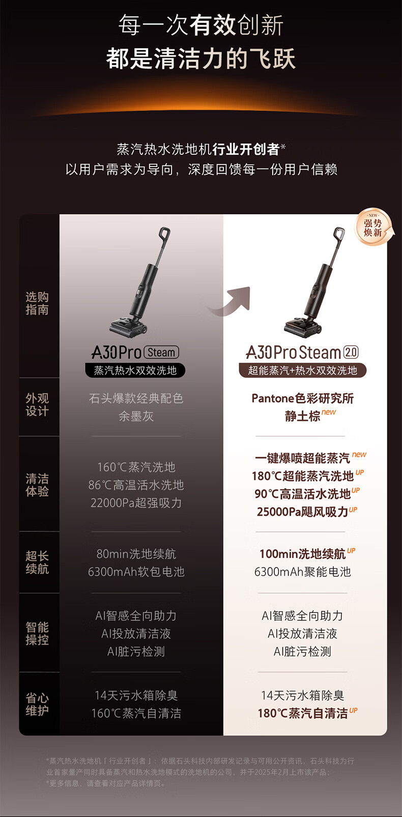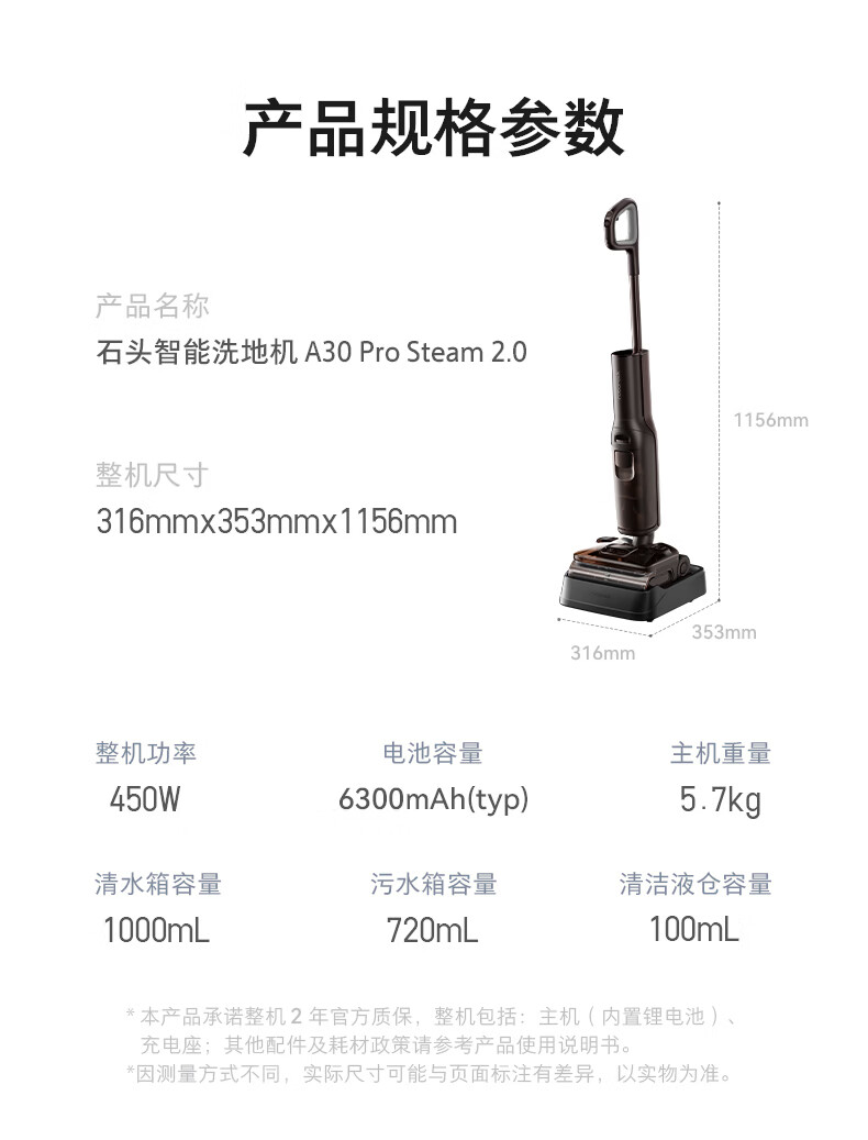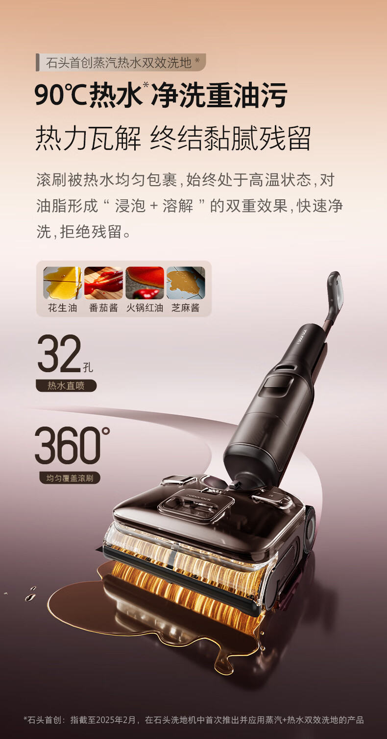 石头(roborock)A30ProSteam2.0【180℃蒸汽】90℃热水 蒸汽洗地机长续航抗菌全向助力0缠毛吸拖一体扫地机器人
