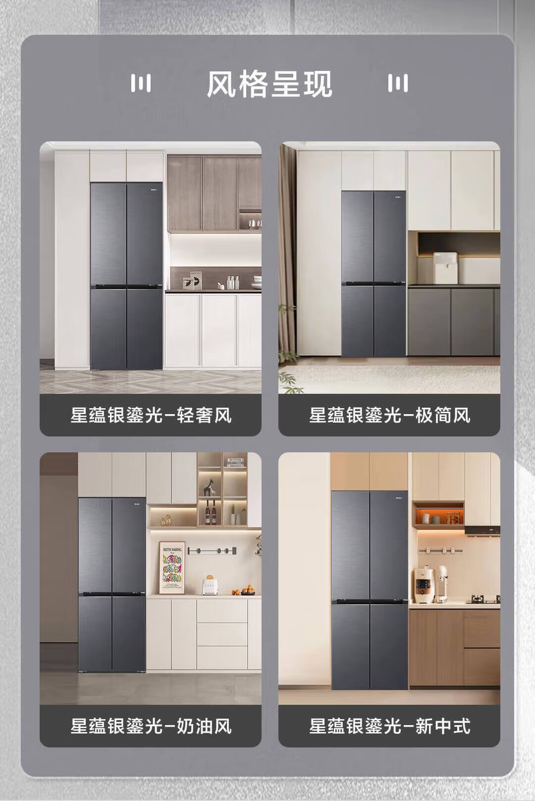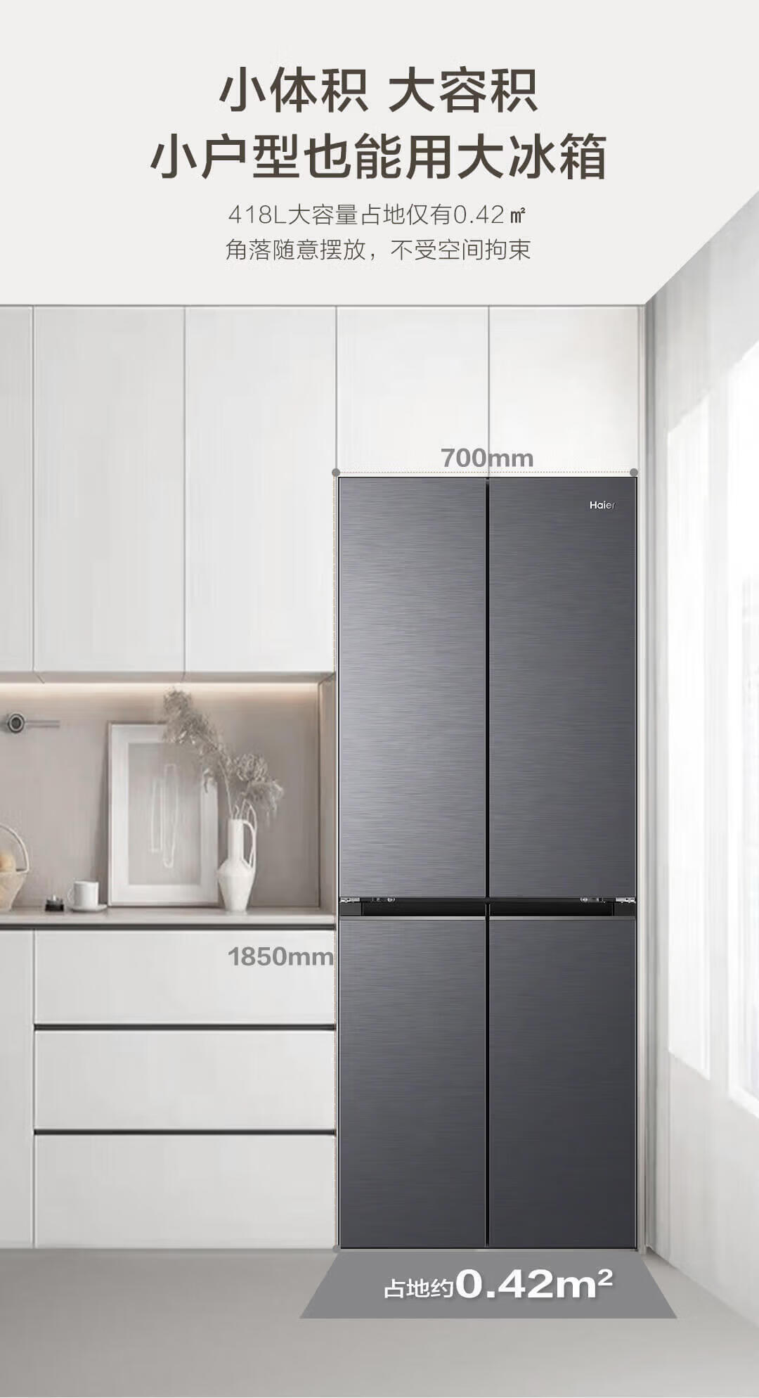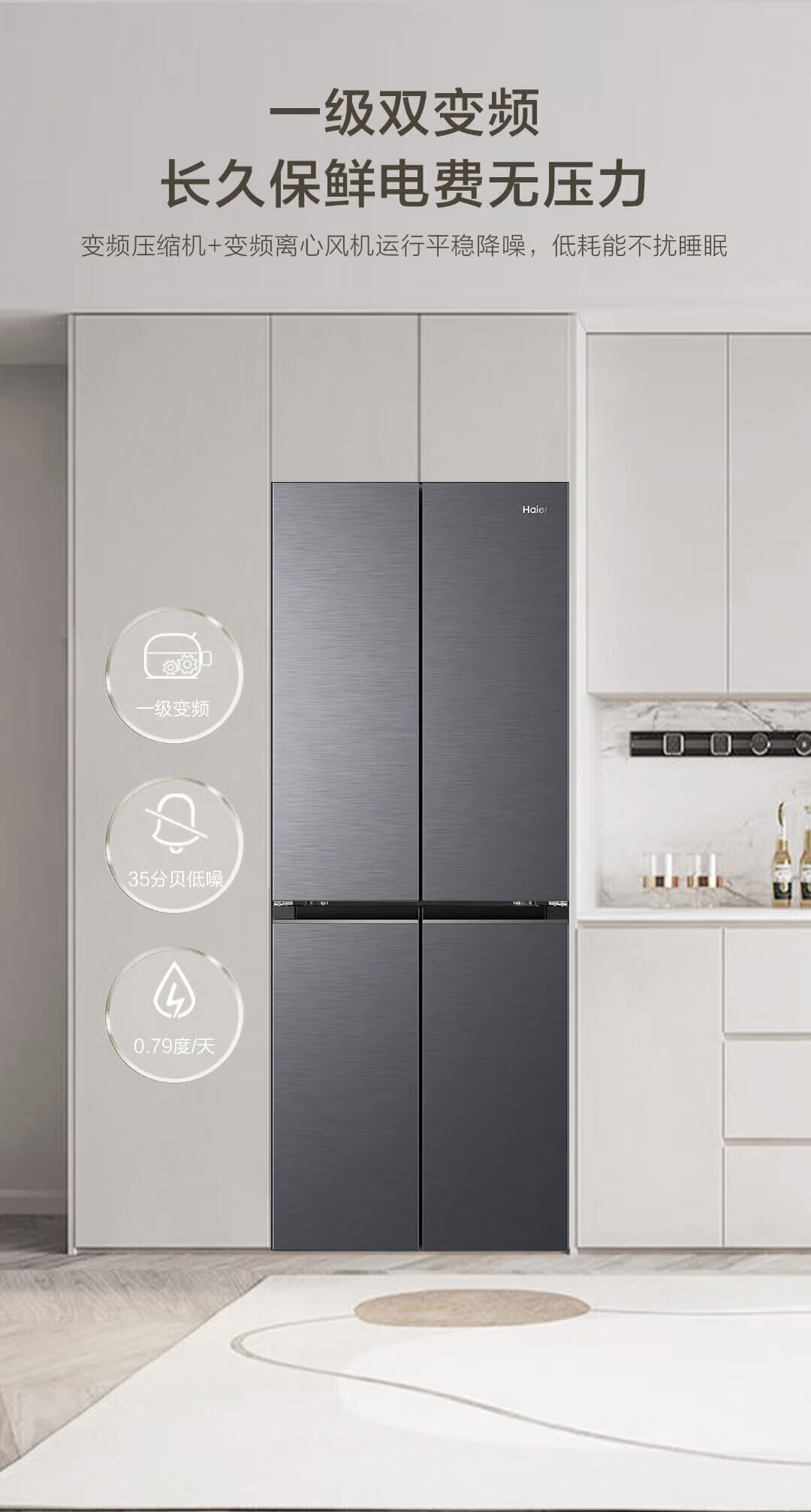 海尔(Haier)冰箱小红花套系418升十字对开门 70cm宽594mm深超薄零嵌一级变频小户型家用电冰箱国家补贴 70宽|594mm薄|418升星蕴银