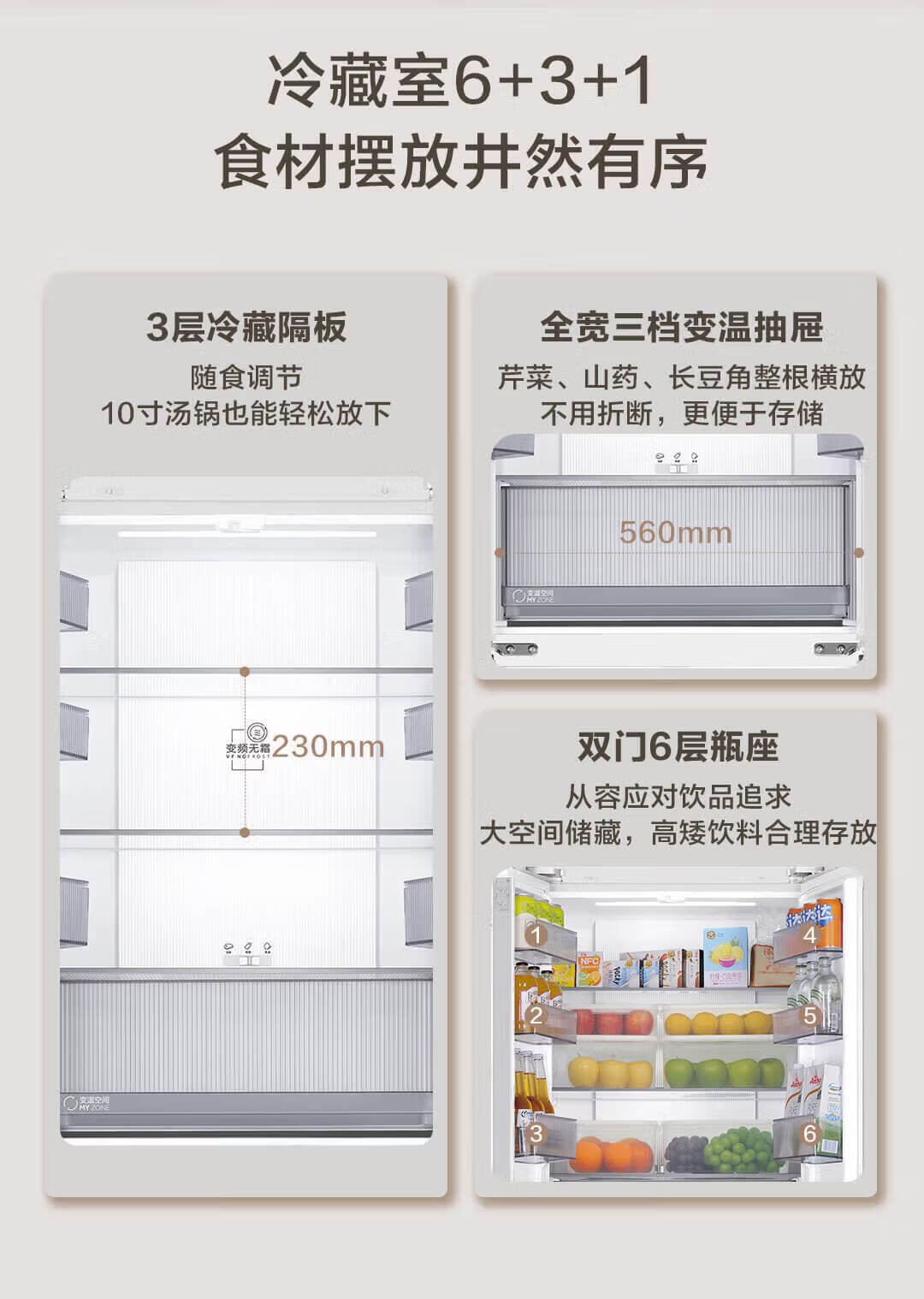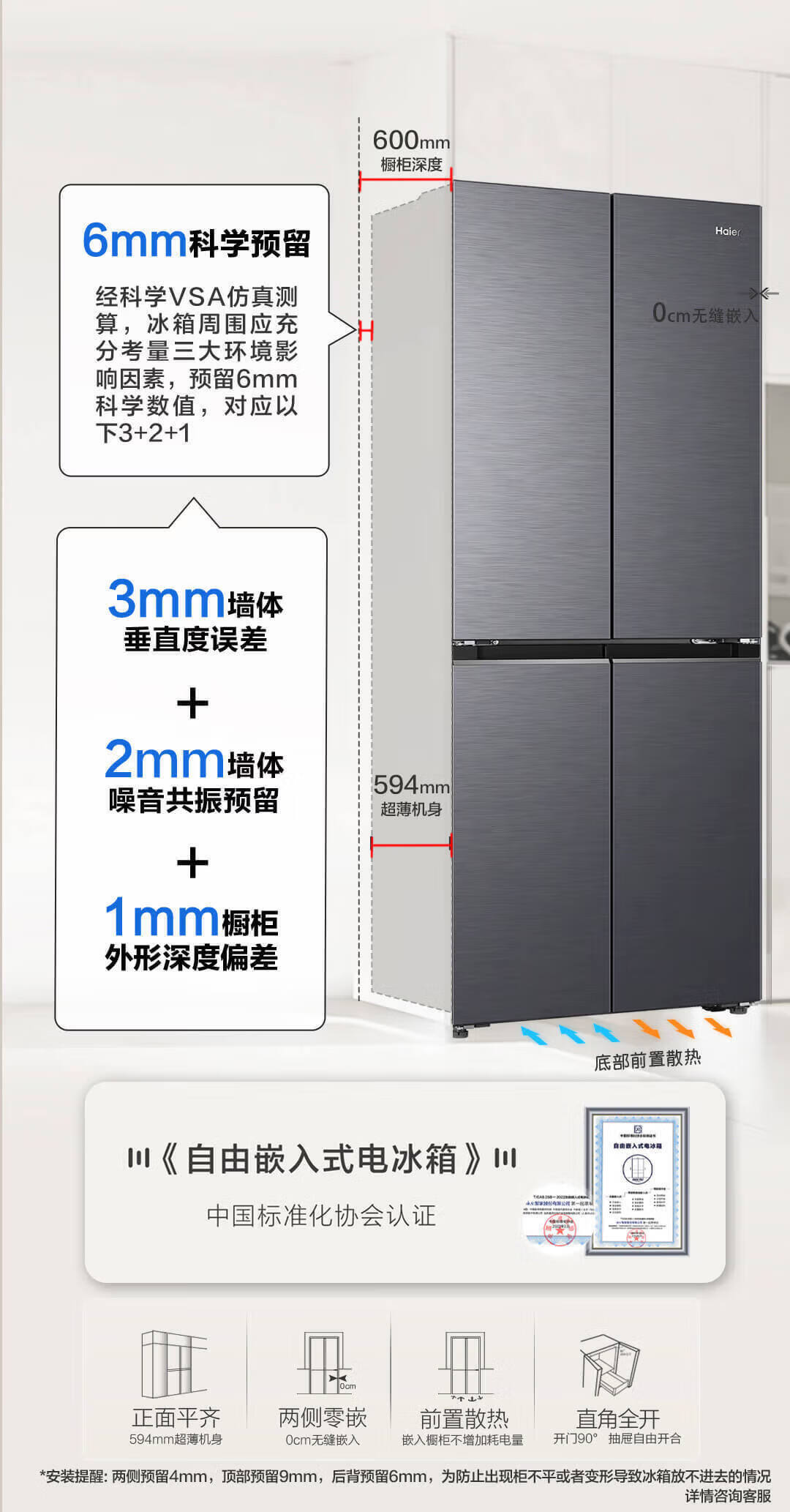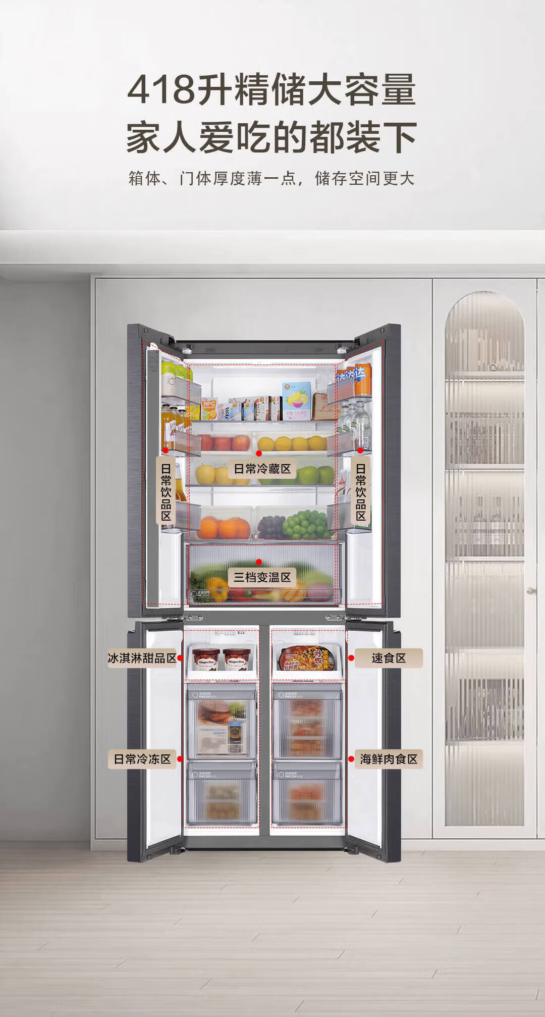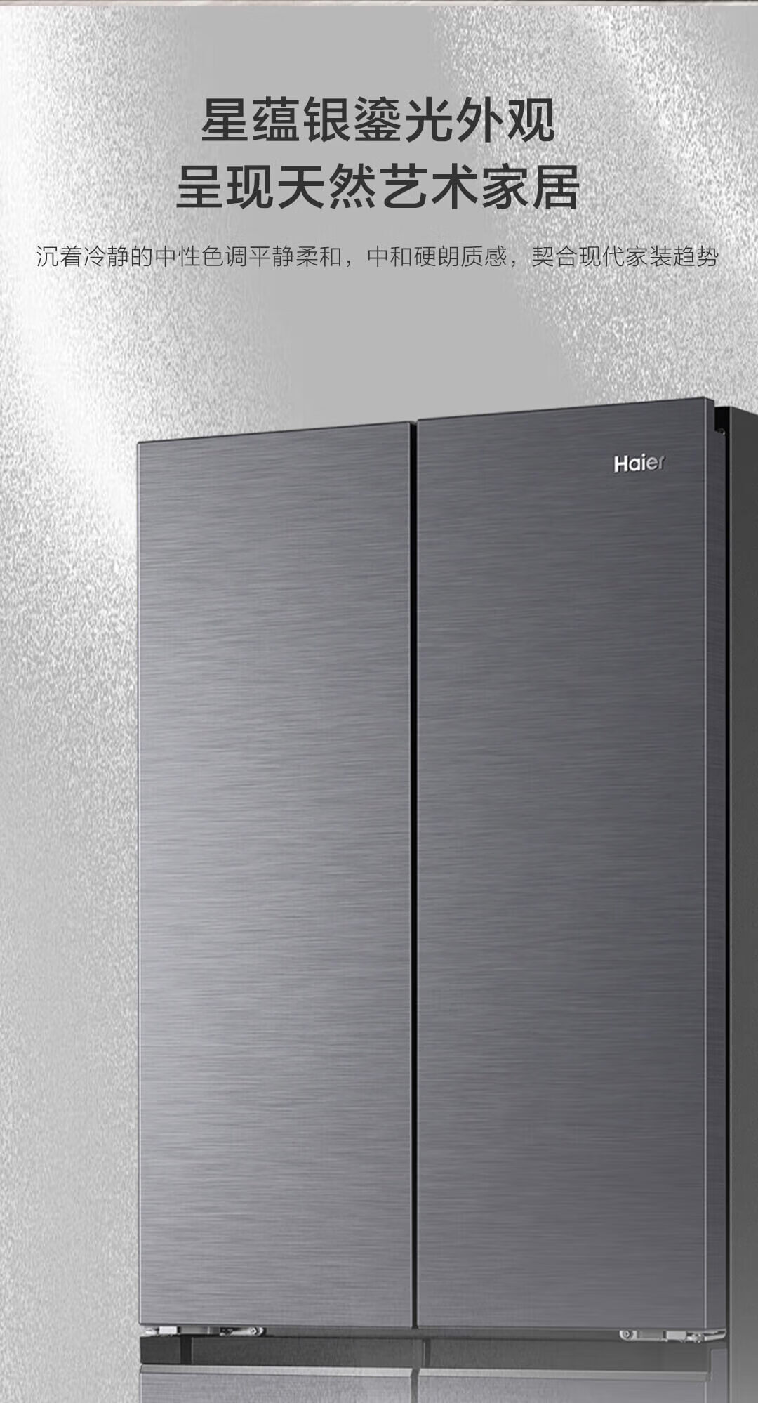 海尔(Haier)冰箱小红花套系418升十字对开门 70cm宽594mm深超薄零嵌一级变频小户型家用电冰箱国家补贴 70宽|594mm薄|418升星蕴银