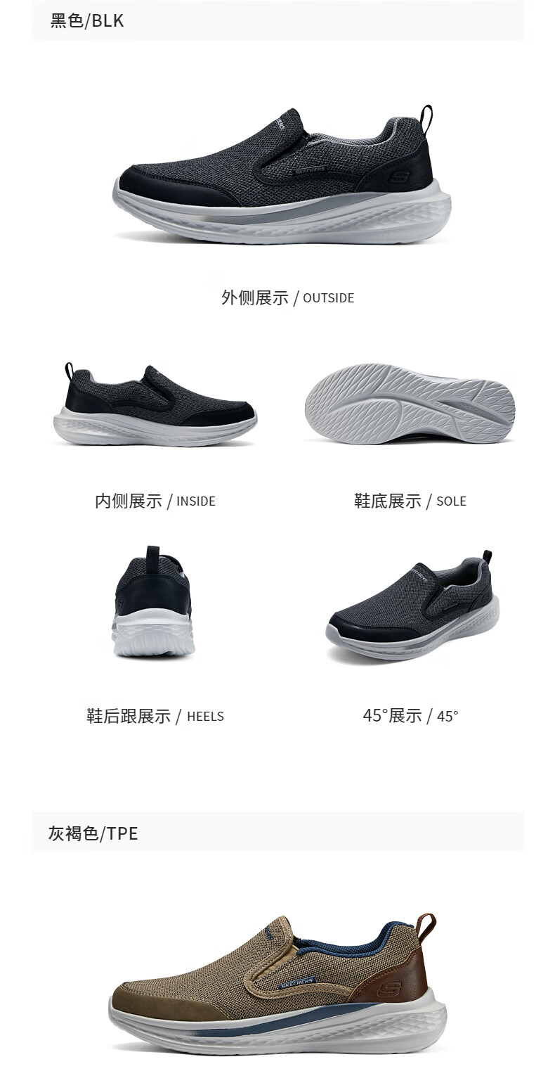 斯凯奇(Skechers)男鞋舒适网面透气一脚蹬健步鞋轻便耐磨休闲鞋210943