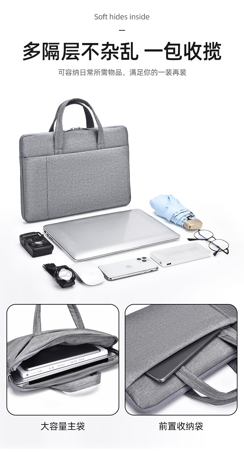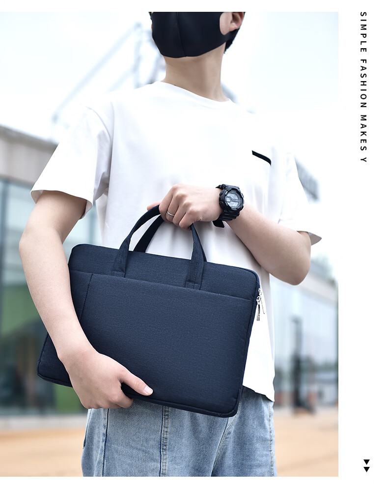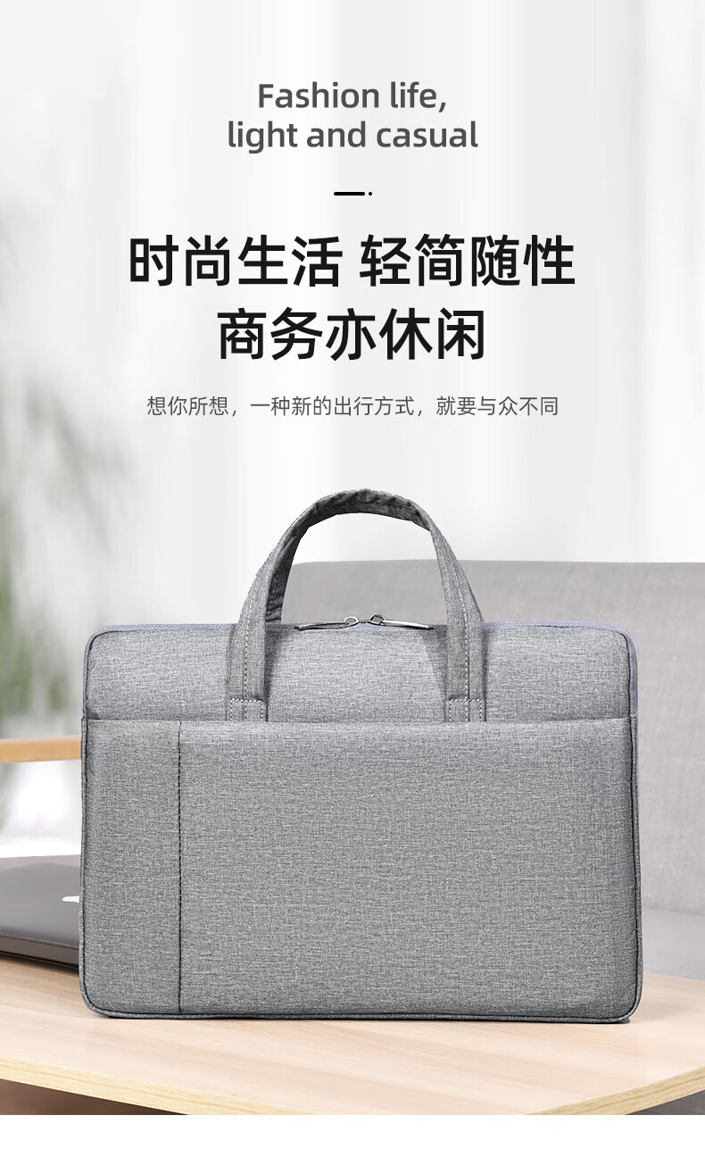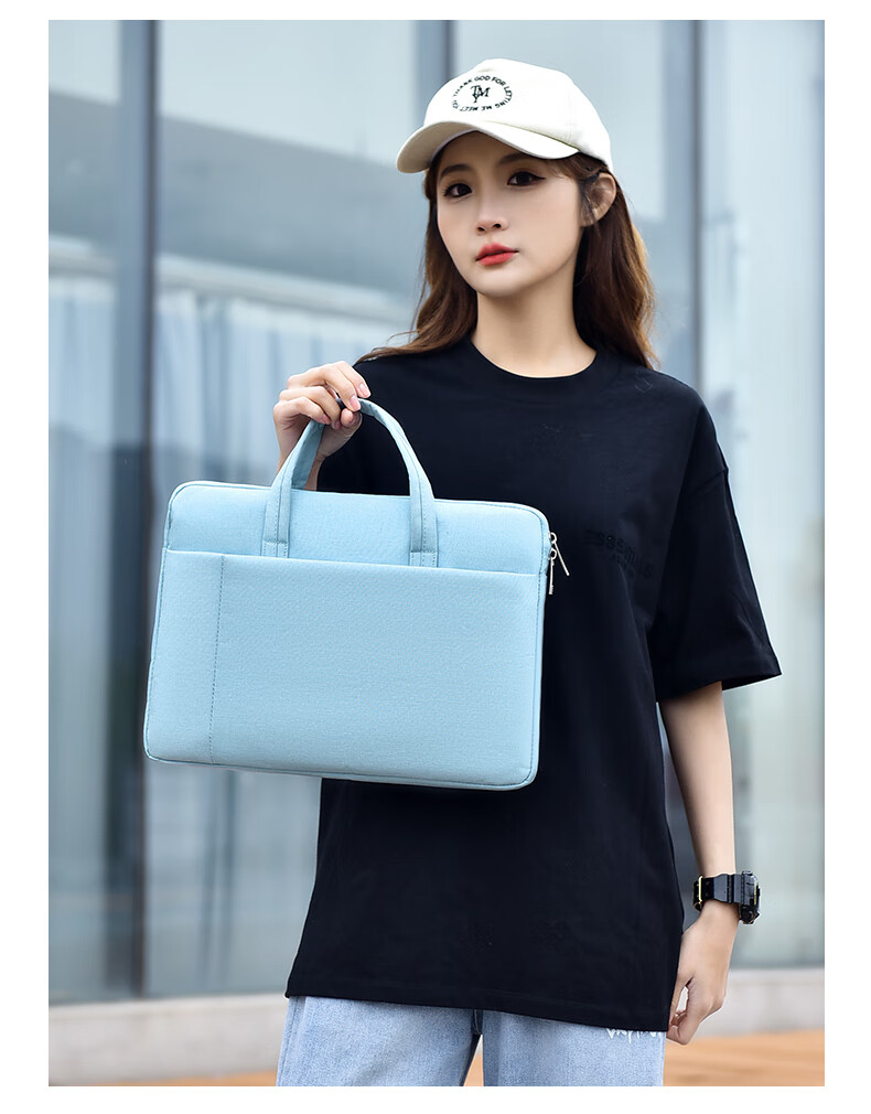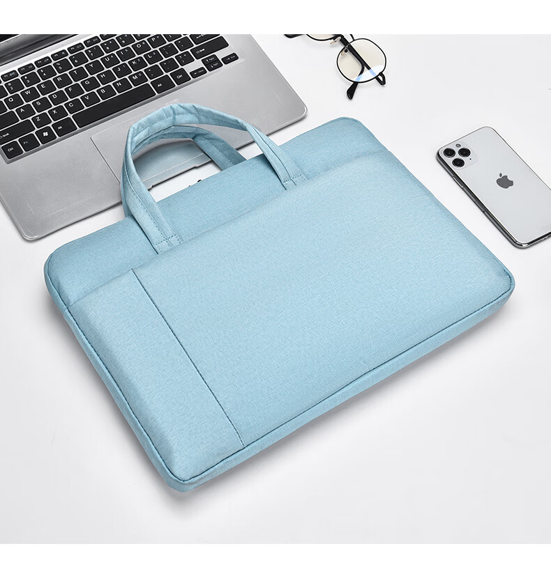 【严选百货】新款笔记本电脑包手提公文包男女商务通勤时尚百搭潮 小号浅蓝色