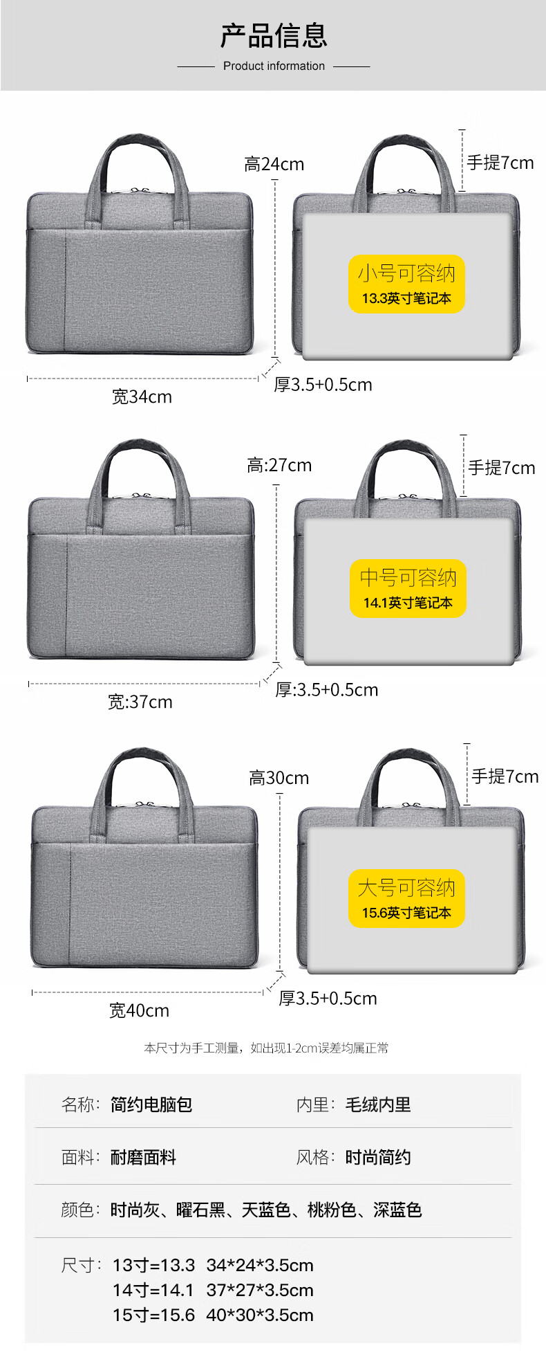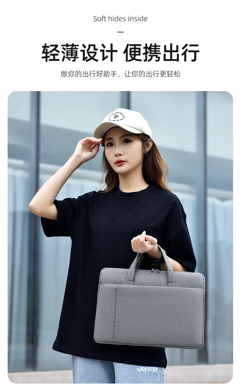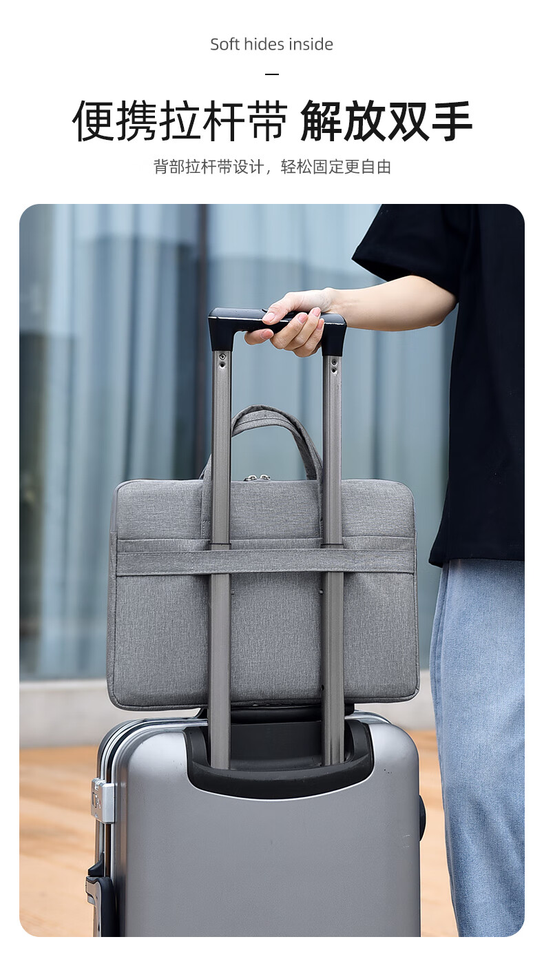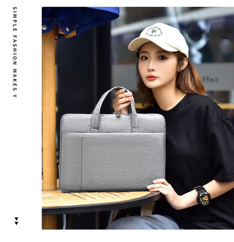 【严选百货】新款笔记本电脑包手提公文包男女商务通勤时尚百搭潮 小号浅蓝色
