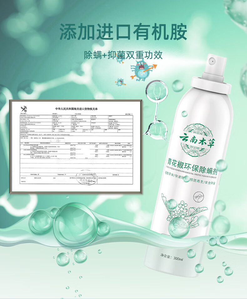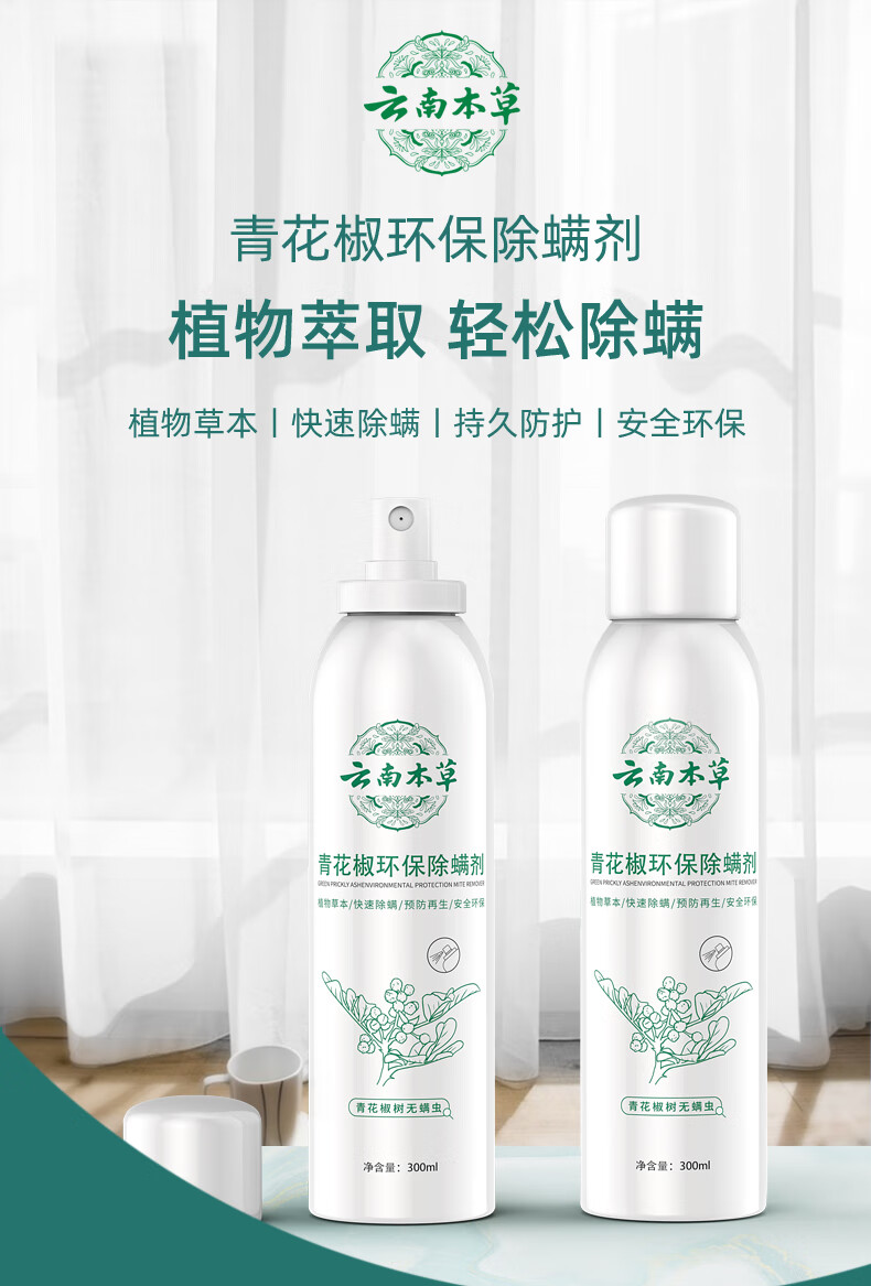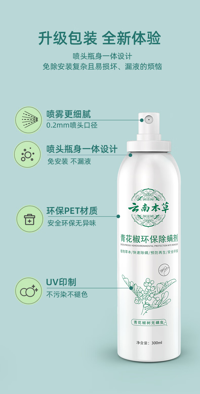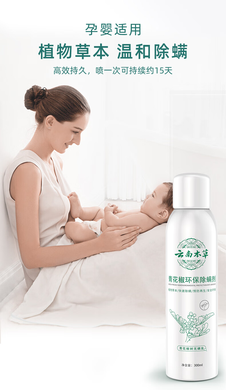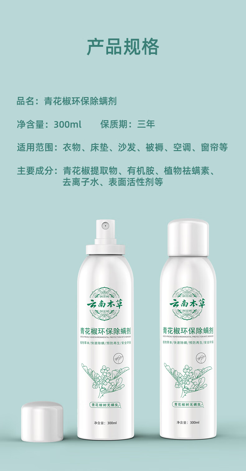 千居惠青花椒除螨喷剂喷雾床上可用孕妇婴儿消毒抑菌去螨虫喷雾剂 【免洗免晒】300ml/4瓶装