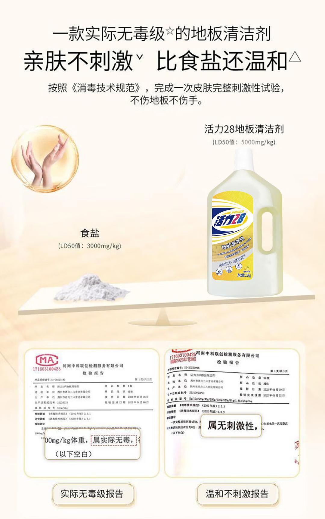 活力28地板清洁剂2.2kg瓶装温和亲肤不伤手不留痕清洁剂 2.2kg*1瓶