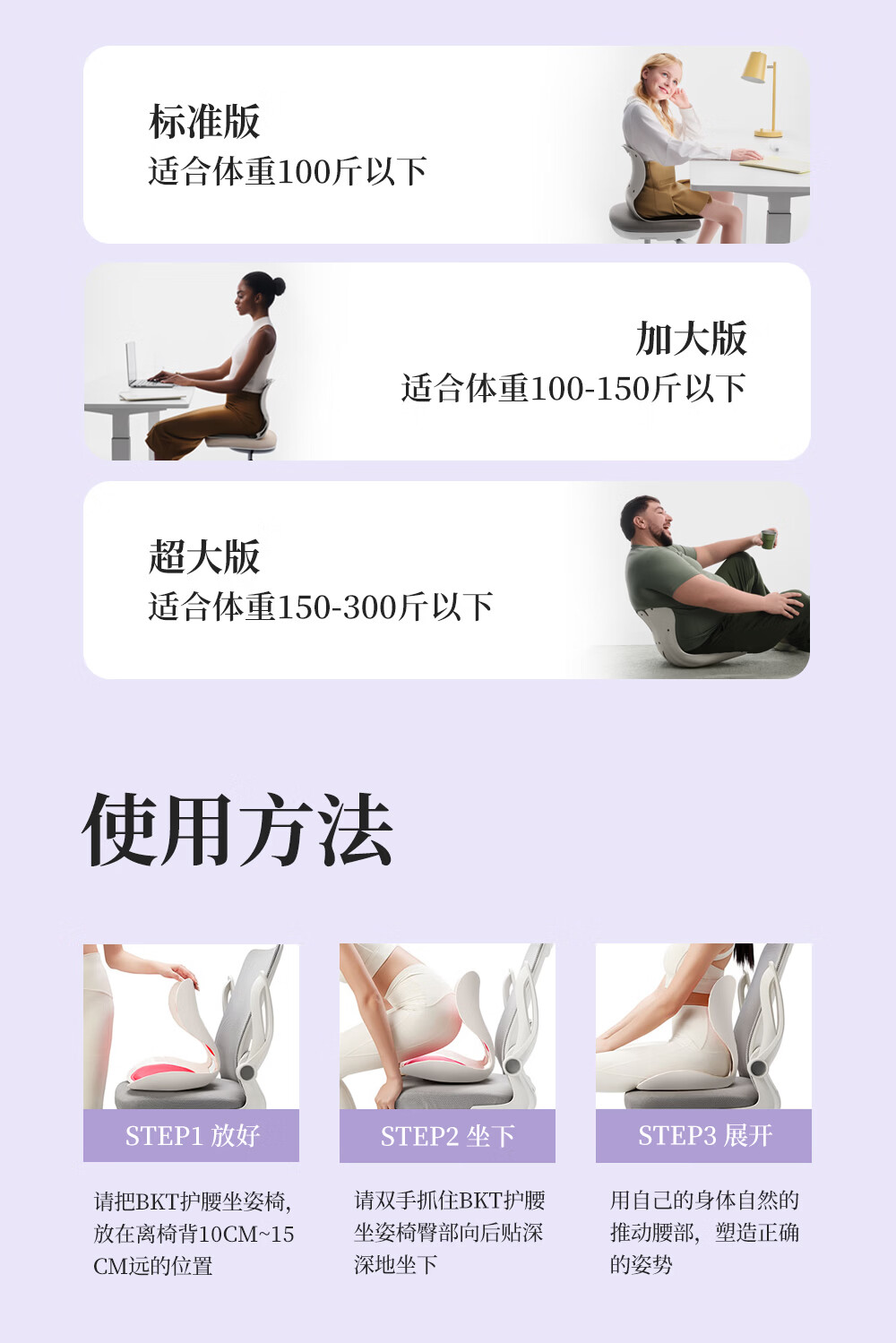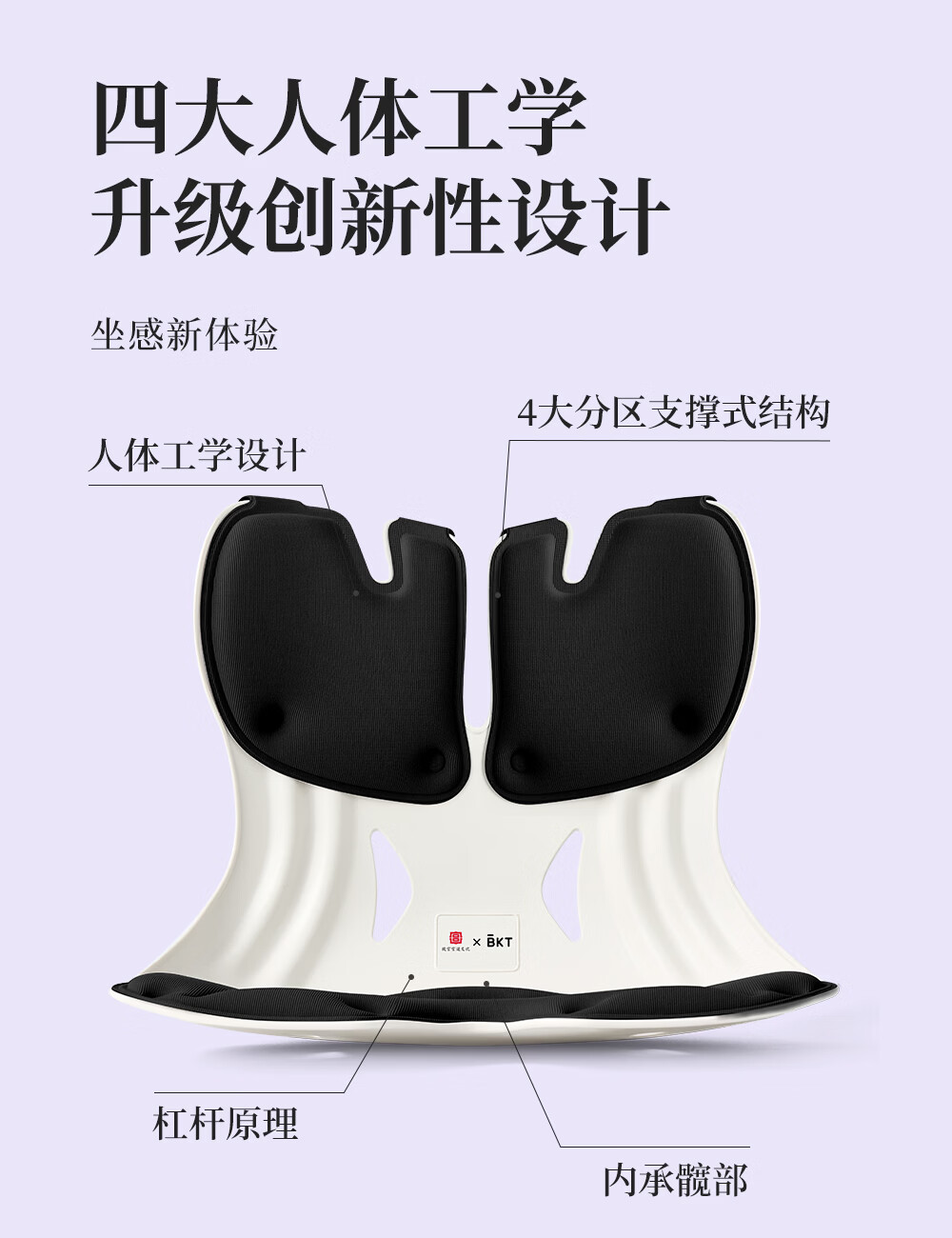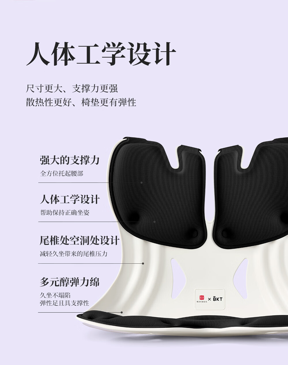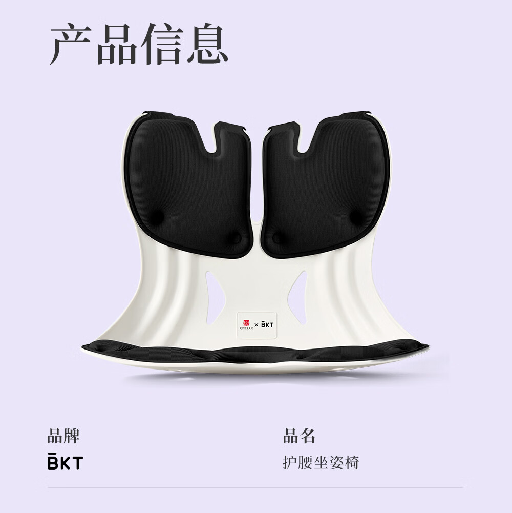 BKT护腰坐垫人体工学坐姿椅久坐神器办公室靠垫汽车腰靠背节日礼物 加大版-神秘黑【150斤以下适用】