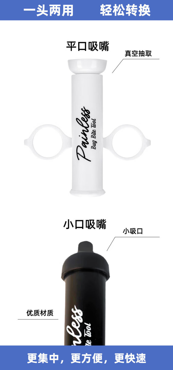 BODYWORKER拔毒拔刺器毒液拔除无痛快速真空抽取蚊虫蜜蜂叮咬便携户外急救 一头两用白色款