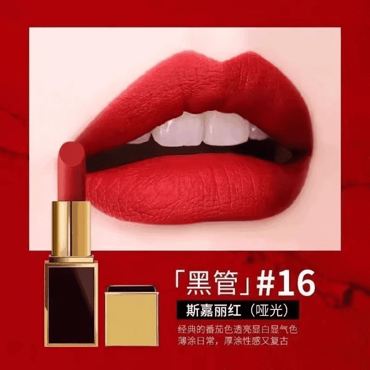TOM FORD FABULOUSTOM FORD黑管口红水感缎光哑光唇膏显白16滋润礼盒装情人节礼物女 16#哑光斯嘉丽红+专柜礼盒