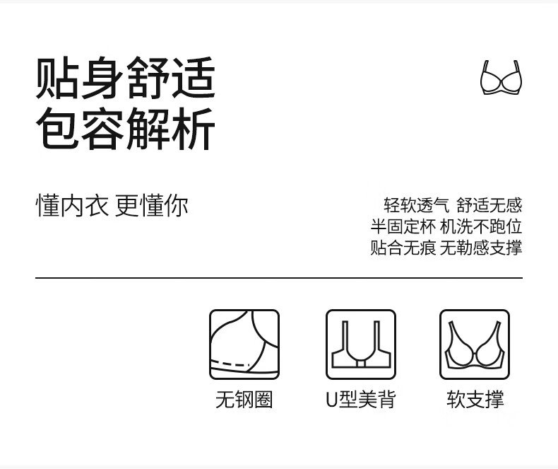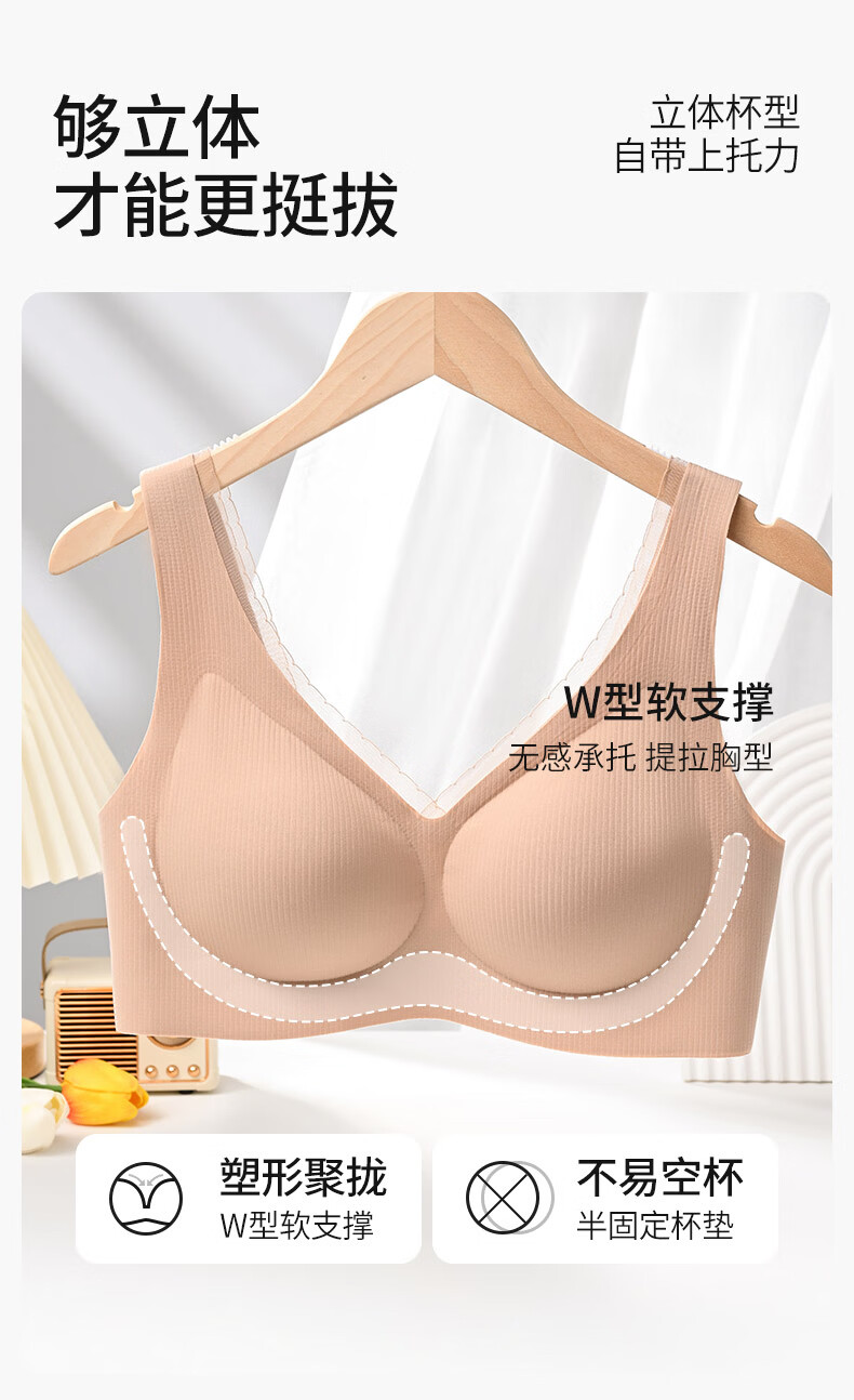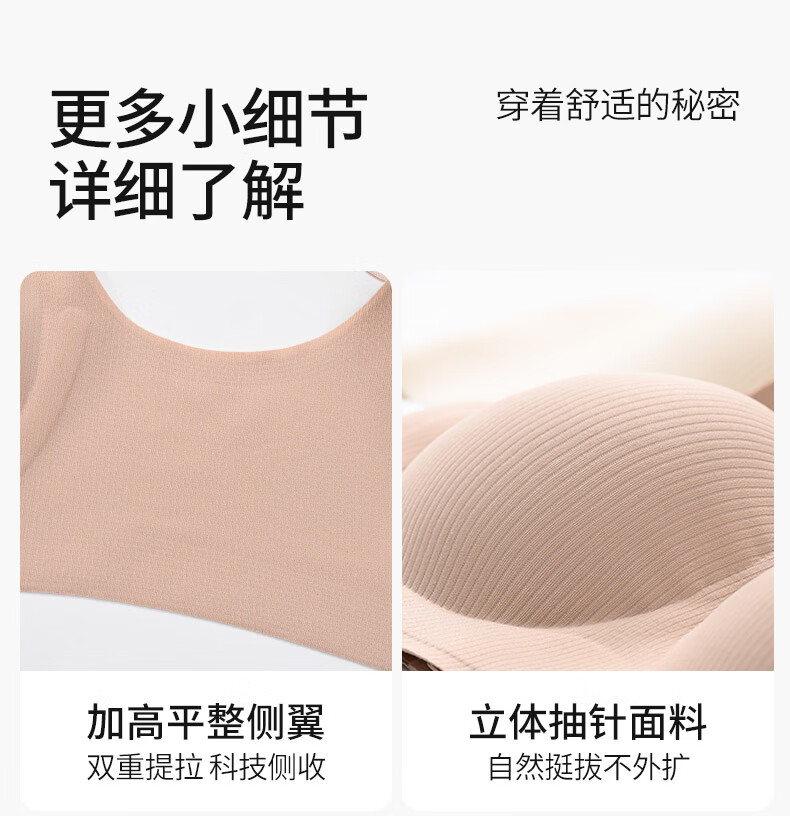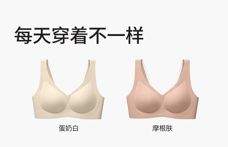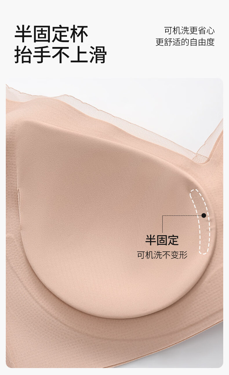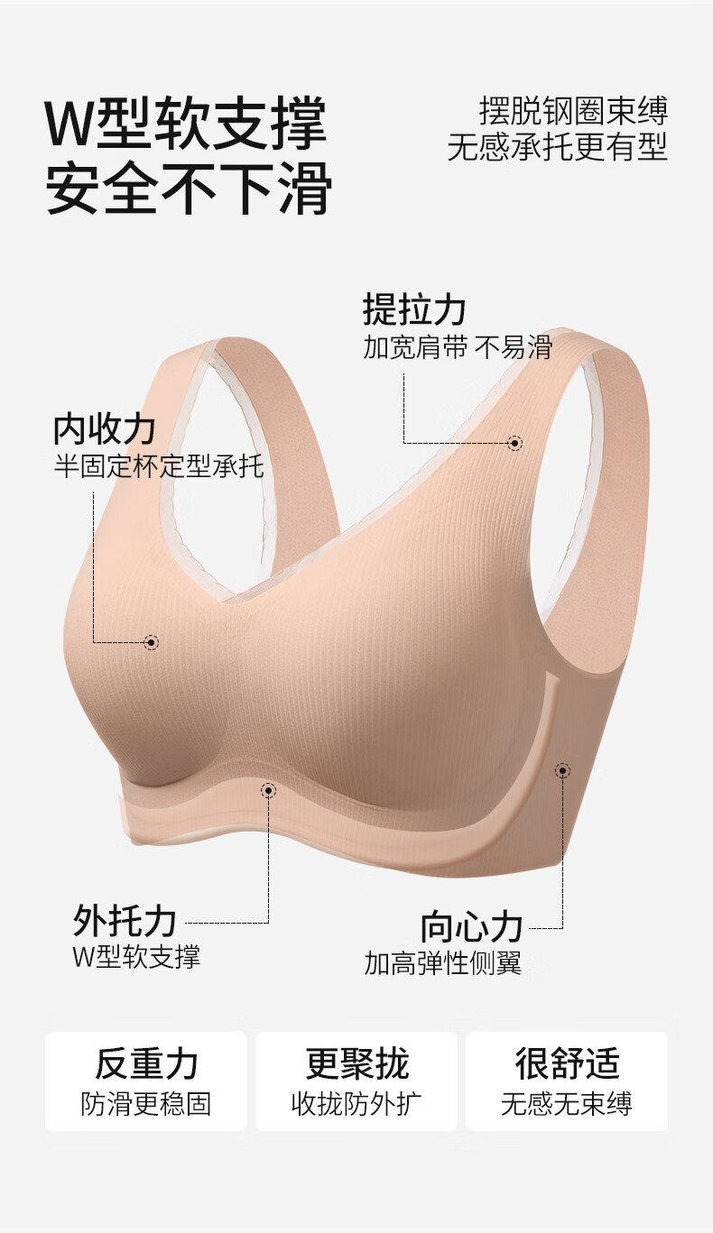 古今无痕粉底液女士内衣提拉侧收半固定杯运动风文胸罩女大胸显小送礼 蛋奶白 【单件装】 2XL (175)/XXL 建议体重140-160斤