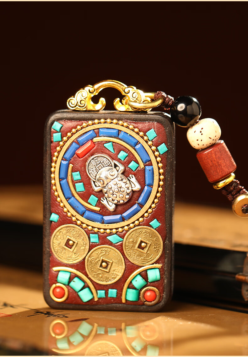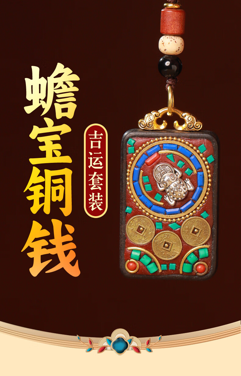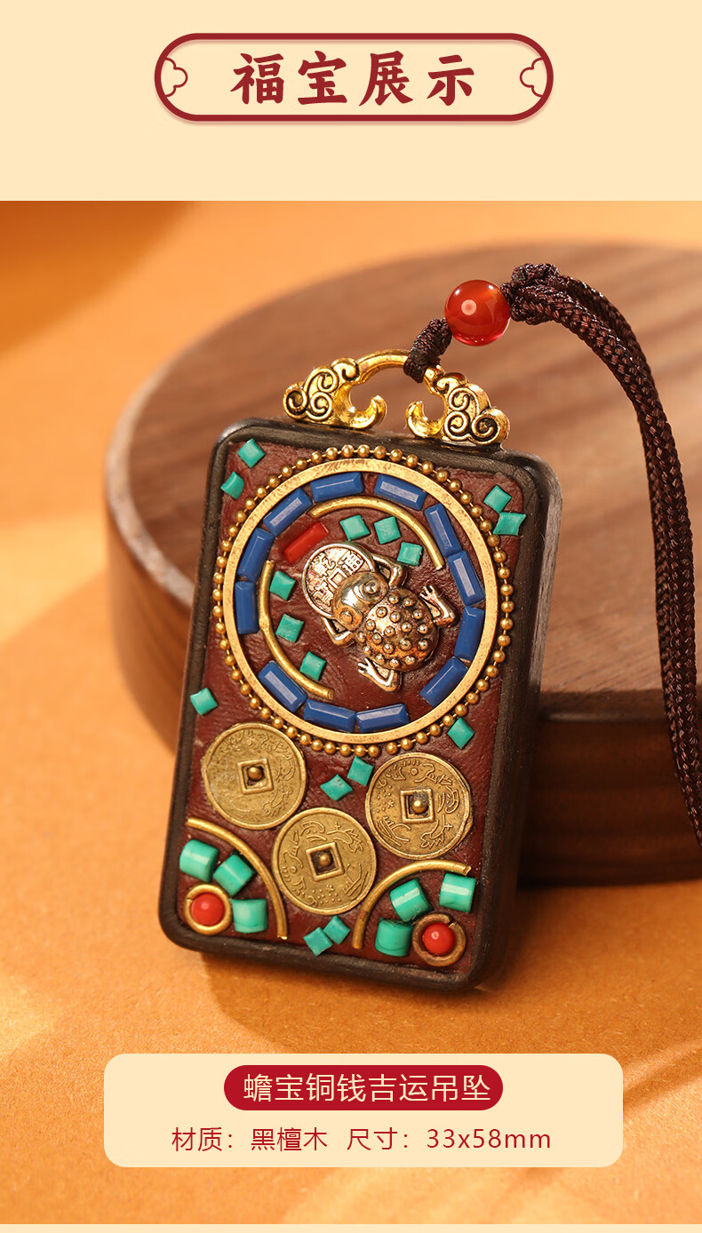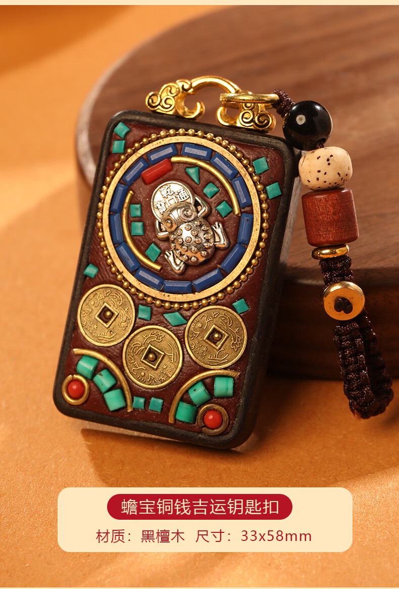 慈元阁黑檀木蟾宝铜钱吉运套装复古男女情侣款吊坠盘玩汽车钥匙扣送礼物 蟾宝铜钱吉运吊坠
