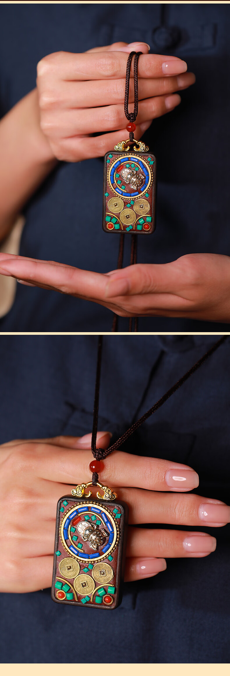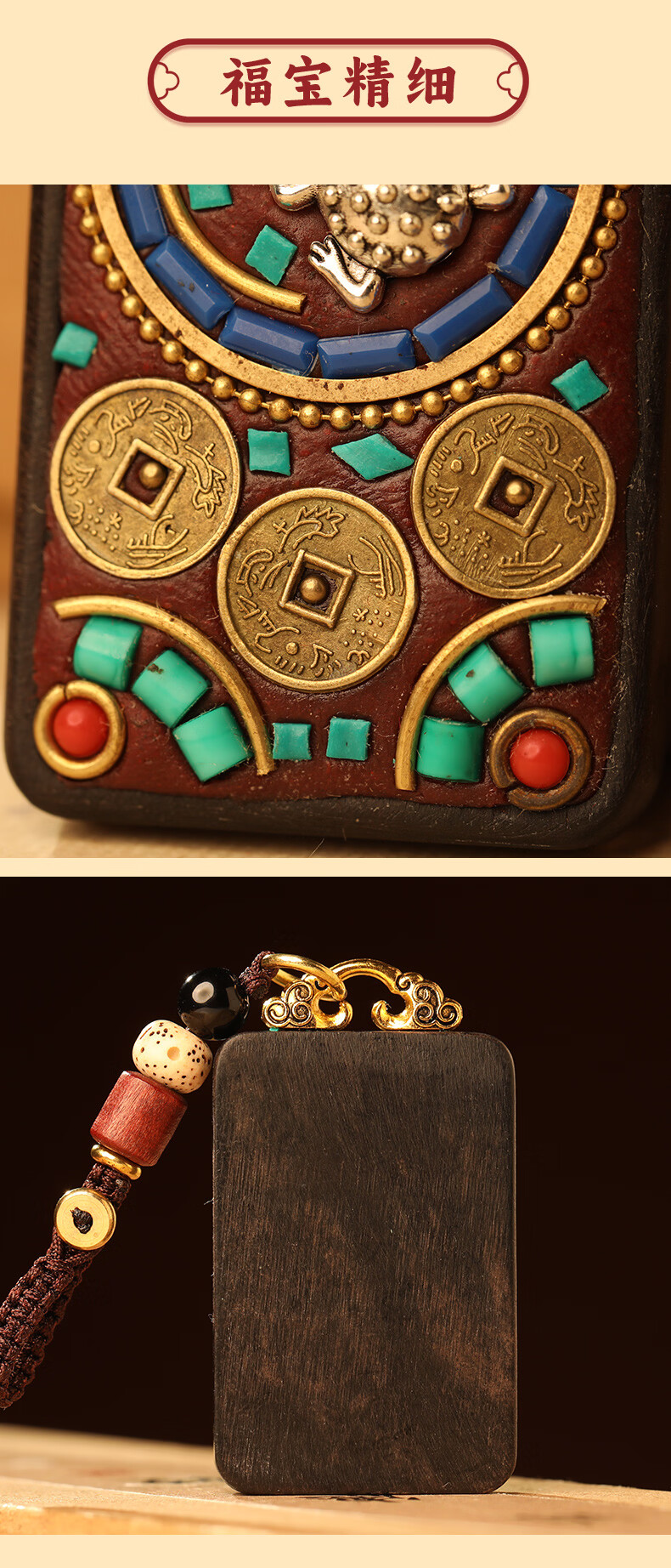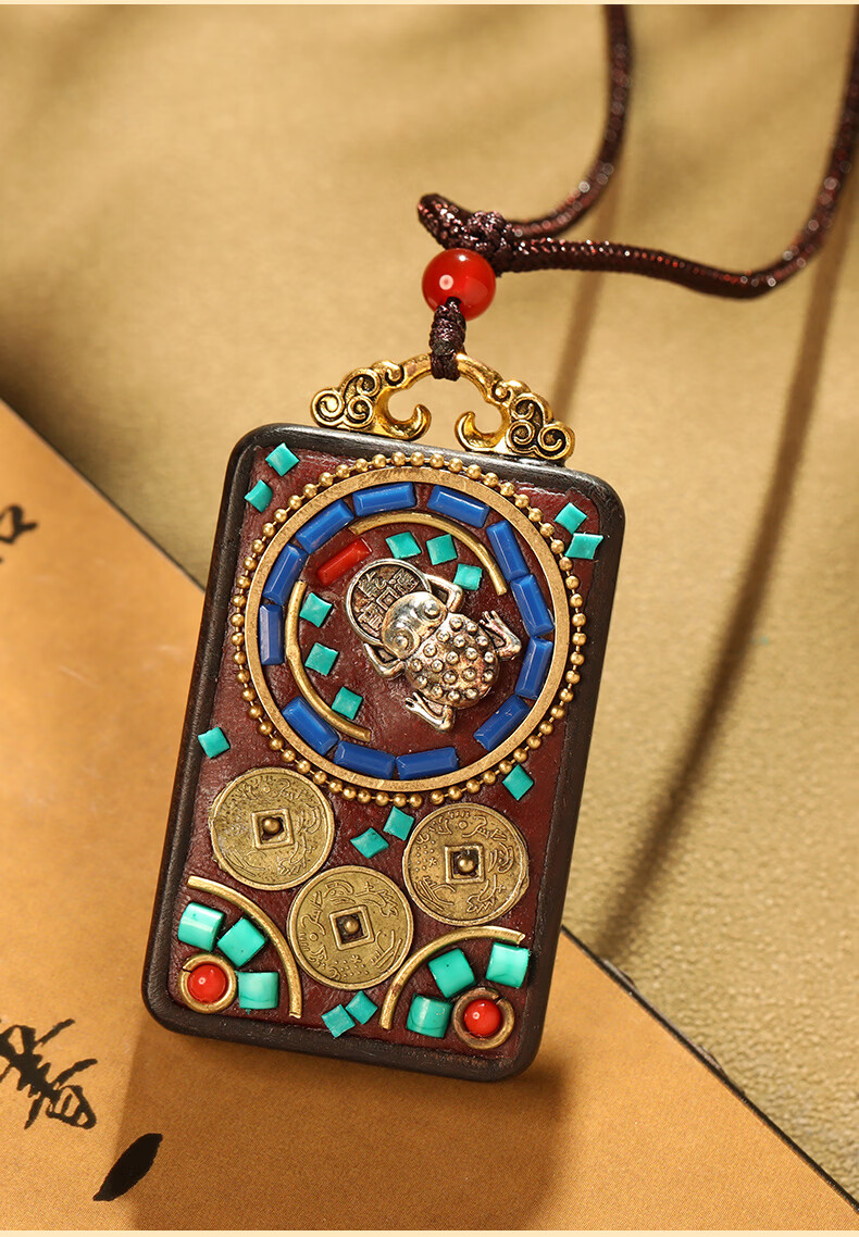 慈元阁黑檀木蟾宝铜钱吉运套装复古男女情侣款吊坠盘玩汽车钥匙扣送礼物 蟾宝铜钱吉运吊坠