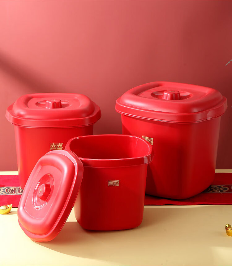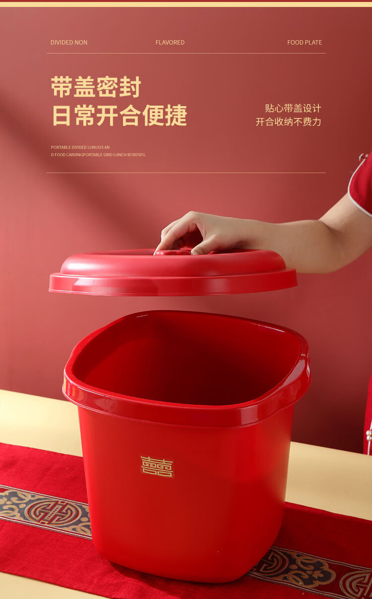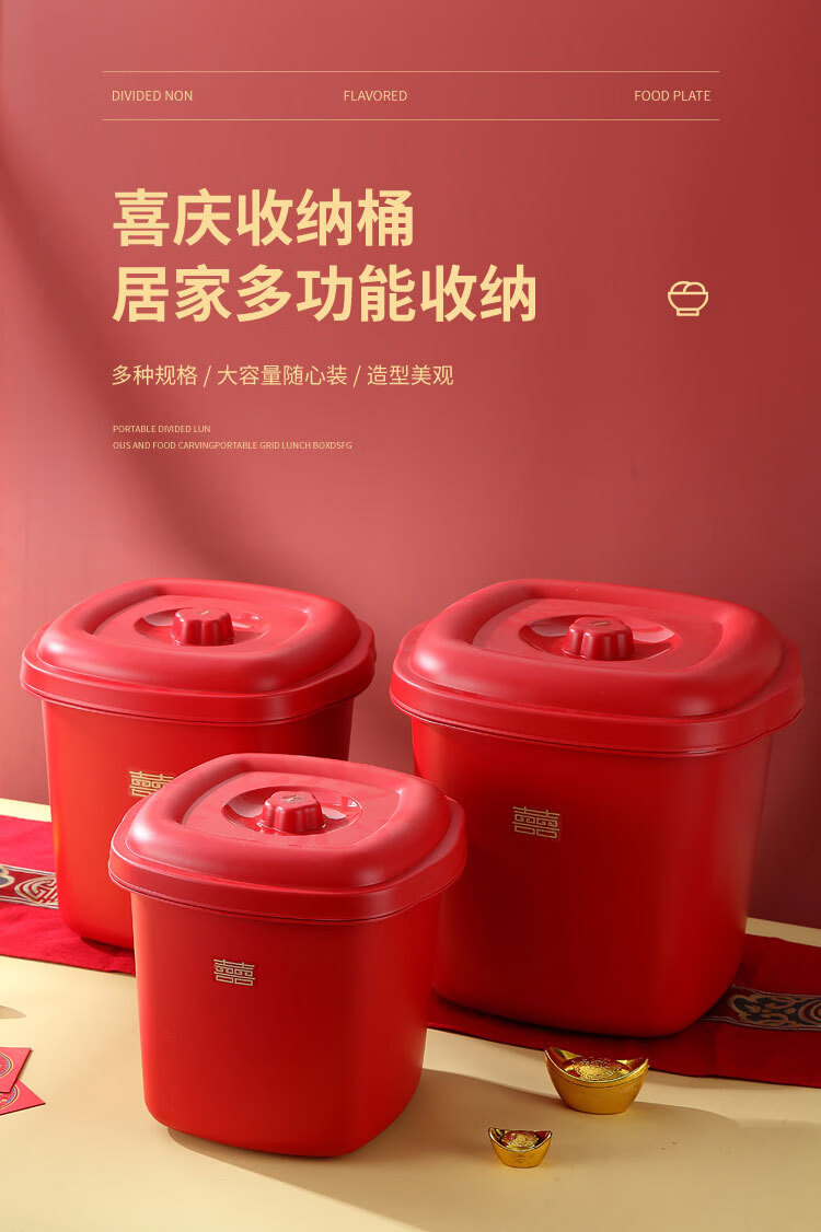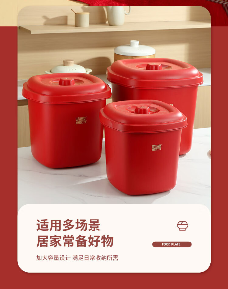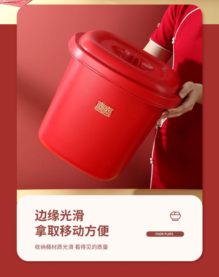 甲东里红色塑料桶厨房防潮防虫收纳储物结婚用品乔迁喜庆家用储米桶 喜庆红/大号(容量约40斤)
