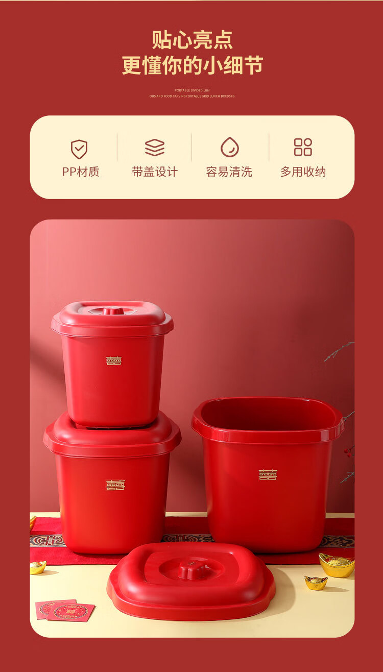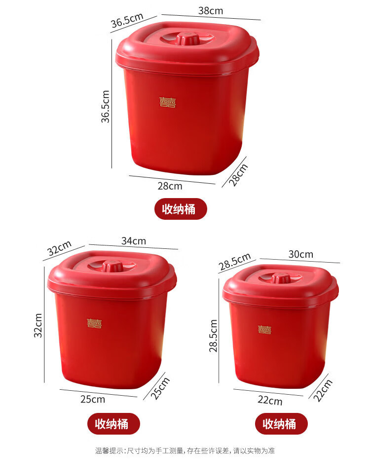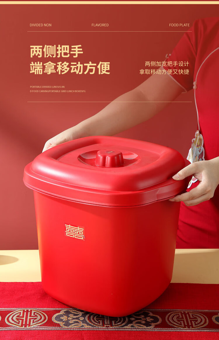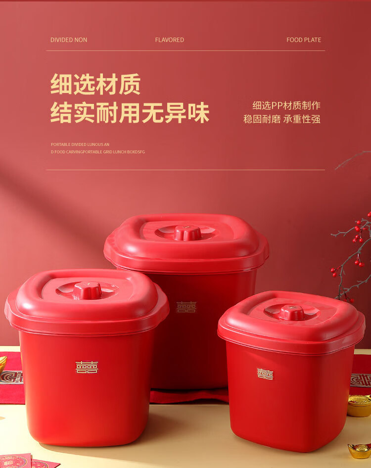 甲东里红色塑料桶厨房防潮防虫收纳储物结婚用品乔迁喜庆家用储米桶 喜庆红/大号(容量约40斤)