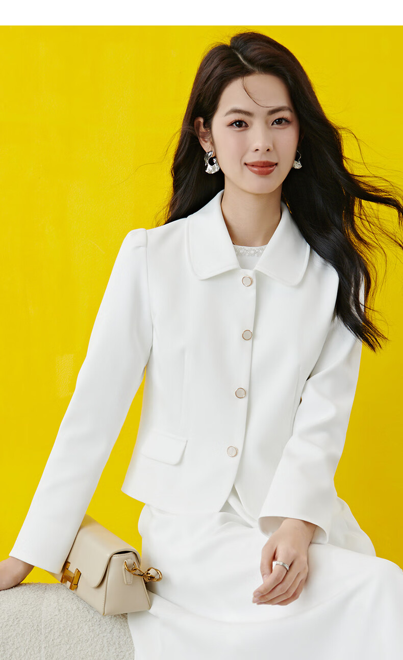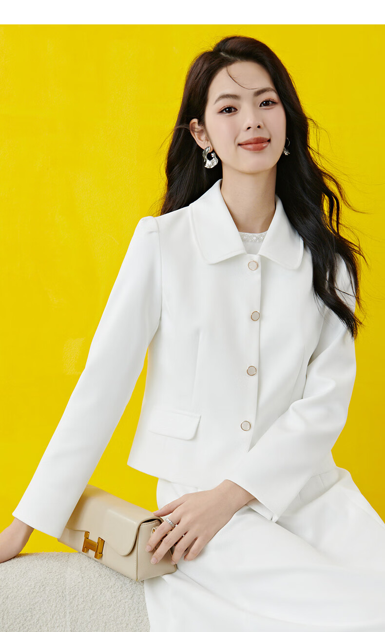 晚白2026春款复古翻领高级感小香风上衣正式场合千金风小个子短款外套 米白色 XL